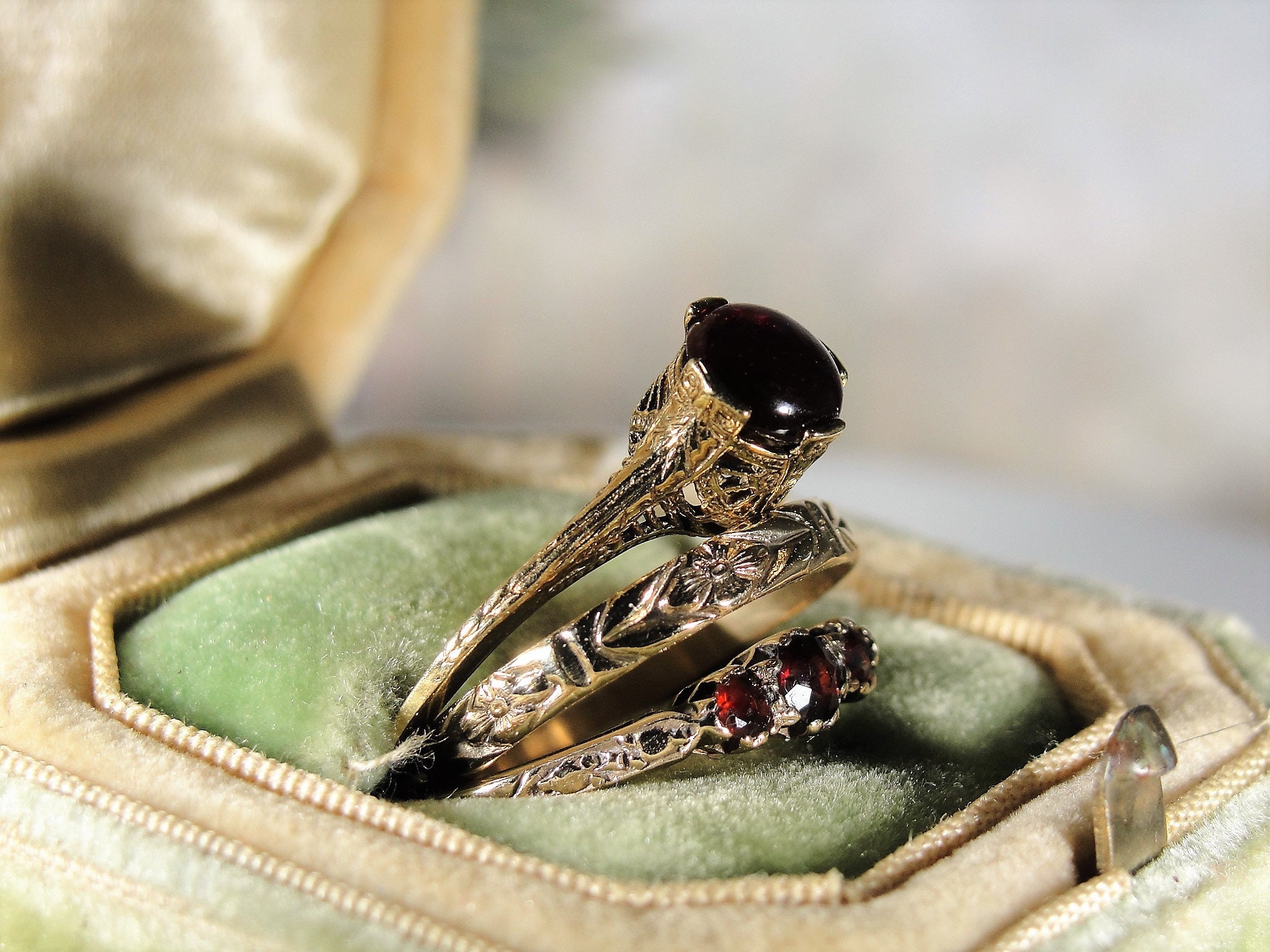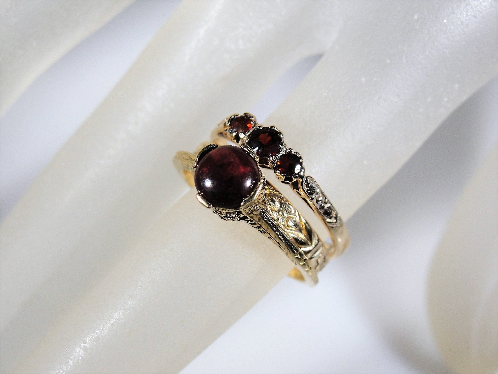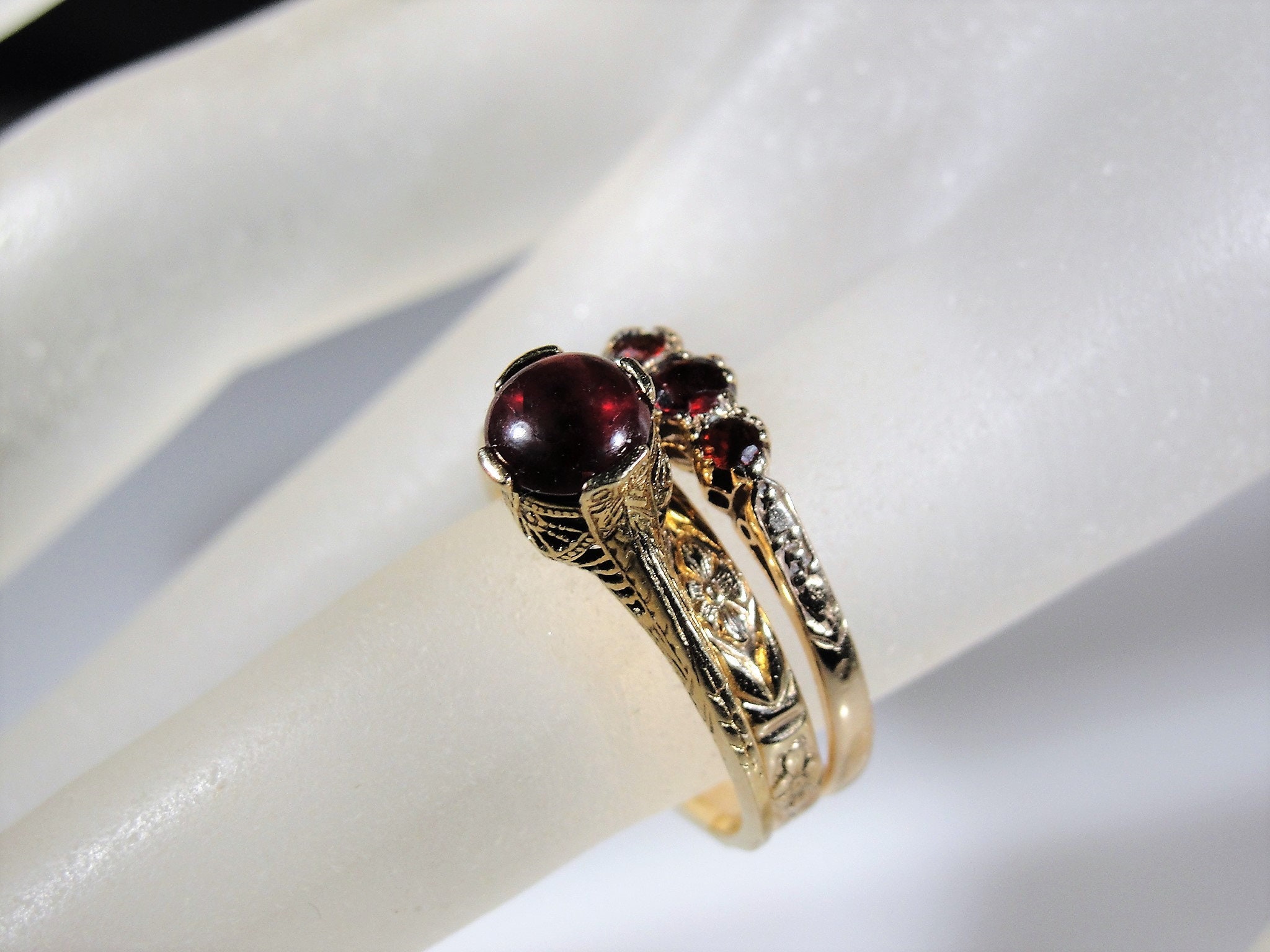 • One Victorian Engagement Ring that sports a Red Garnet Cabochon Solitaire Gem