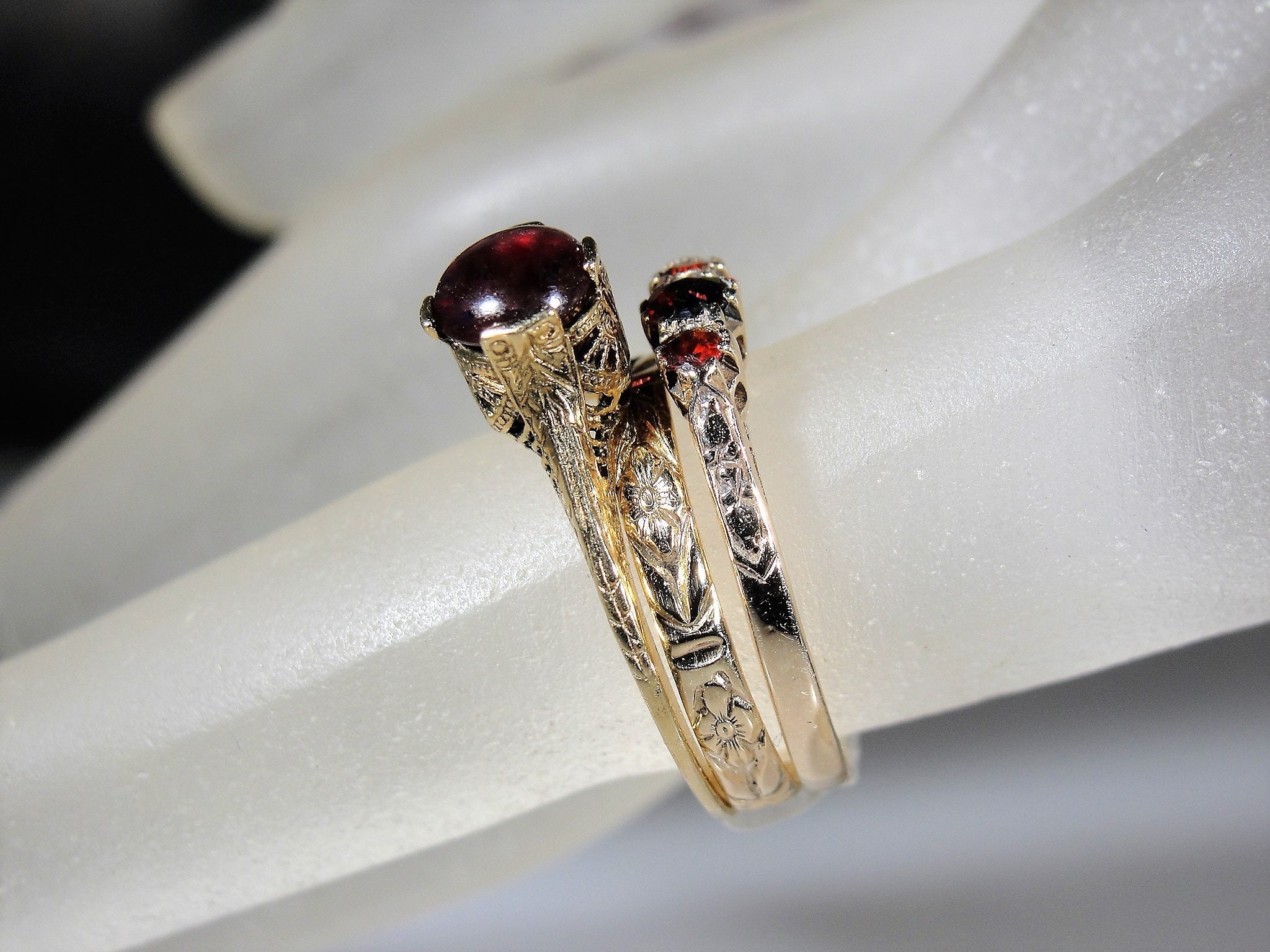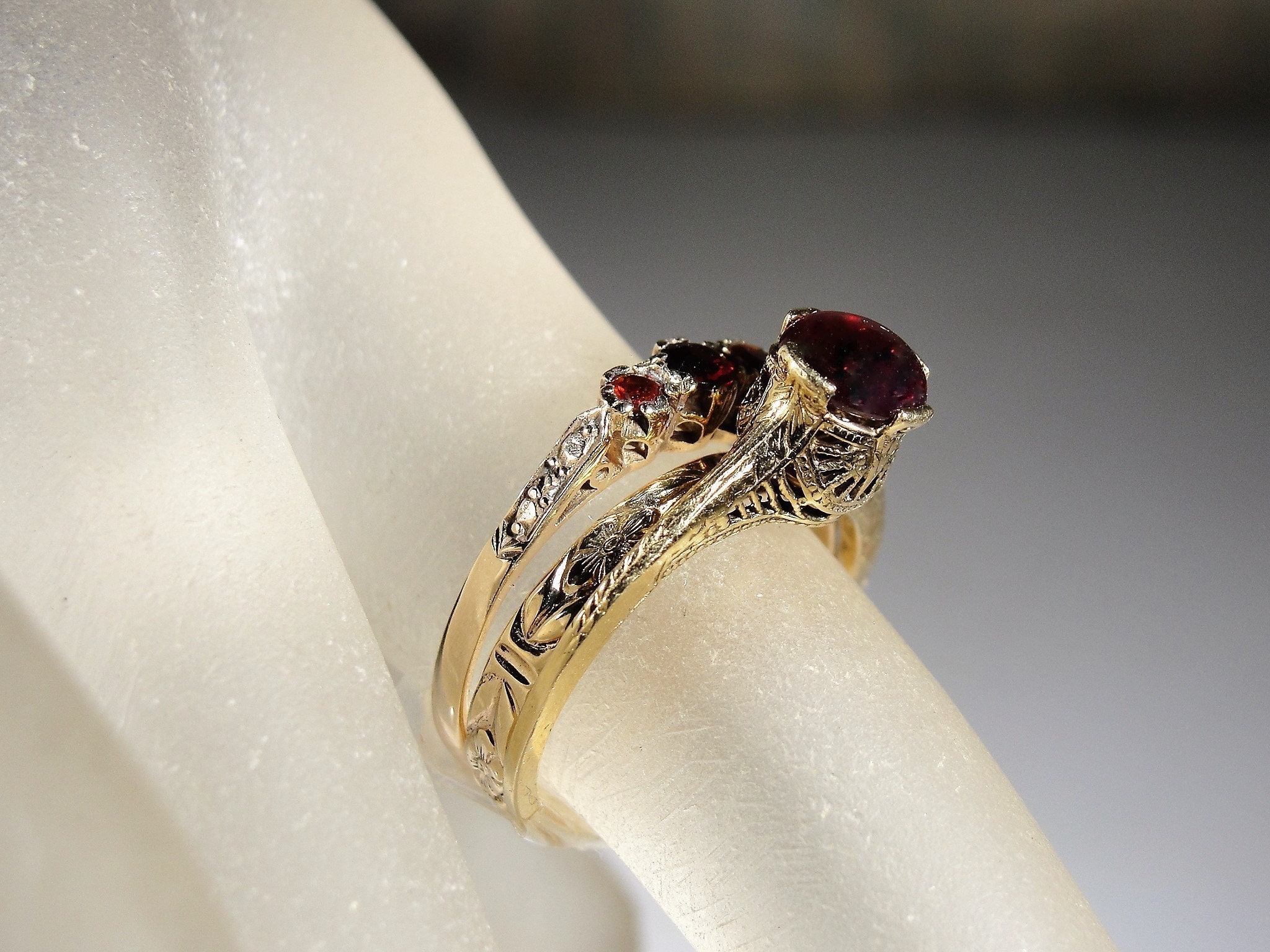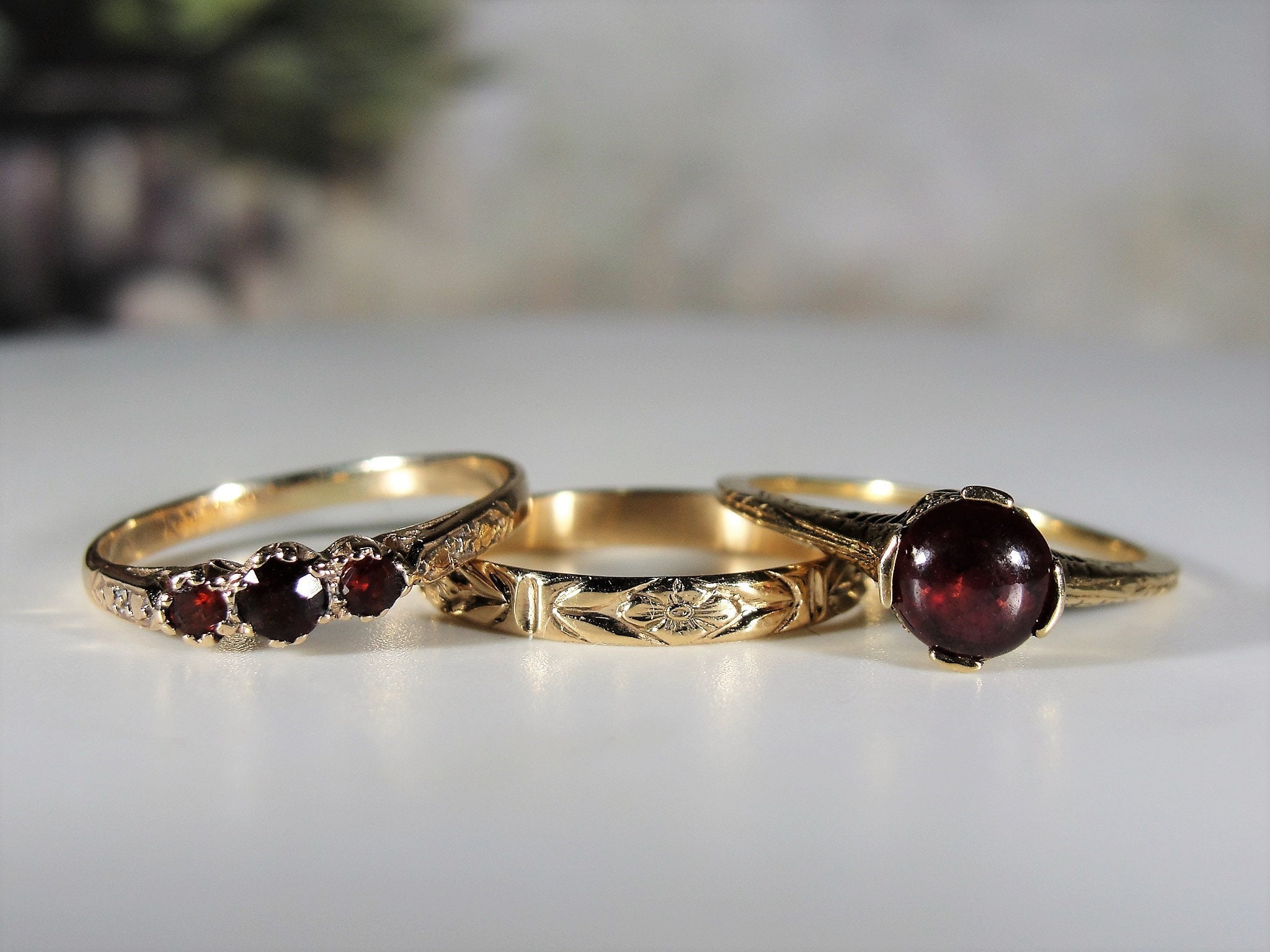• One Victorian Engagement Ring that sports a Red Garnet Cabochon Solitaire Gem