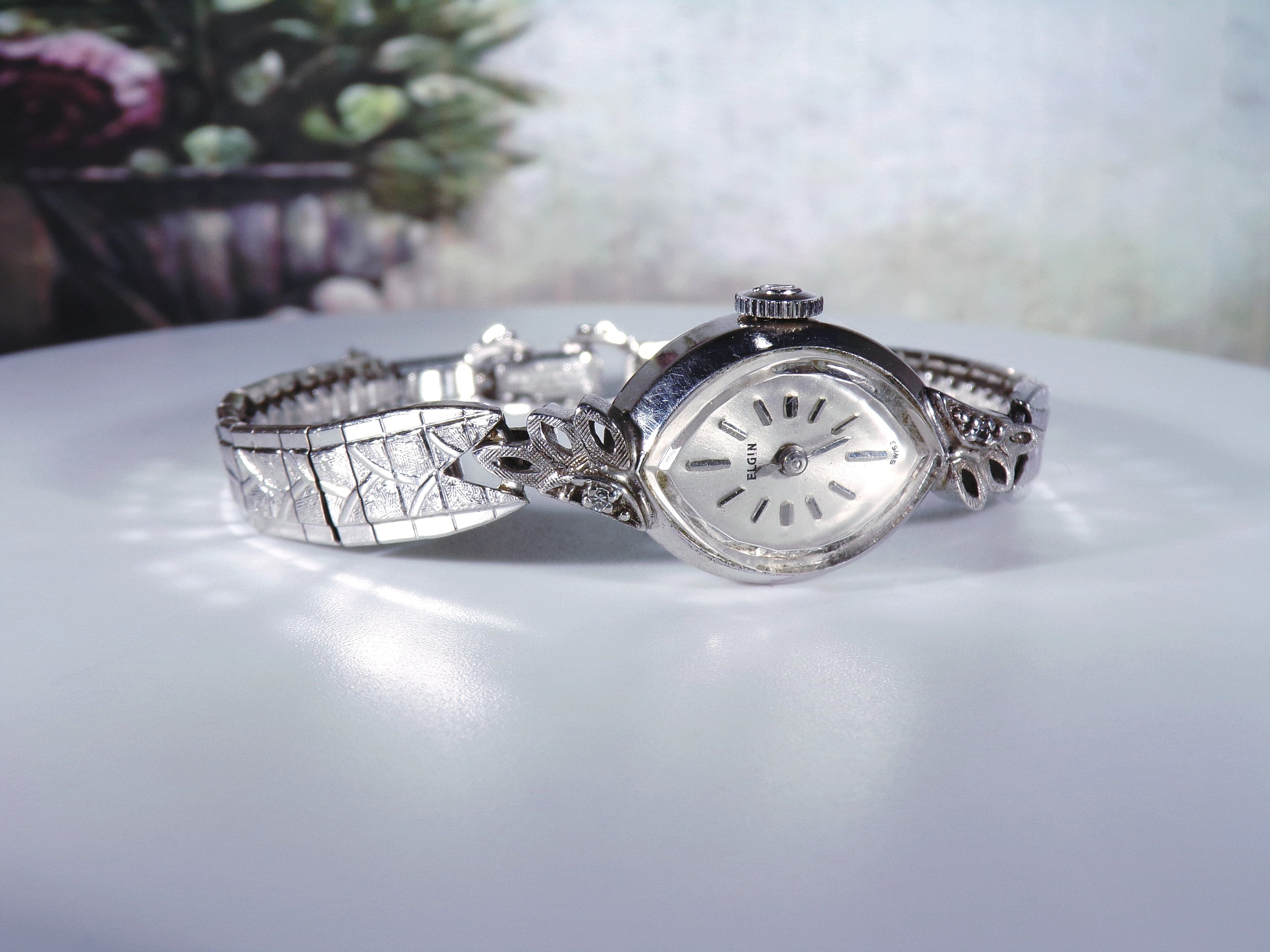 • Hallmarks of “ELGIN” is found on the face of the watch and back as well as the band