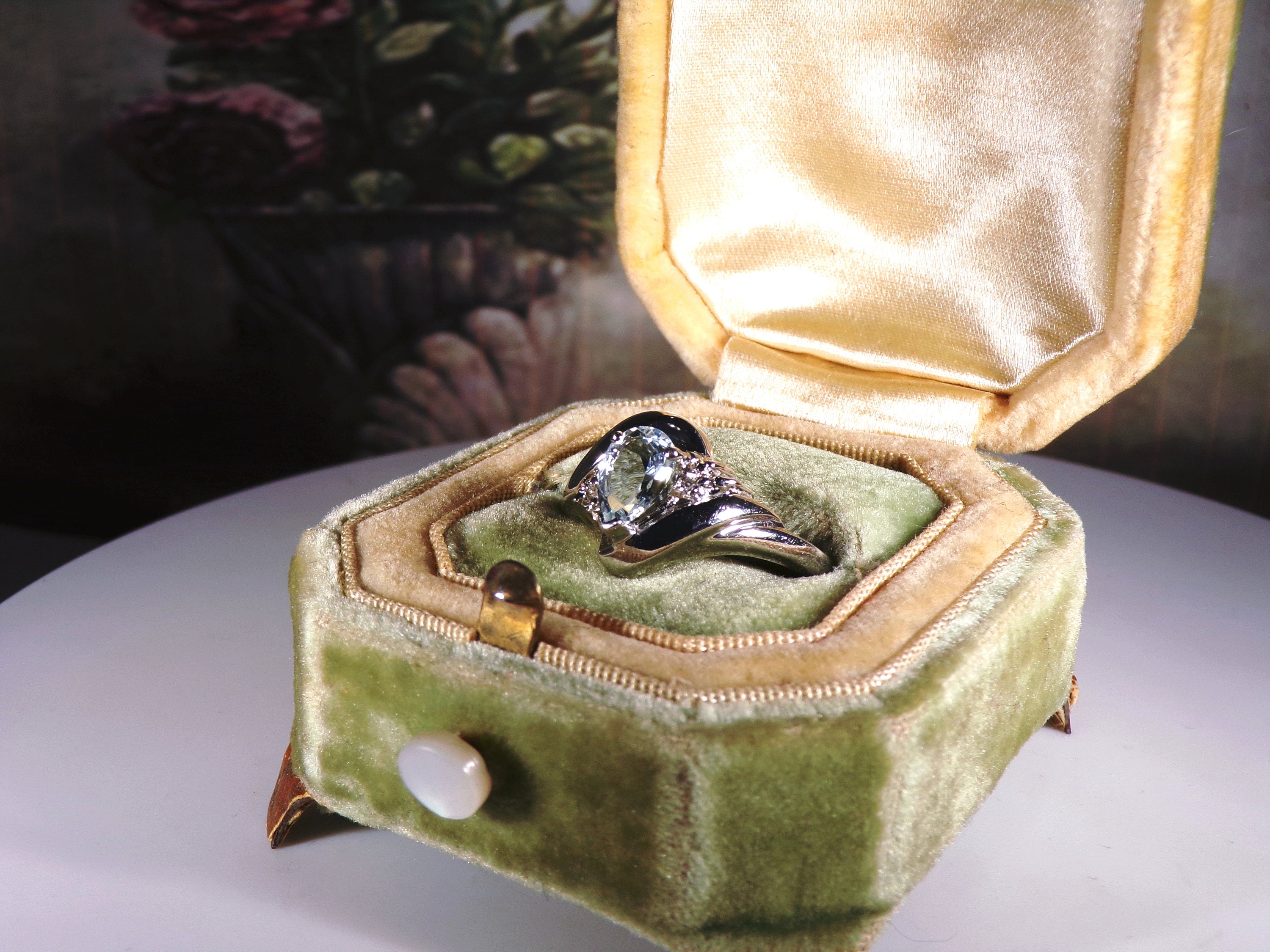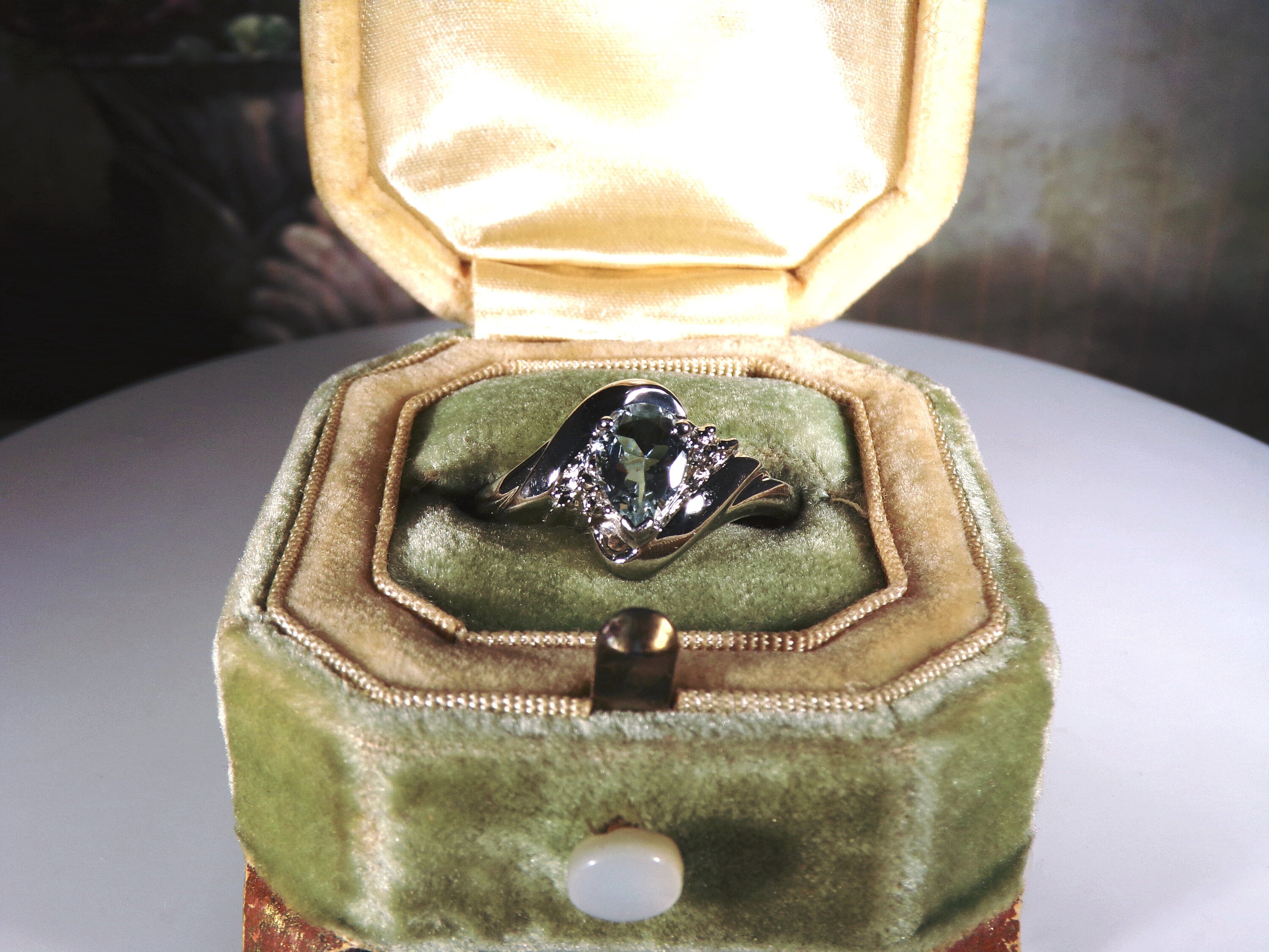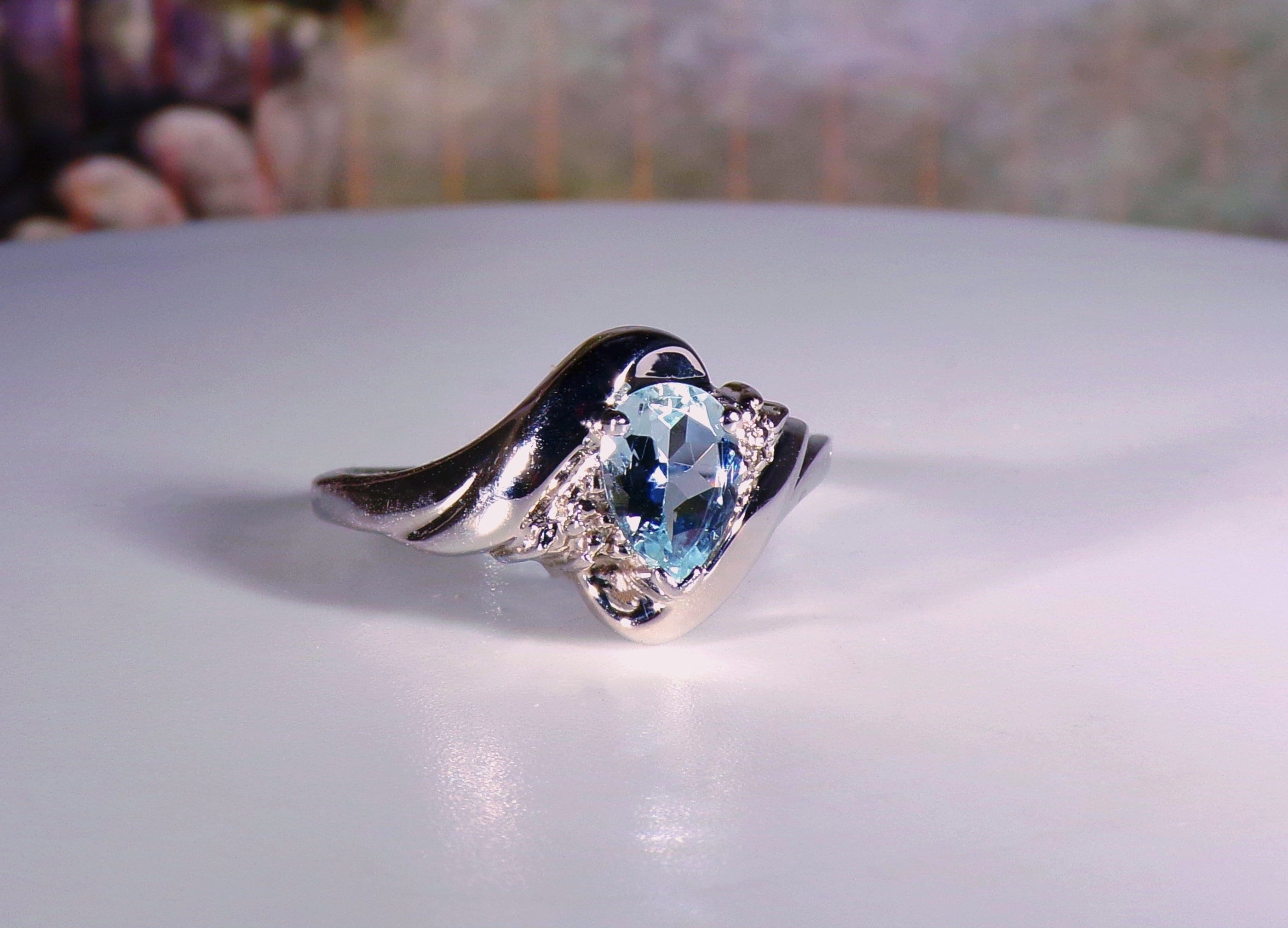 Aquamarine and Diamond Ring, 10K White Gold Pear Shaped Genuine Aquamarine Ring with Diamond Accents, Vintage Ring, Size 8, FREE SIZING!!