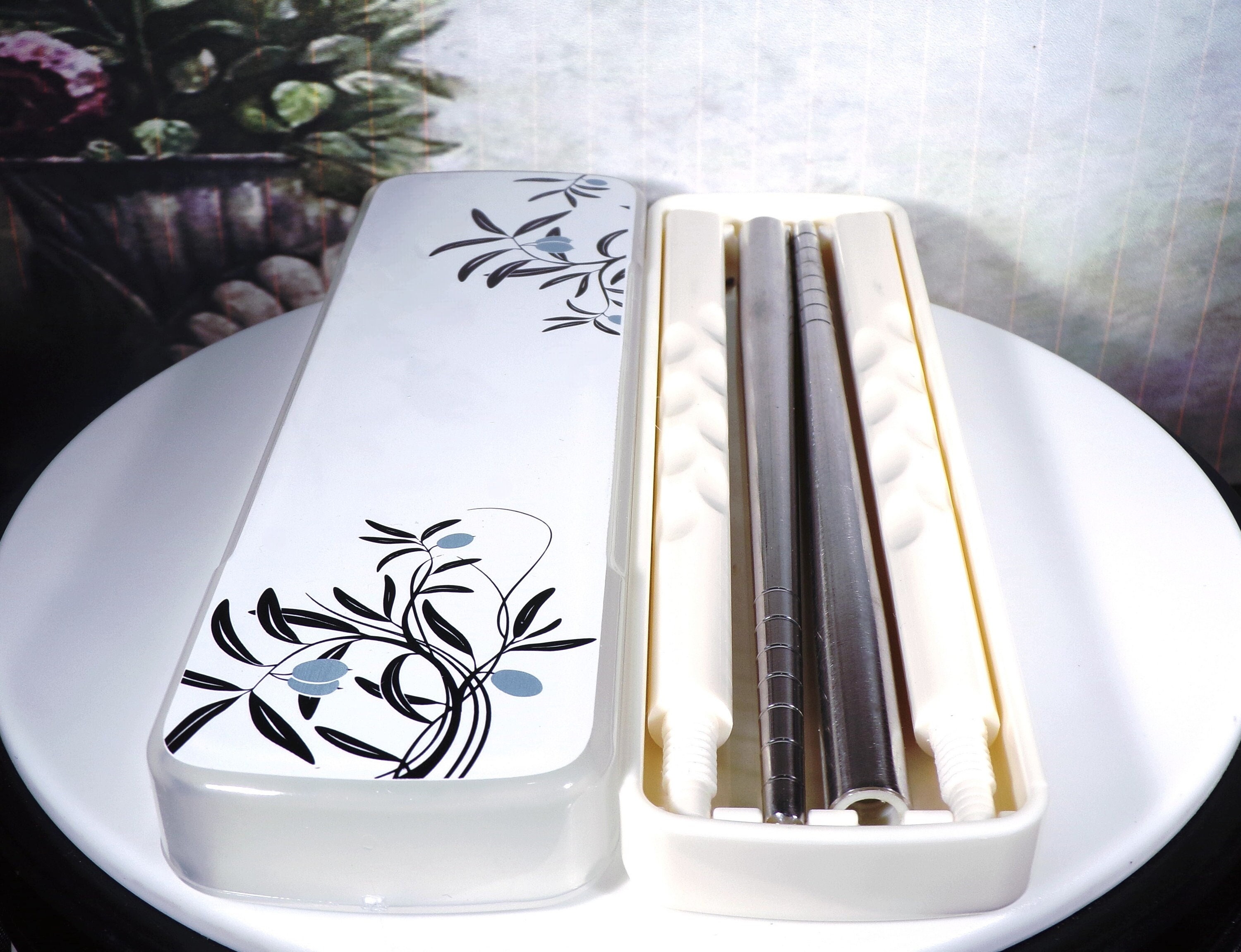 • Case is a Slide In case that holds two Chopsticks that are set into the chase in two pieces that you screw together to make one chopstick; there are two full size chopsticks in this case
