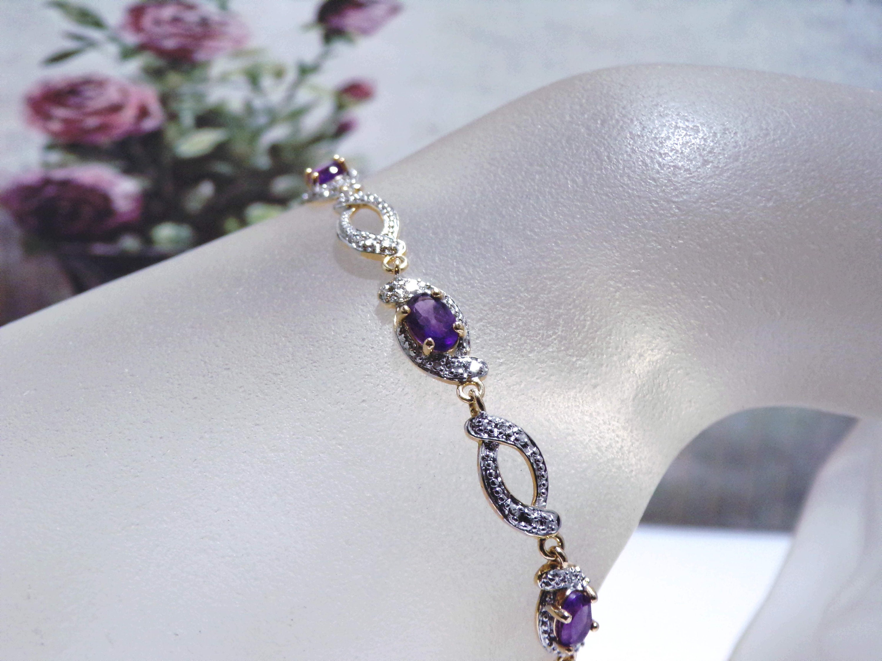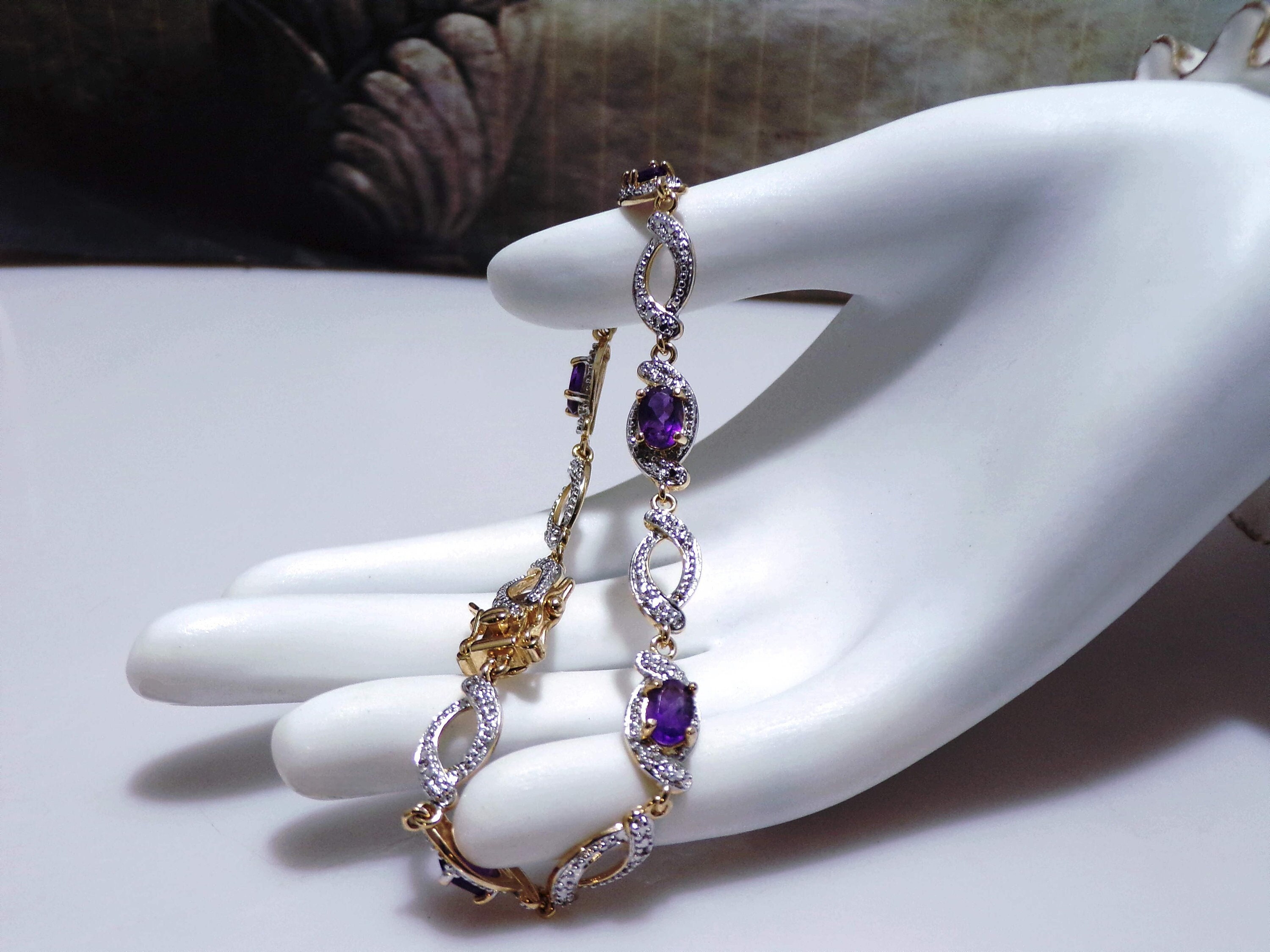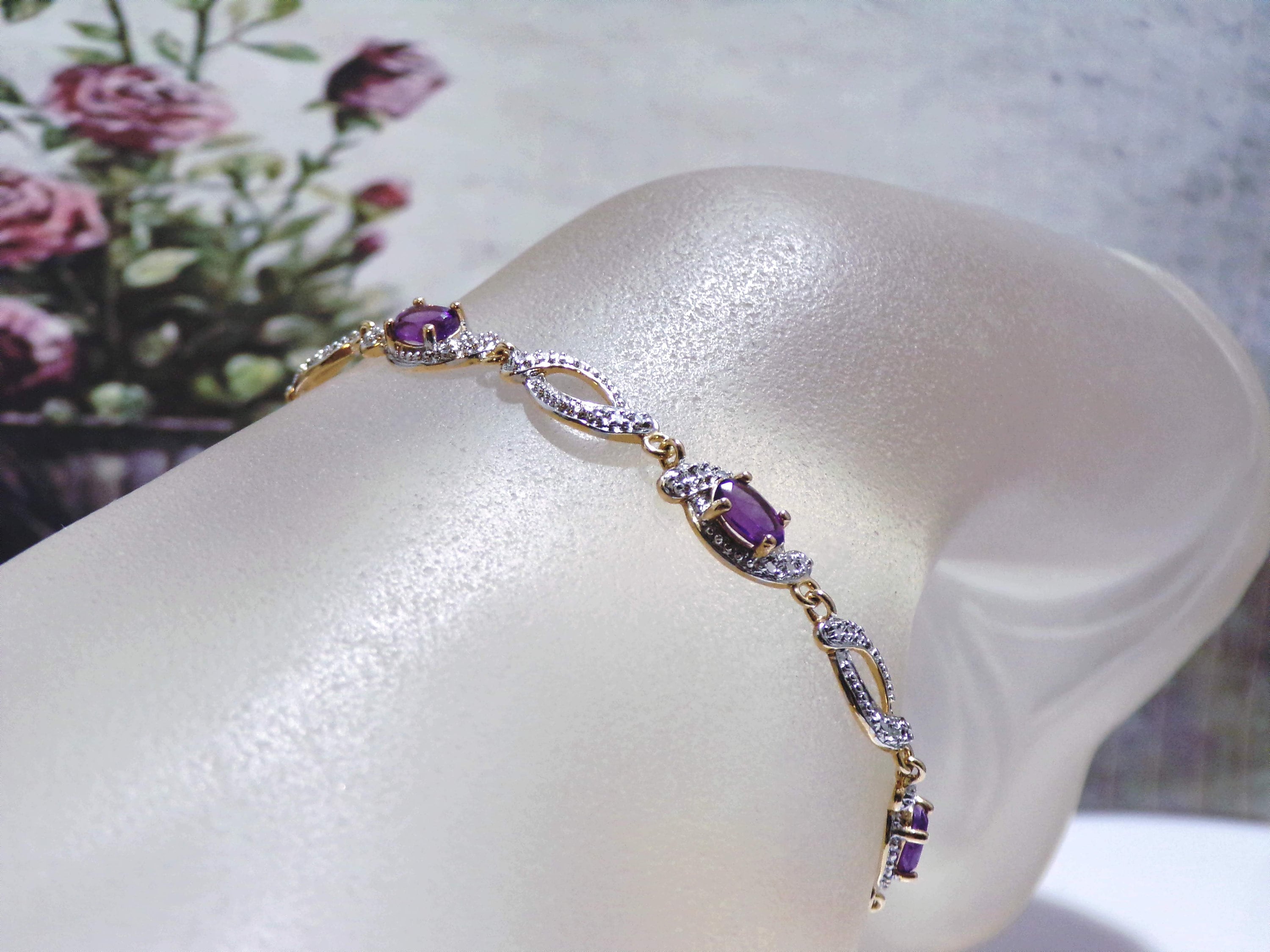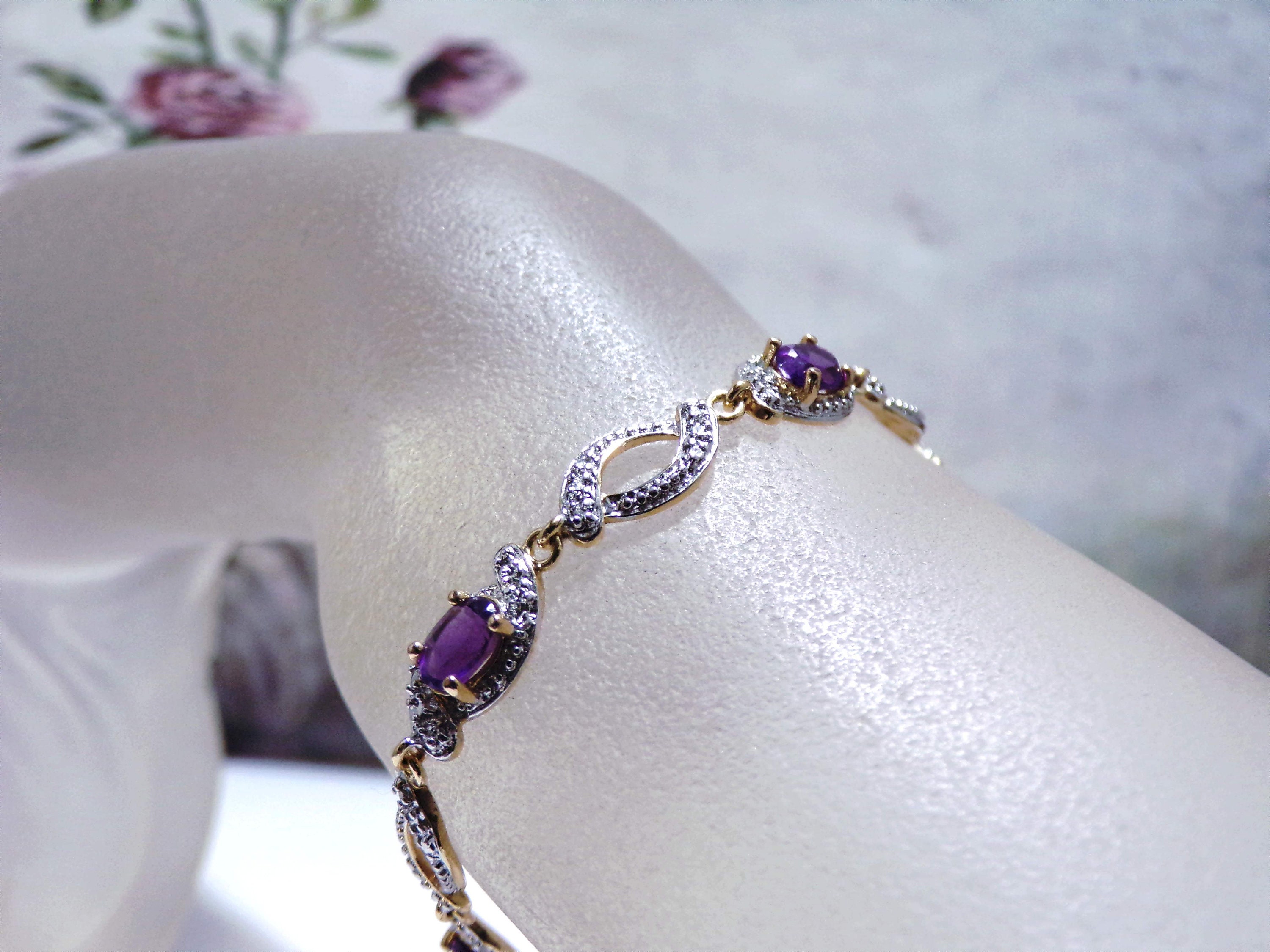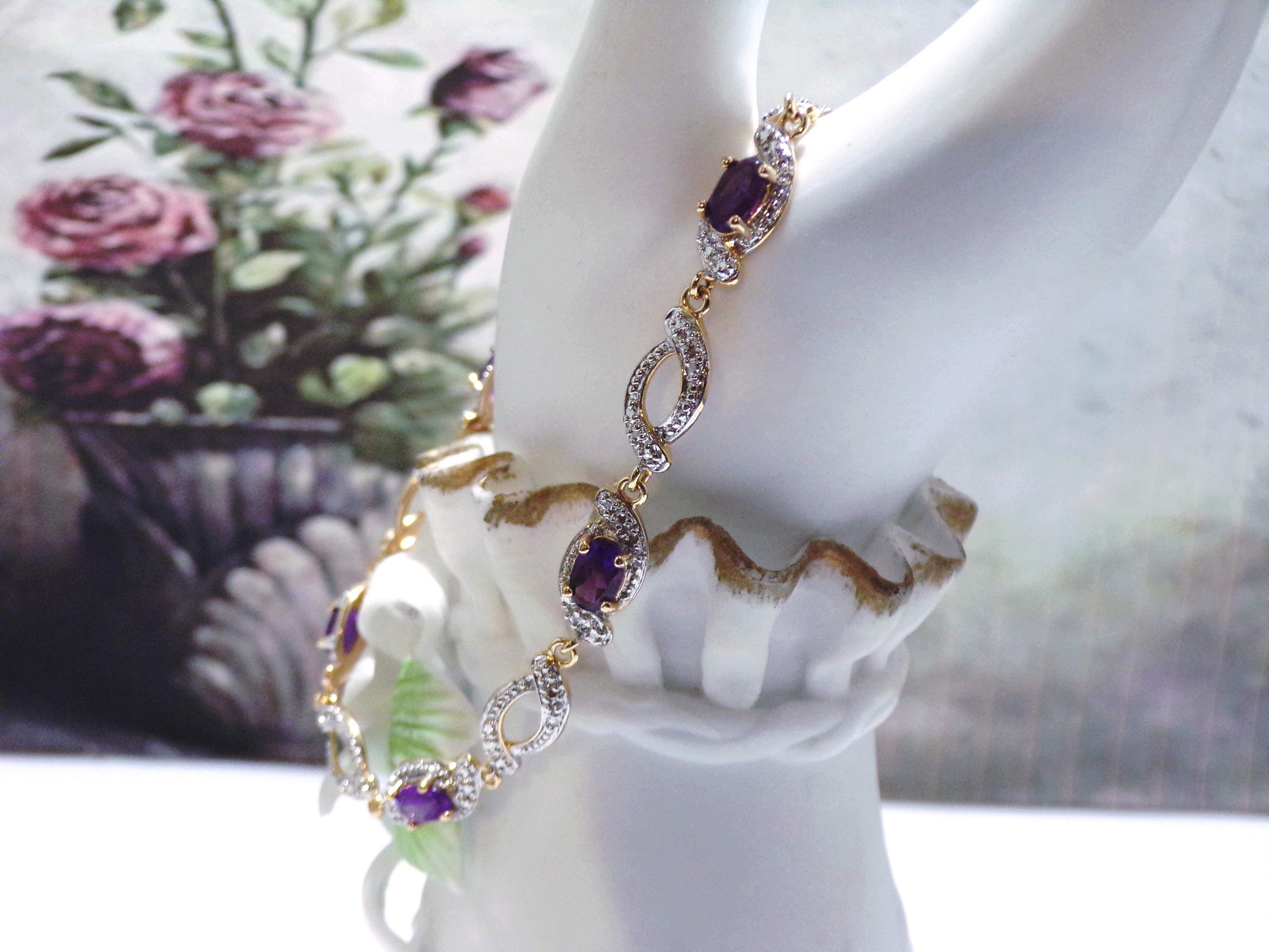 ROSS SIMONS Gold Vermeil Purple Amethyst Dainty Bracelet, Genuine Amethyst Gemstones, Silver and Yellow Gold-Plated Bracelet, Vintage Tennis Bracelet