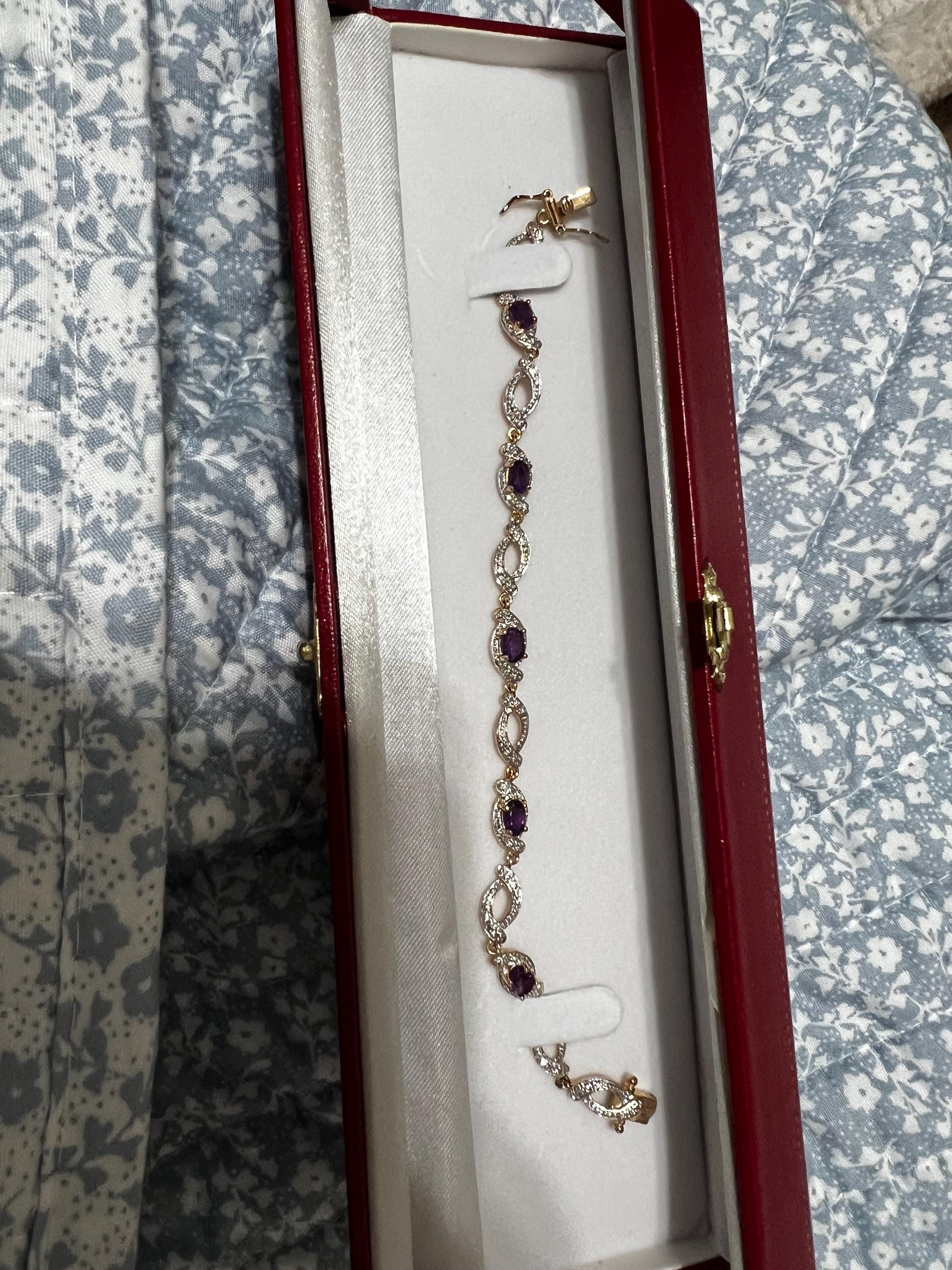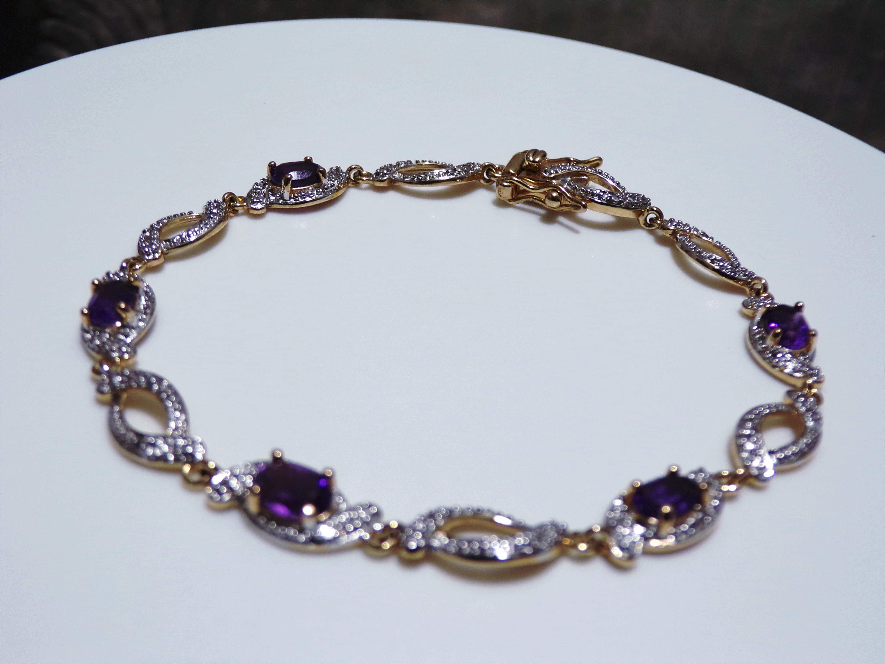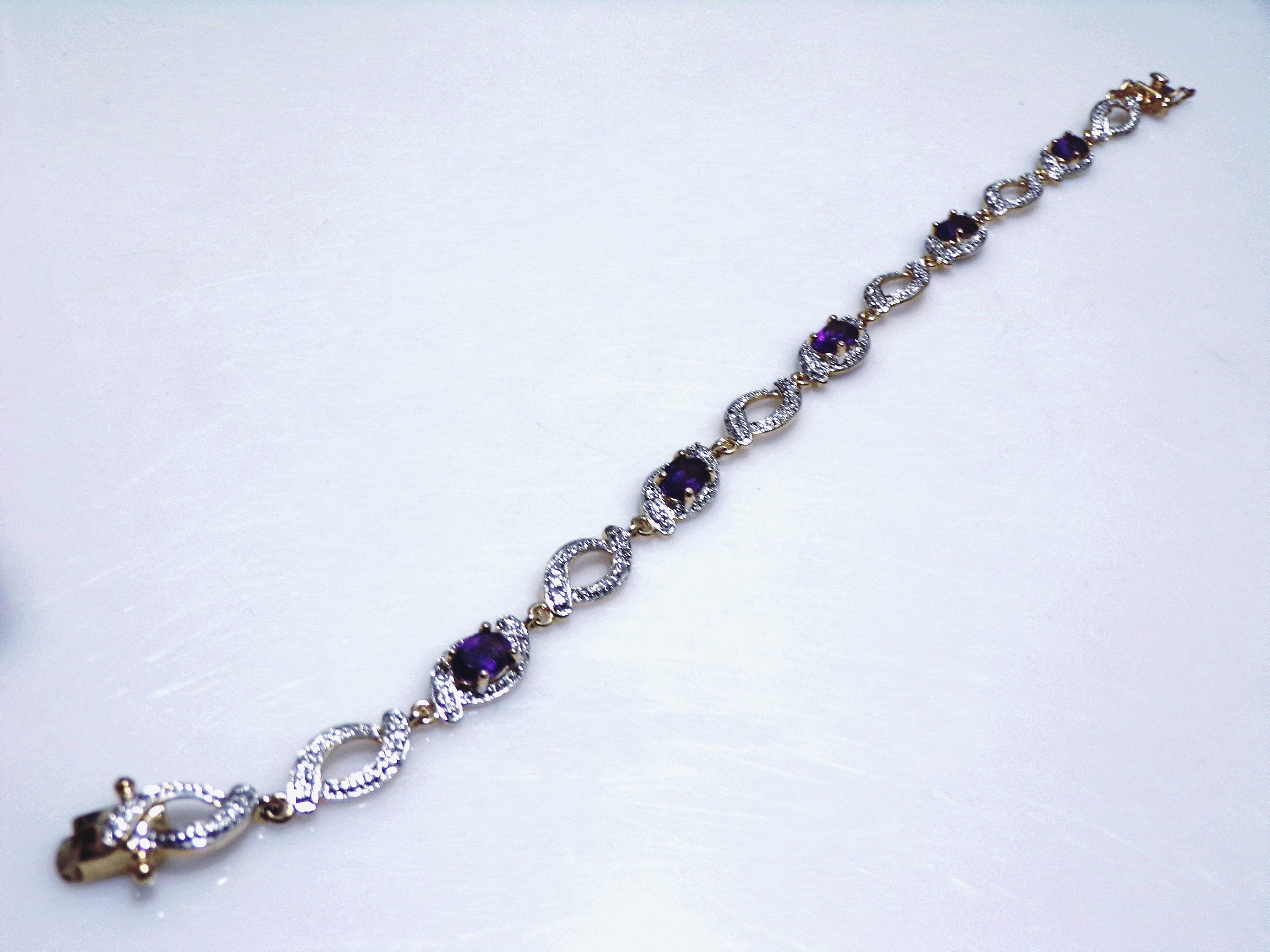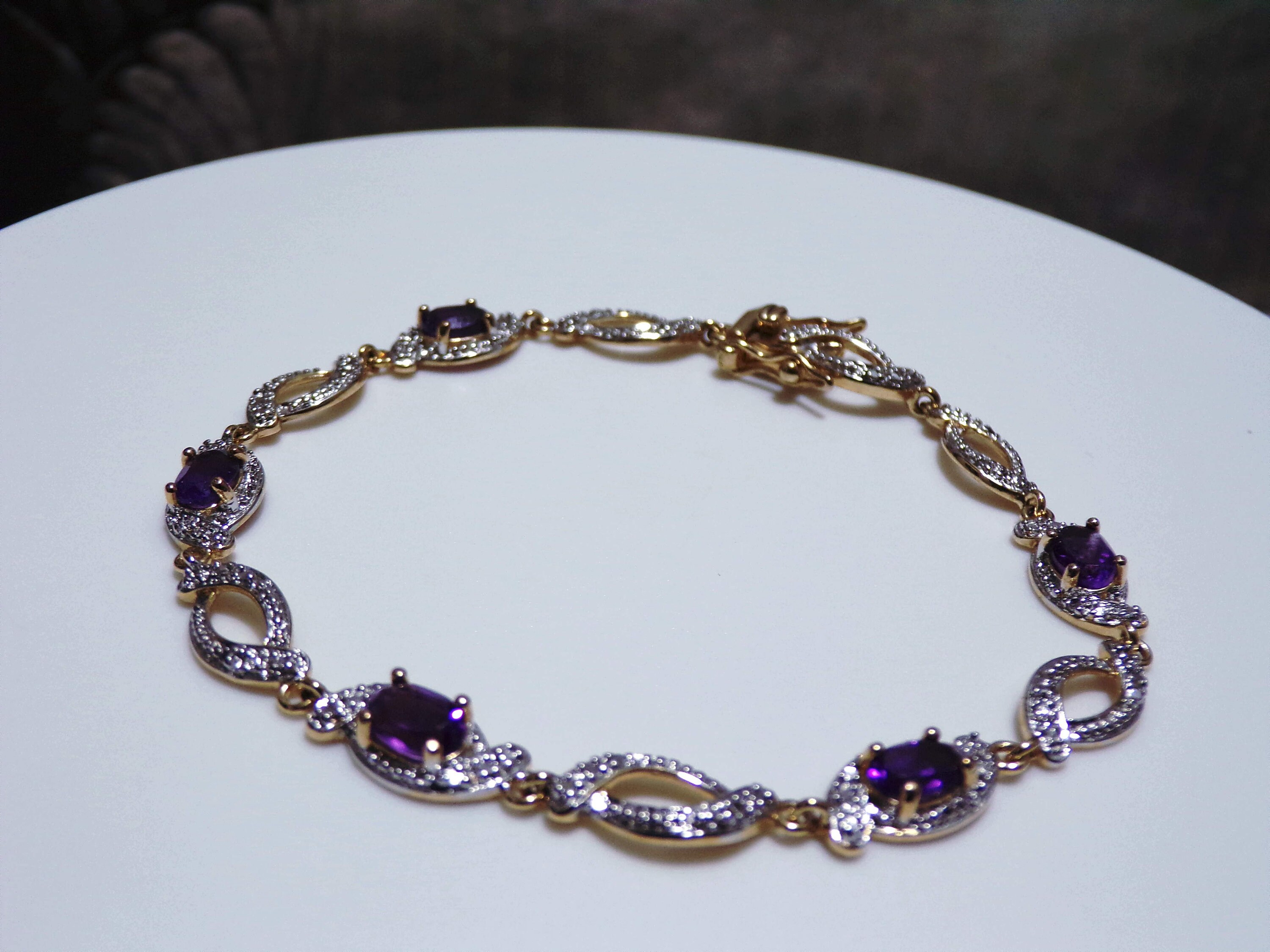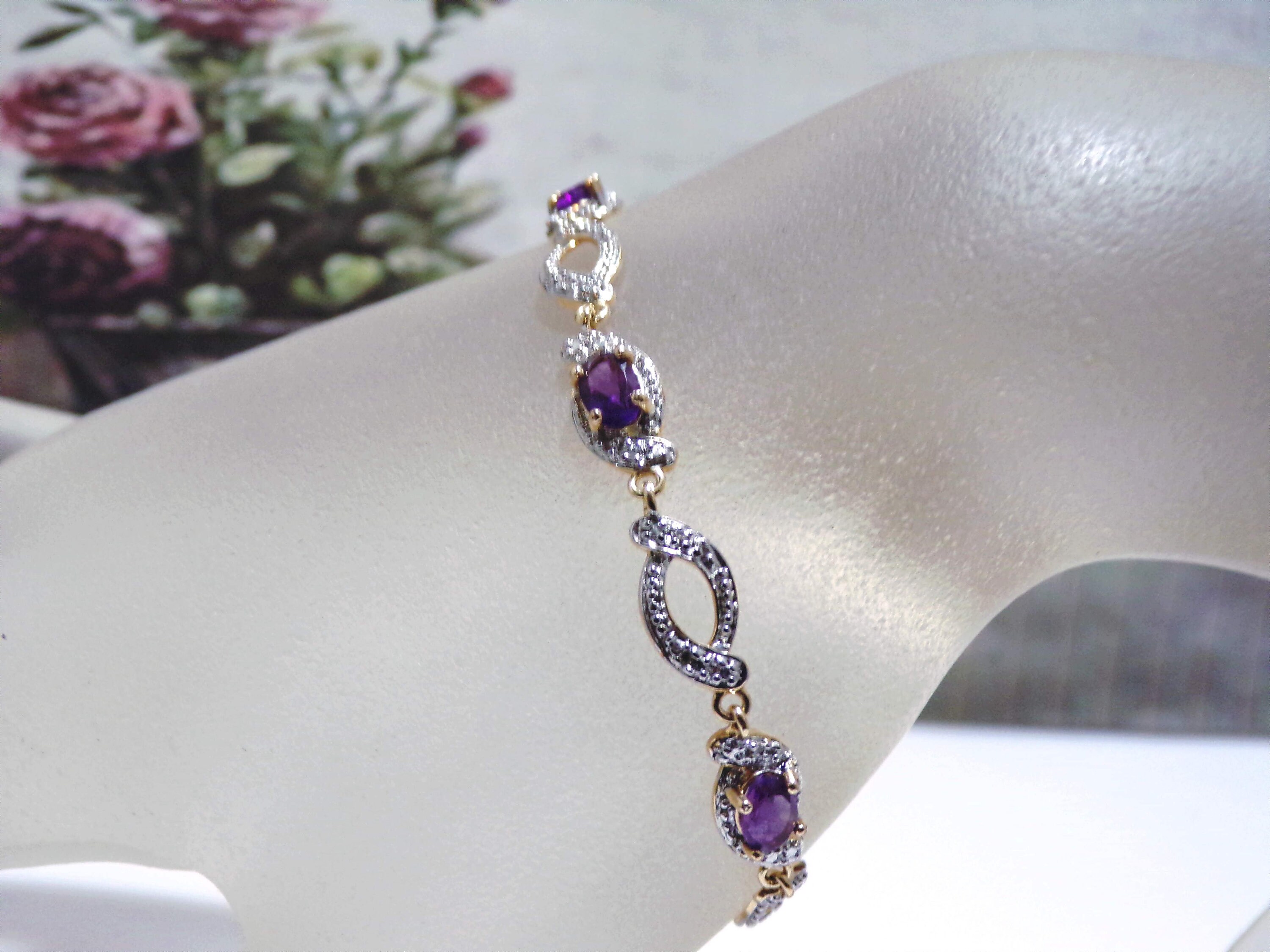 ROSS SIMONS Gold Vermeil Purple Amethyst Dainty Bracelet, Genuine Amethyst Gemstones, Silver and Yellow Gold-Plated Bracelet, Vintage Tennis Bracelet