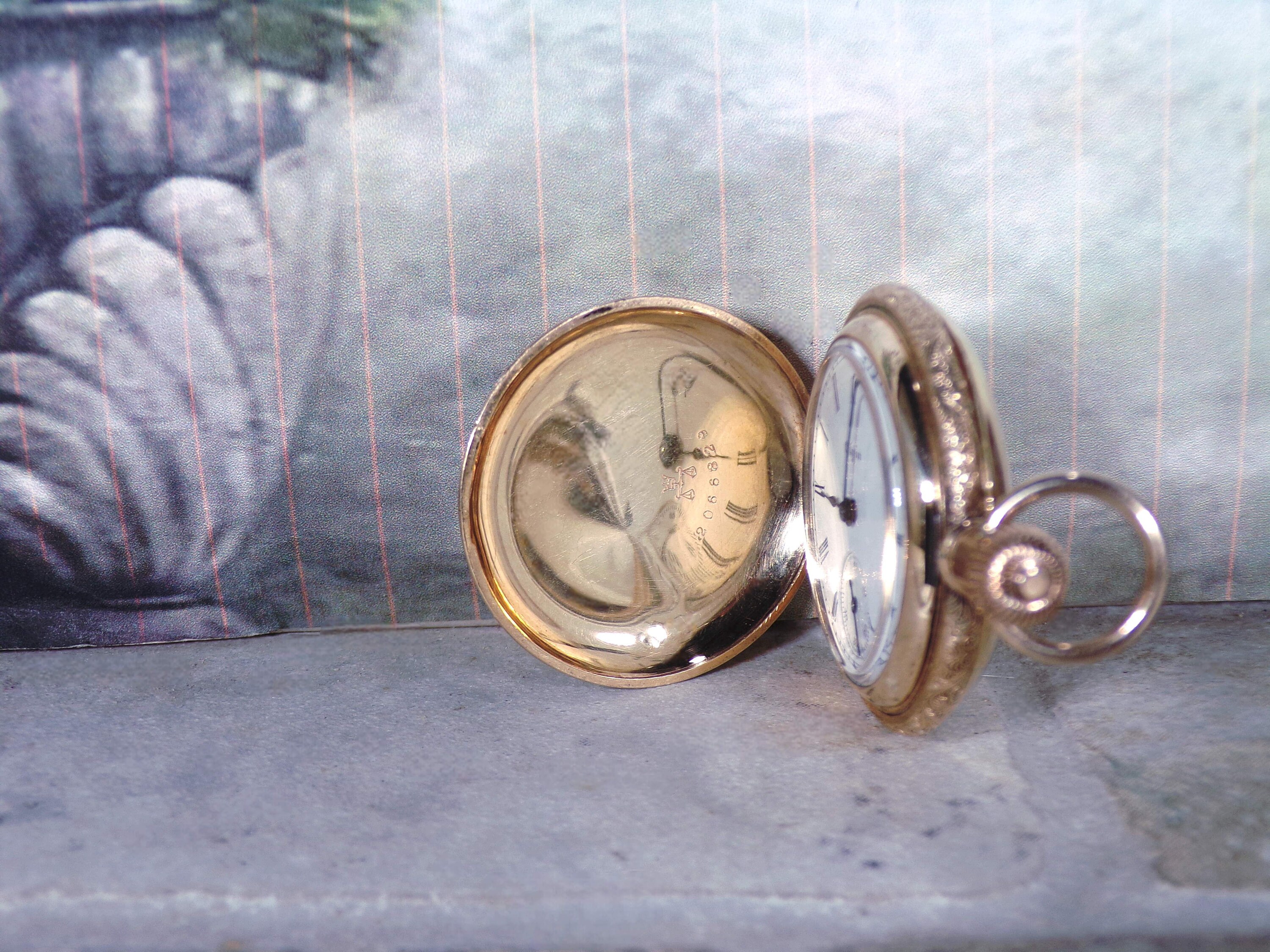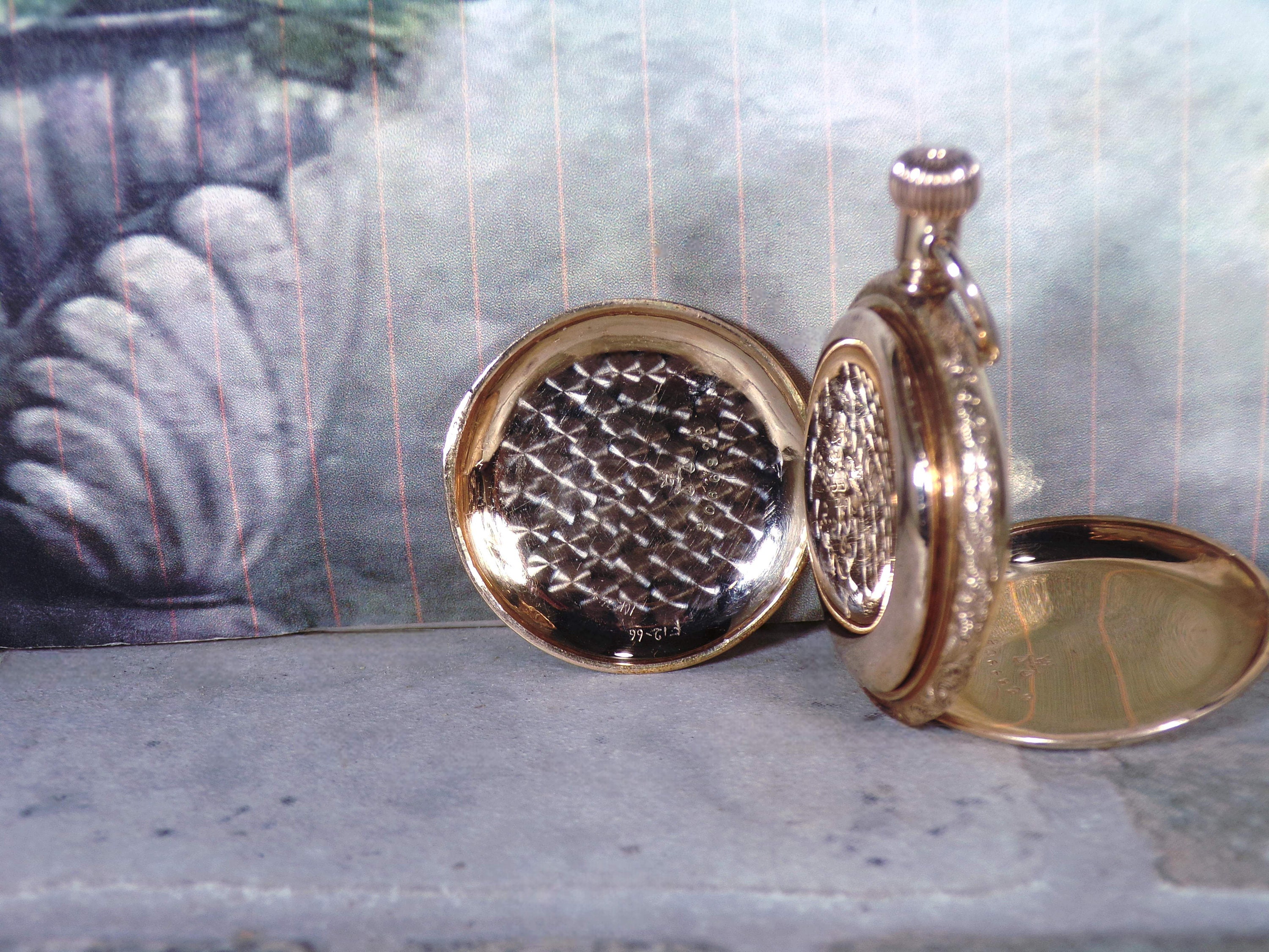 1893 14K Yellow Gold ELGIN Floral Enamel Pocket Watch – 7 Jewels – Mechanical Watch – Engraved – Grade 109 – Antique Pocket Watch - Runs!!