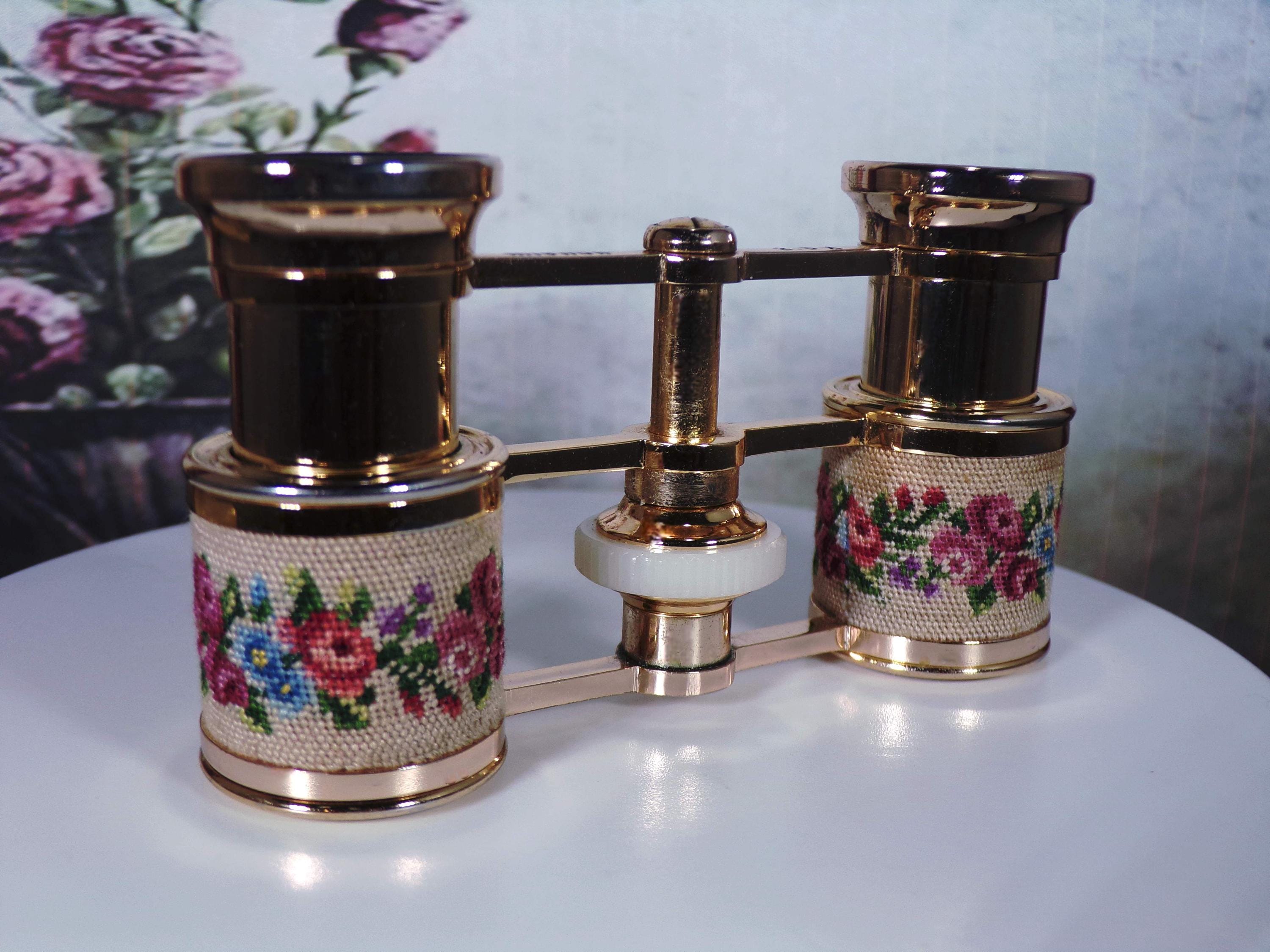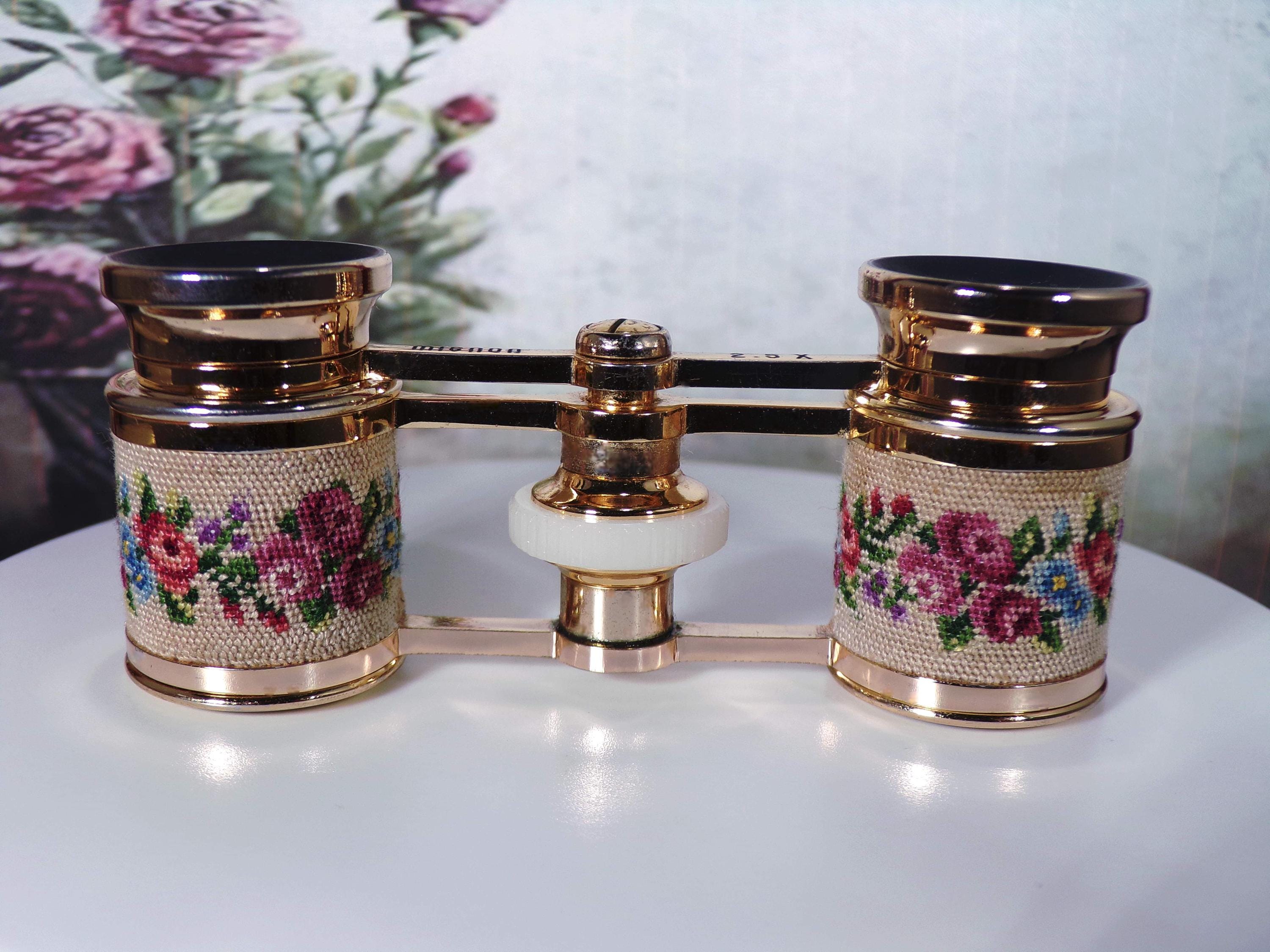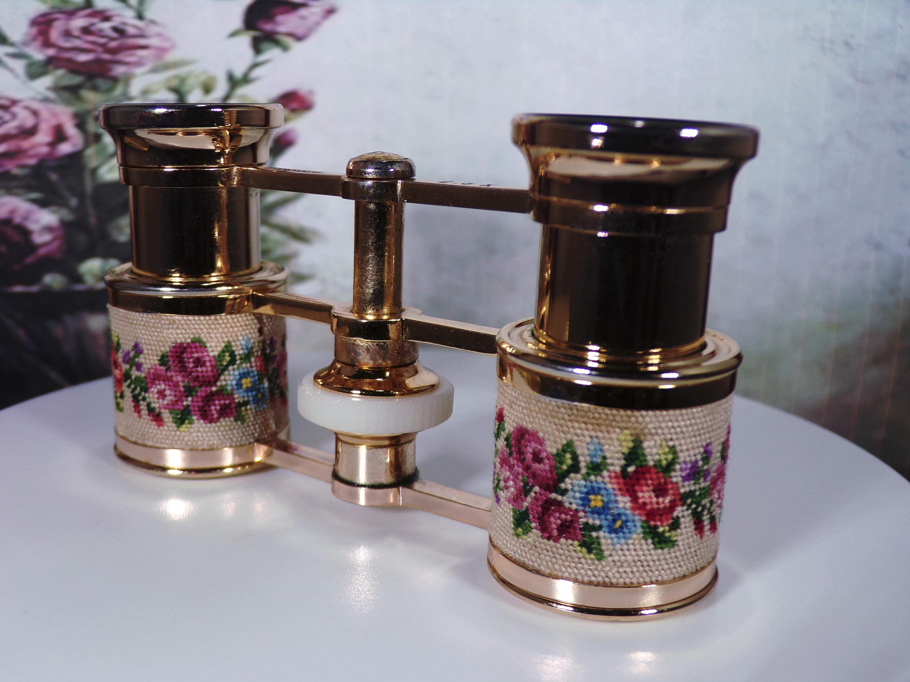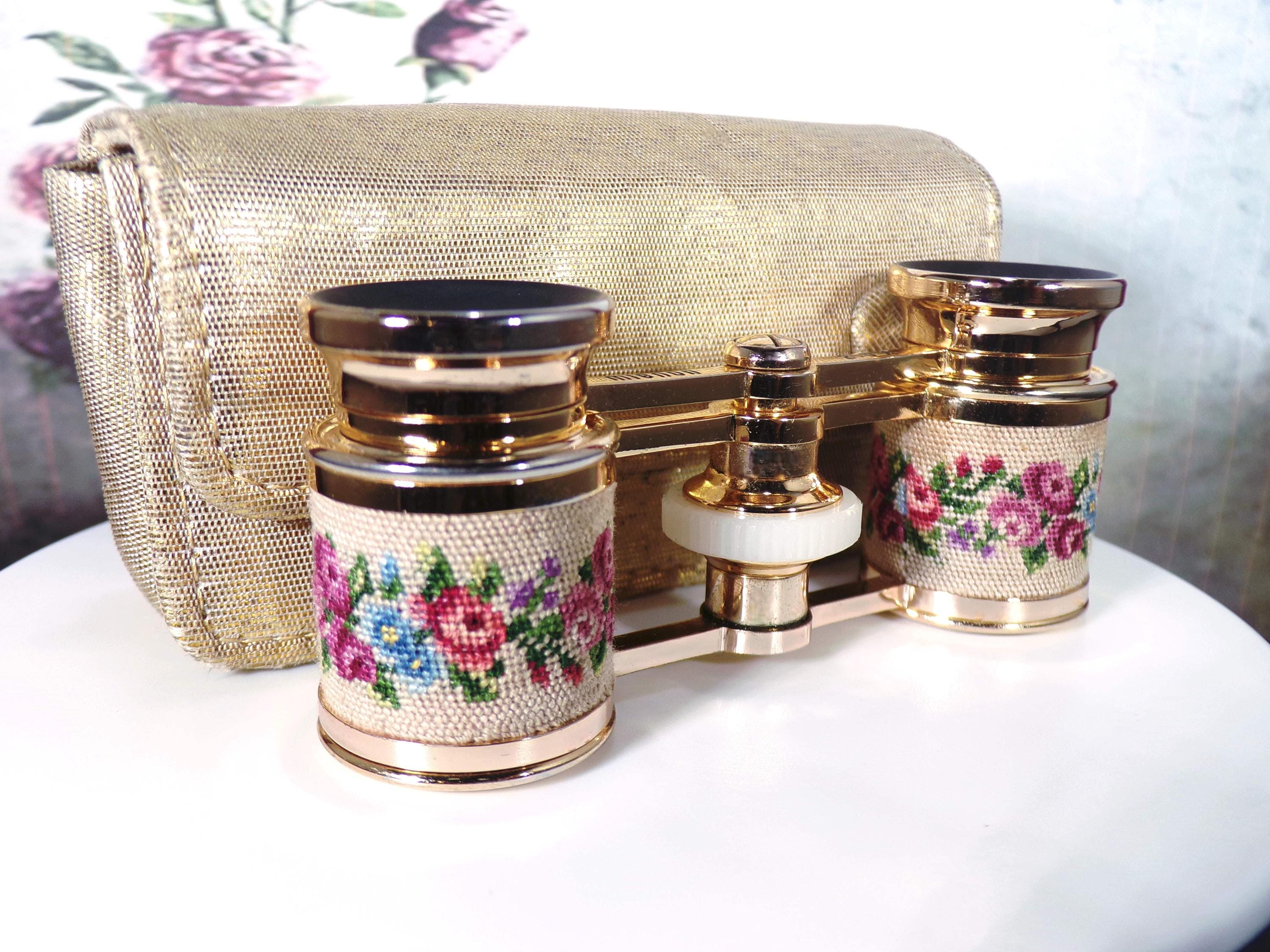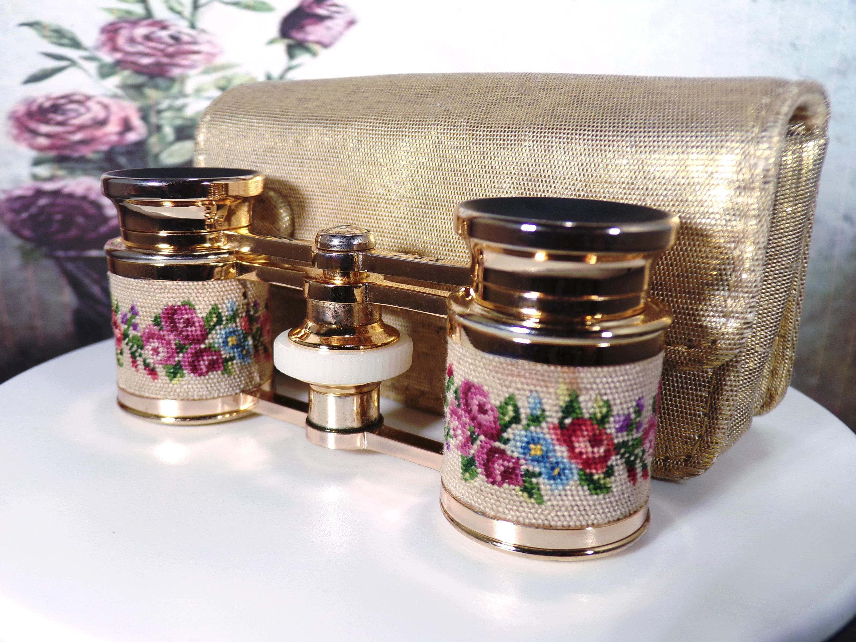 Opera Glasses - Charming Vintage MIGNON Micro Petite Point Mini Opera Glasses – Floral Design - Theater Glasses - Mini Binoculars - Sports Glasses - Collectible
