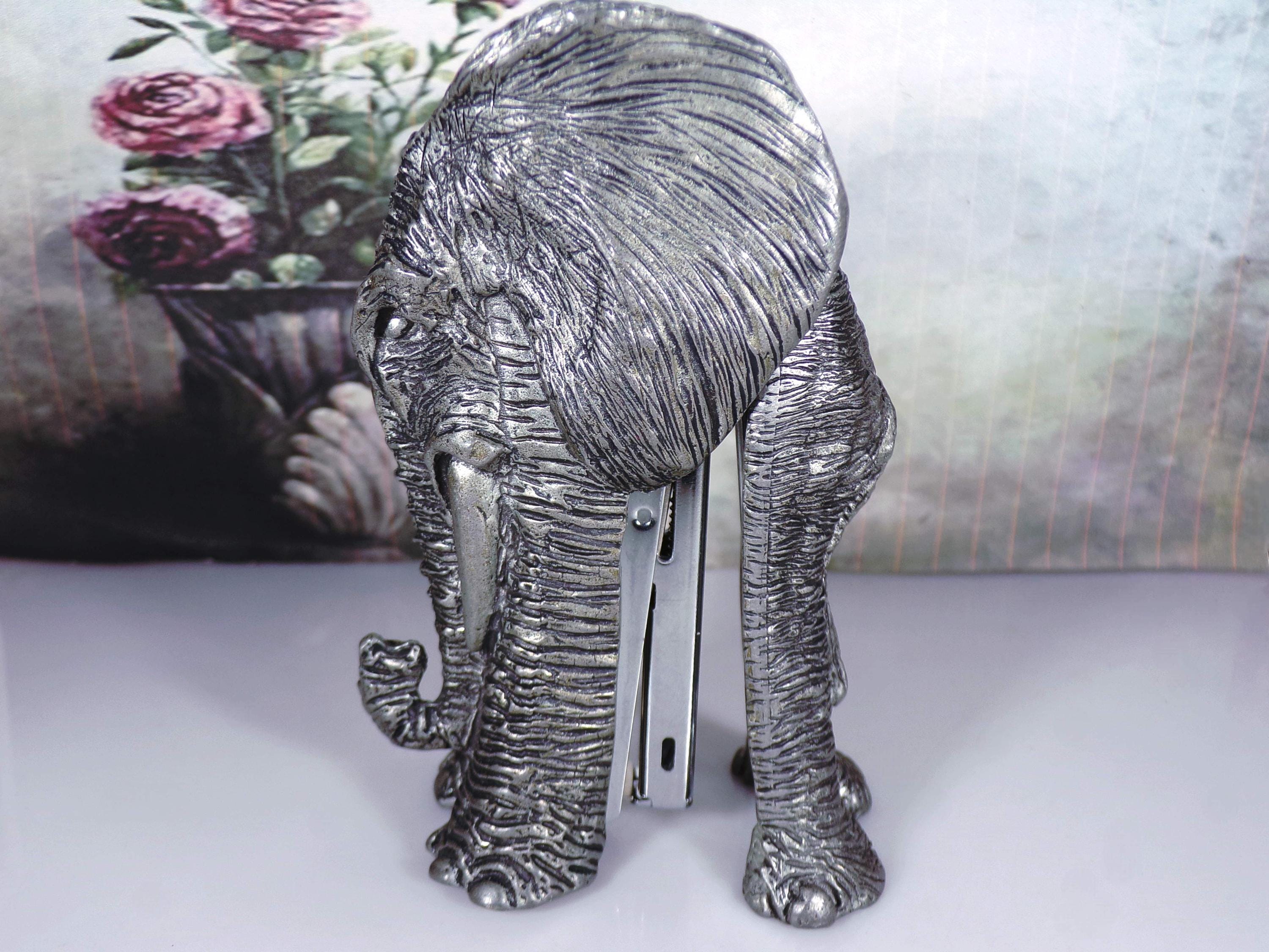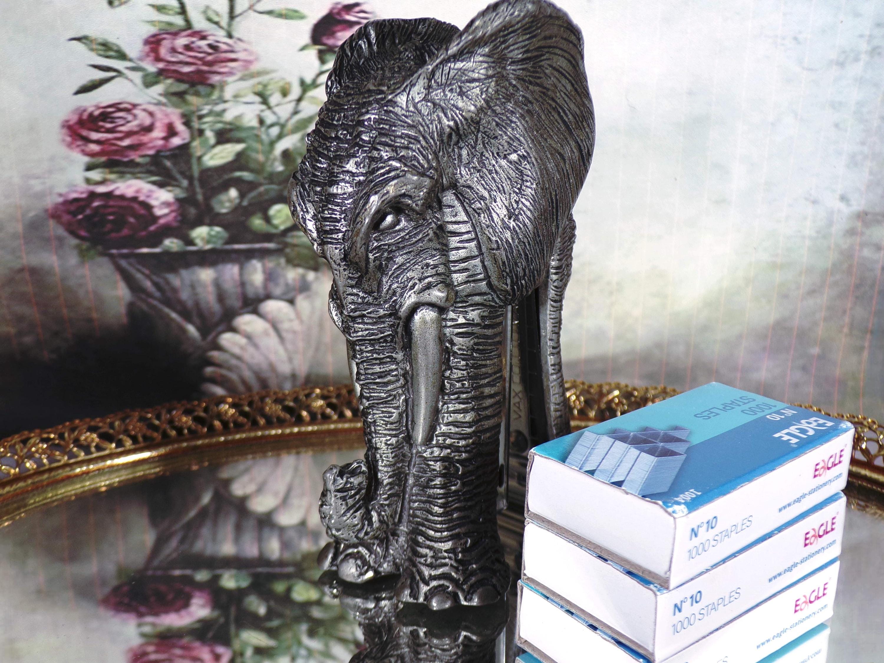 Desk Stapler, Gray Pewter Elephant Sculpted Stapler, Small Stapler, 3 1000 Boxes of Staples, Elephant Desk Accessory – Vintage Collectible