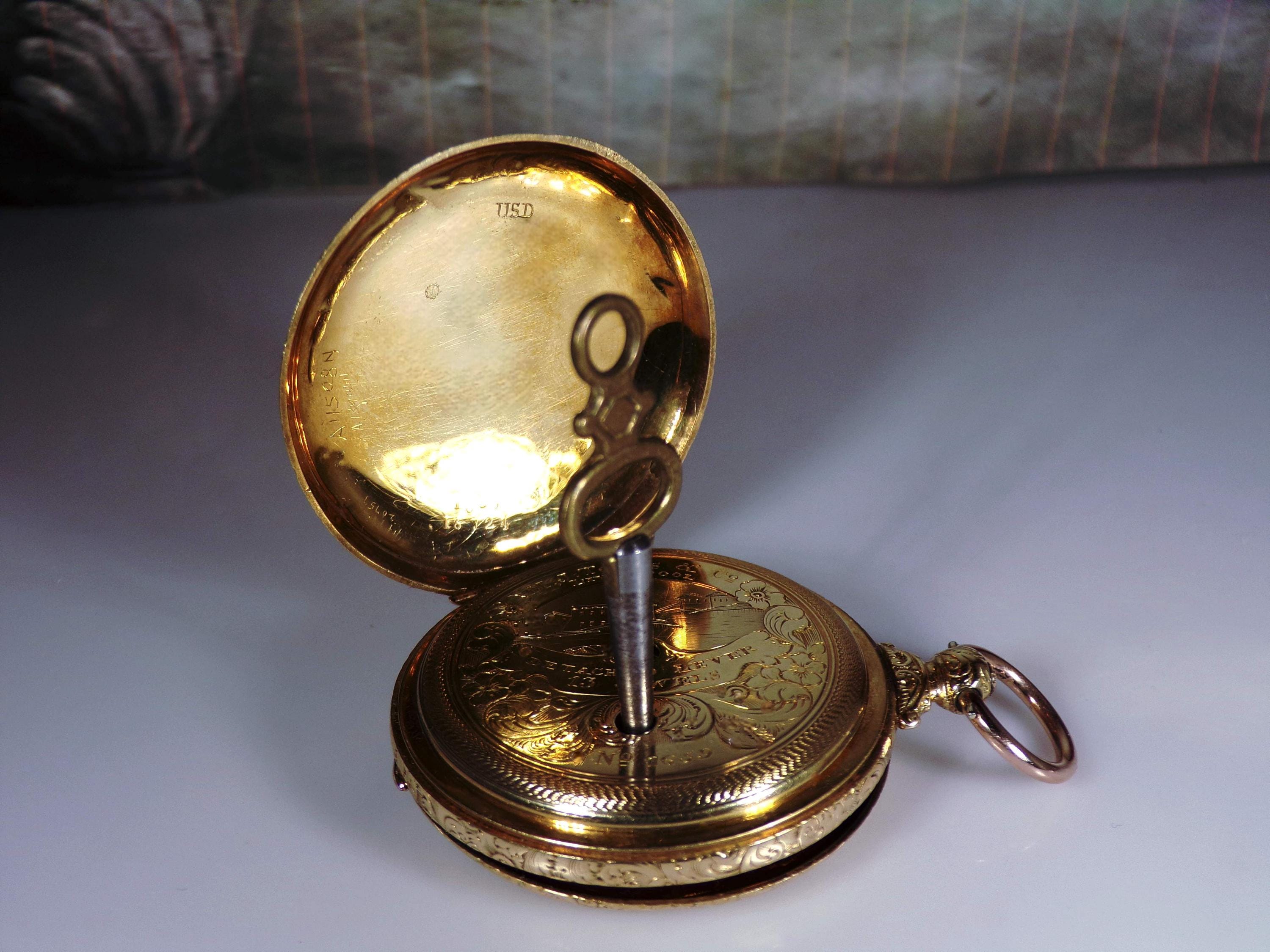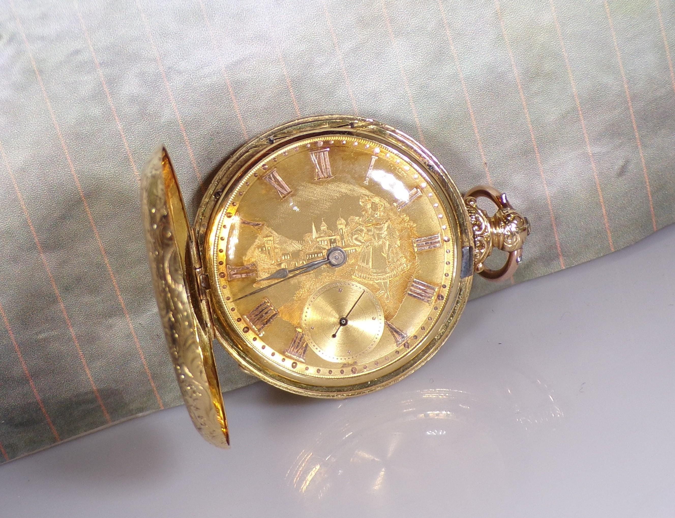 • Metal: 18 Karat Hunter Case Pocket Watch