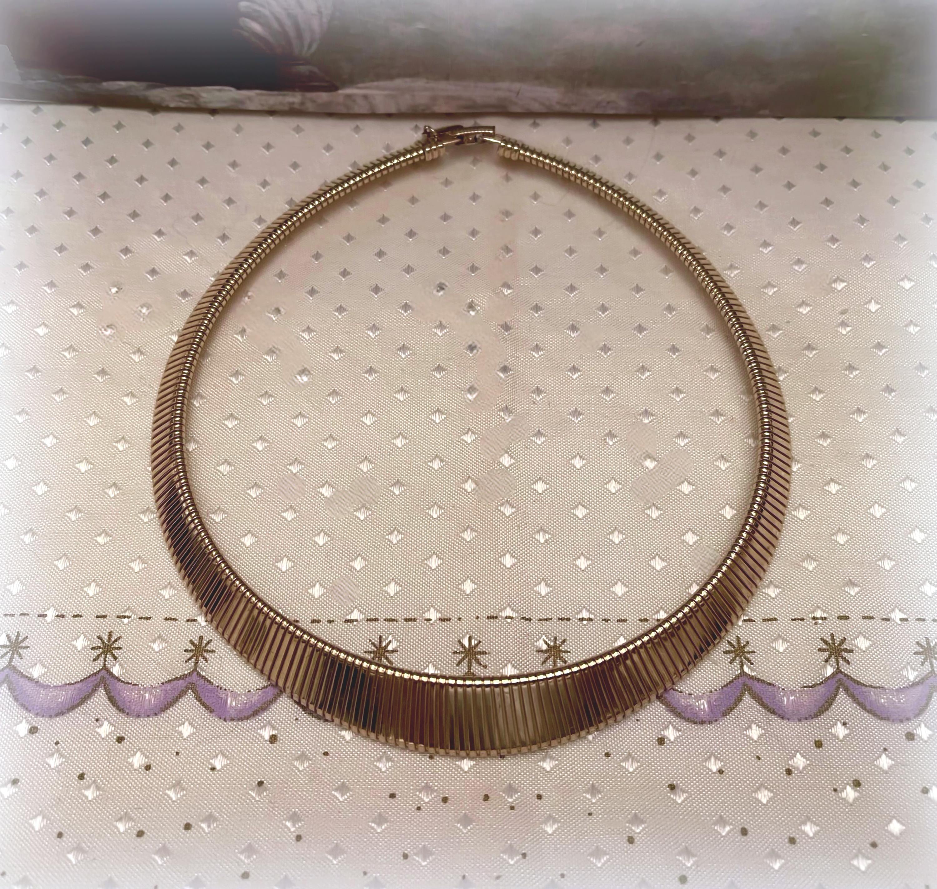 This is a beautiful, classic Park Lane Gold Tone Omega choker that graduates in width from front to back. This choker can be worn as an elegant formal accessory, or you can also wear it with jeans and a nice shirt. It is perfect for any occasion. This choker – necklace can easily become your go to accessory for years to come!