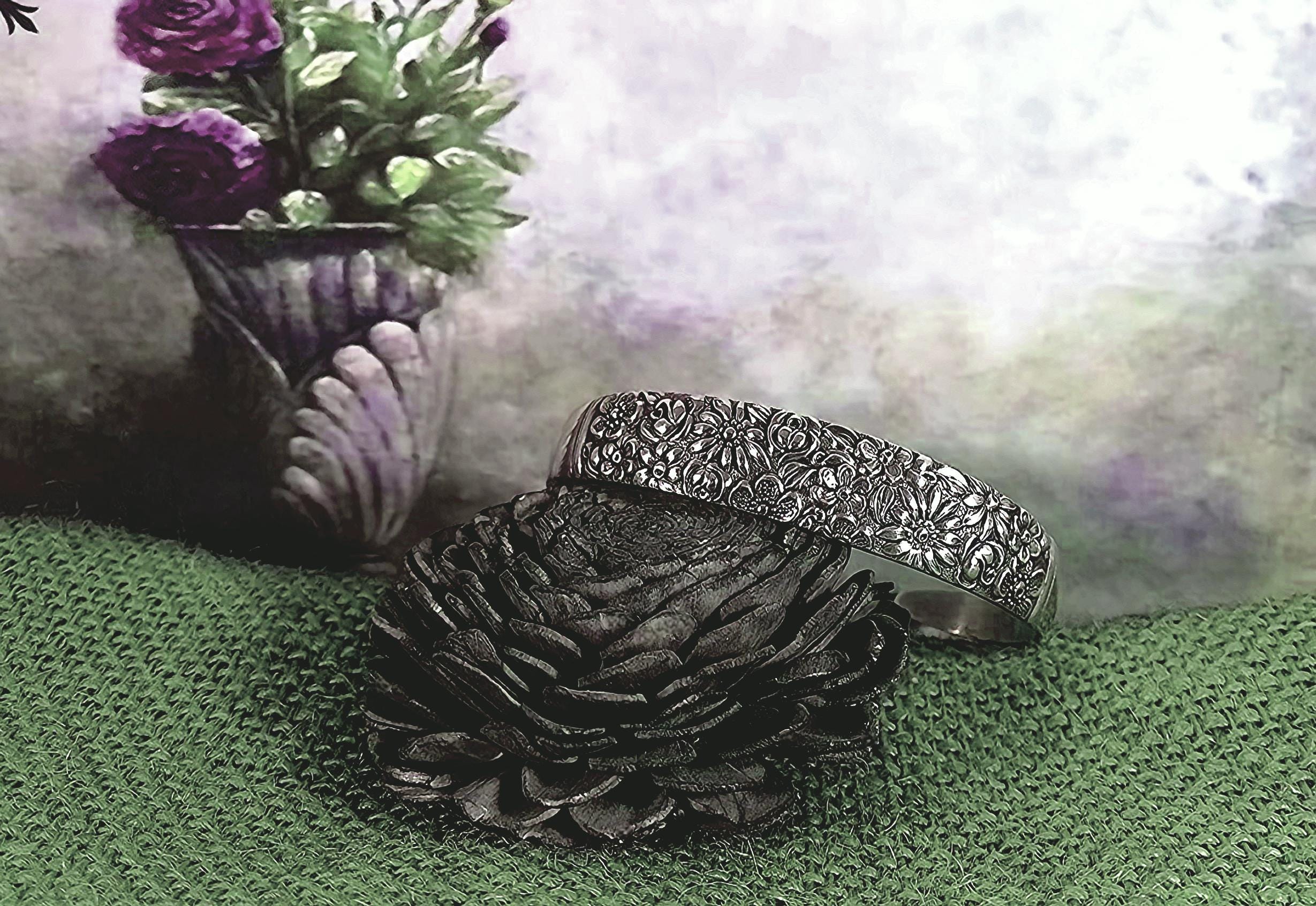 • Style: Contessina – Embossed Floral Patina detailed Relief Cuff Bracelet