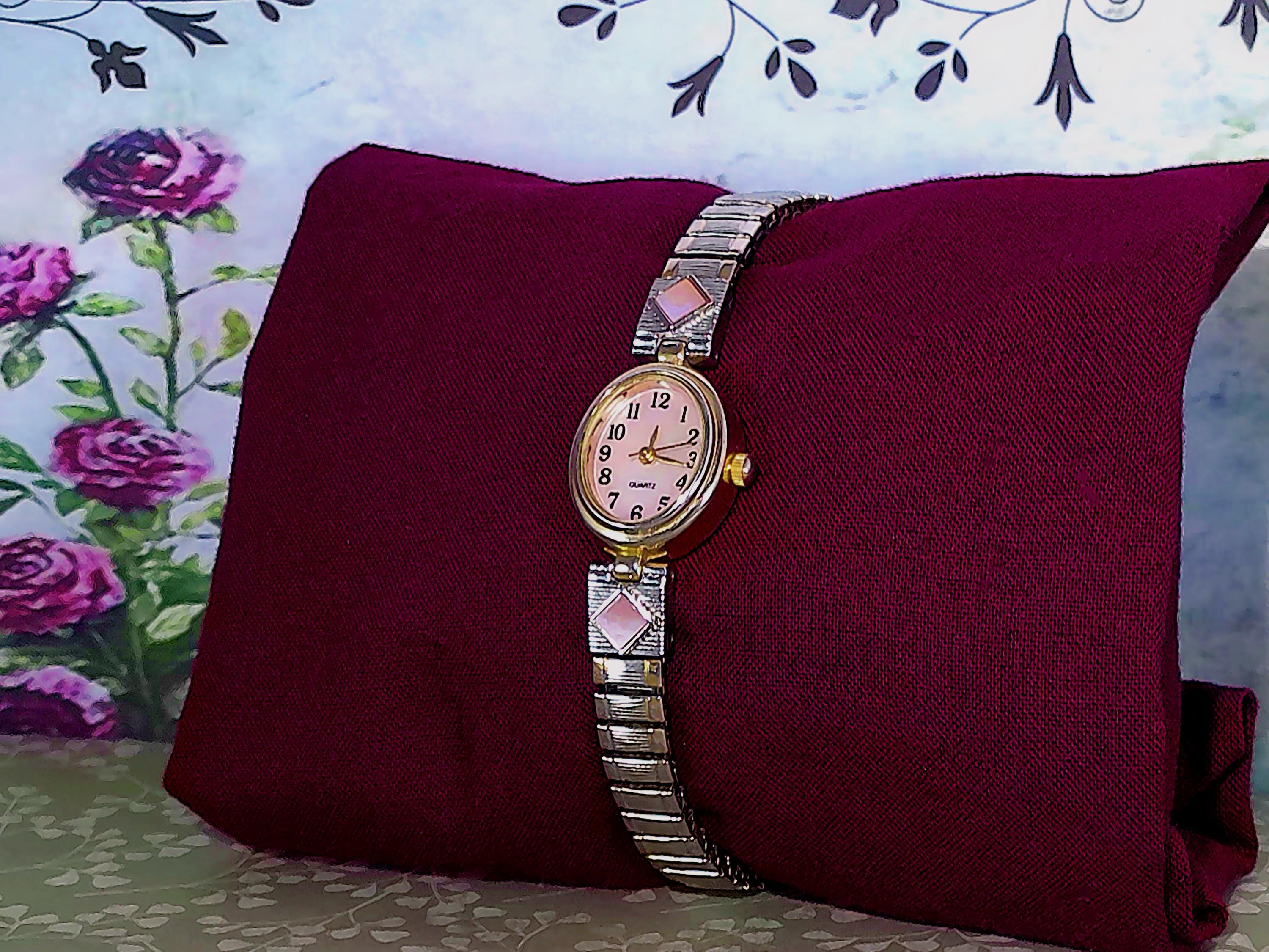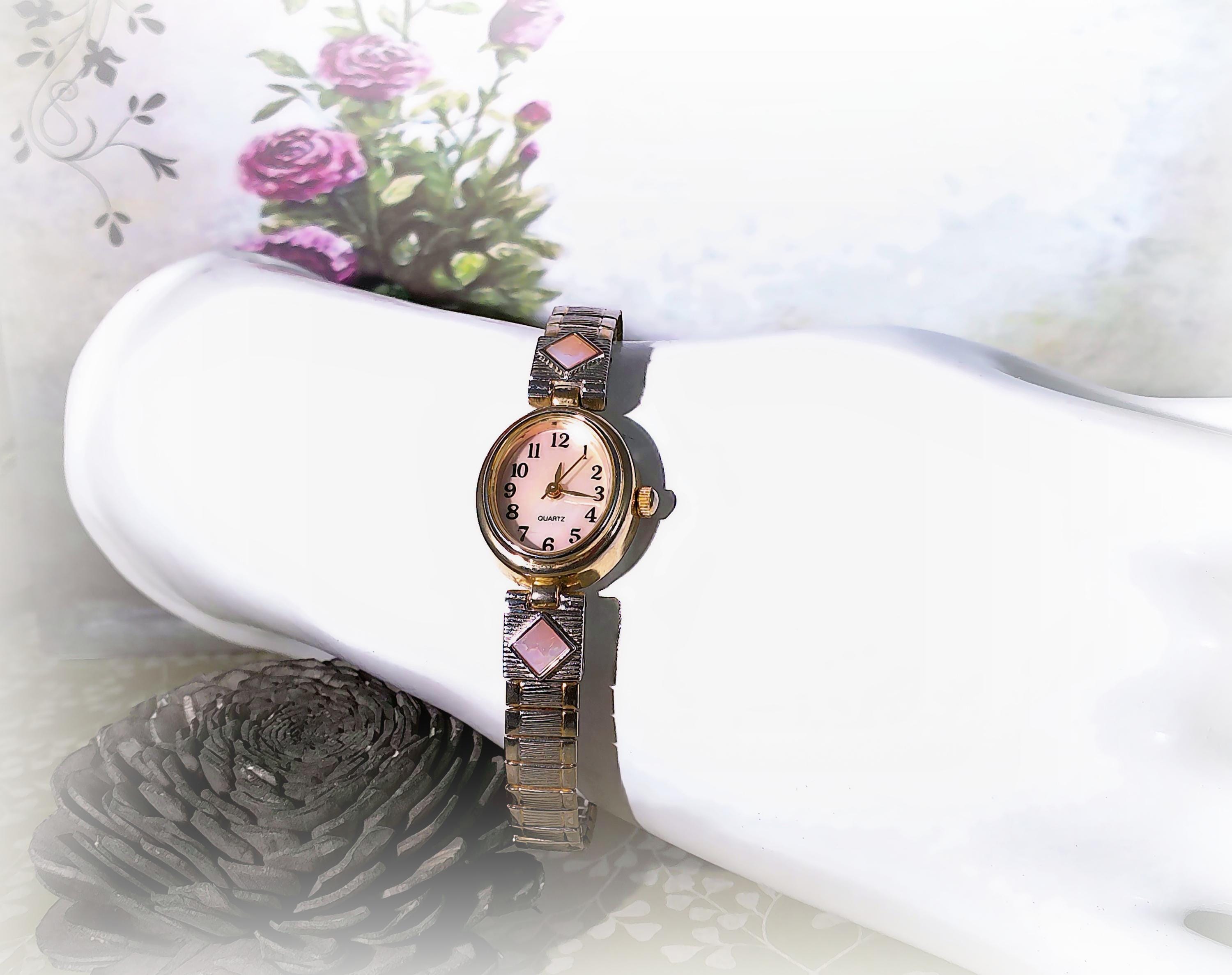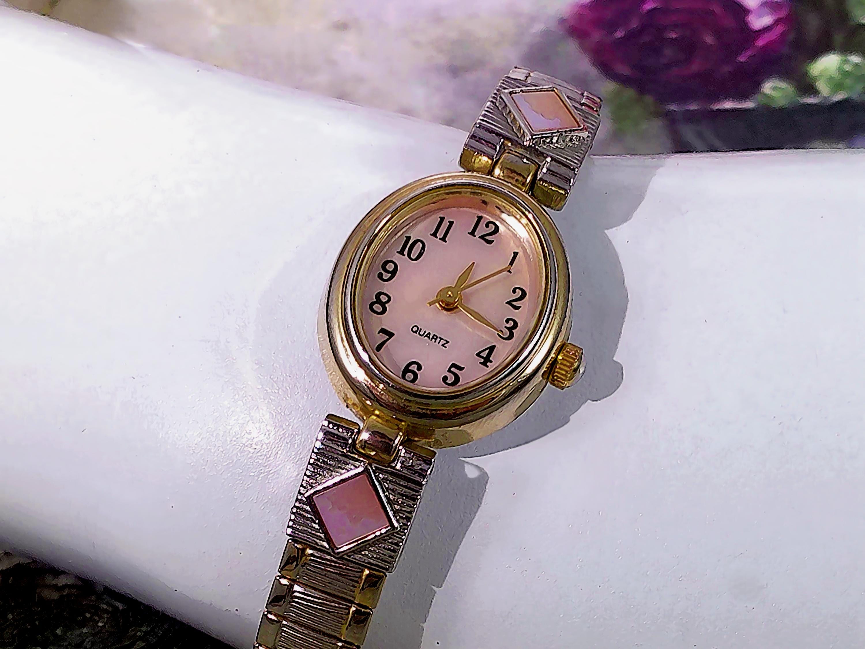 Women’s Watch – Vintage Watch by M.Z Berger & Co., Inc. with Mother of Pearl Pink Accents - Analog – Quartz – Japan Mvmt – WS43B 187 PC21