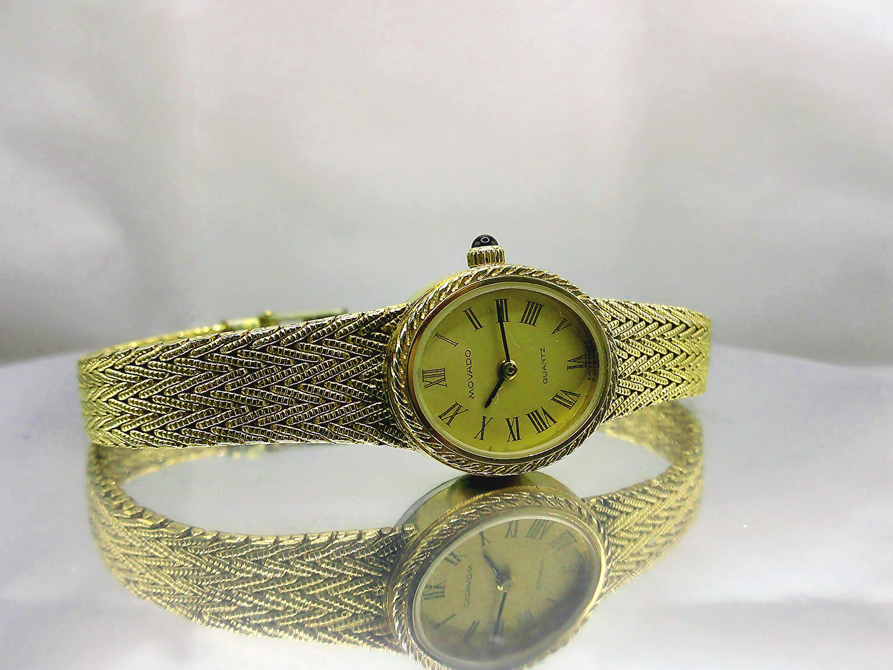 Womens Movado Gold Tone Wrist Watch – Quartz Watch – Analog Watch – Gold Tone Mesh Band – Vintage Watch