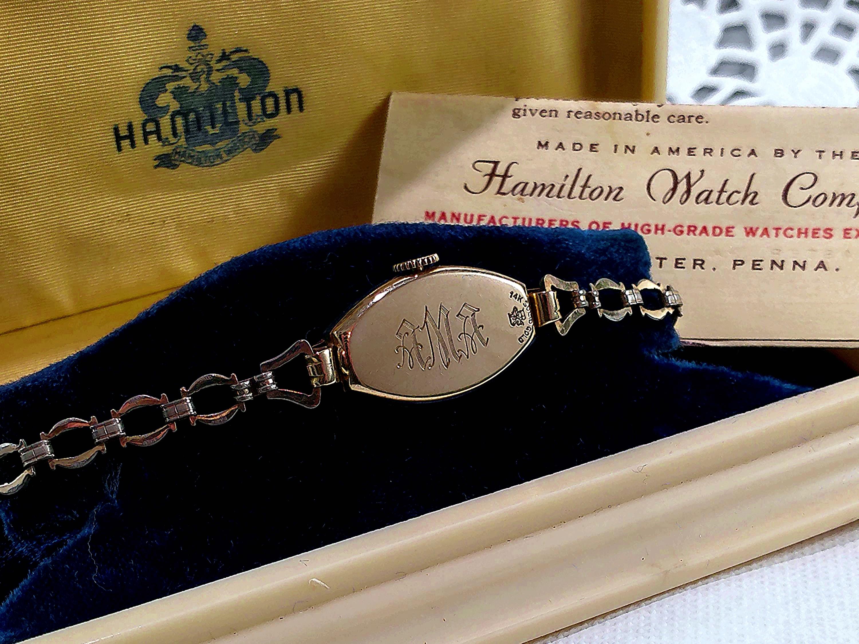 • Hallmark(s): Hamilton, 14 Kt Solid Gold, 12 Kt Gold Filled, Belmont, Made in USA