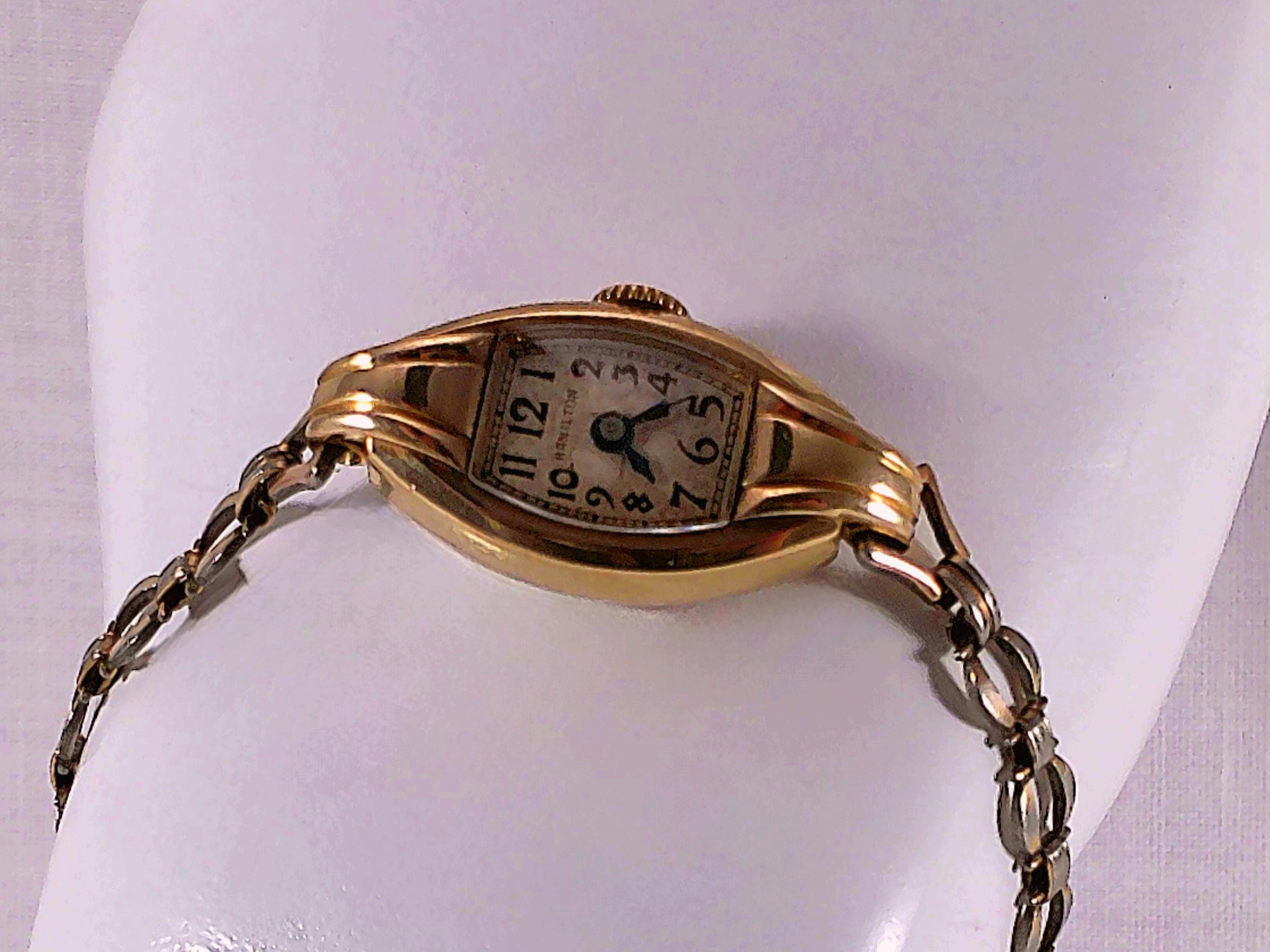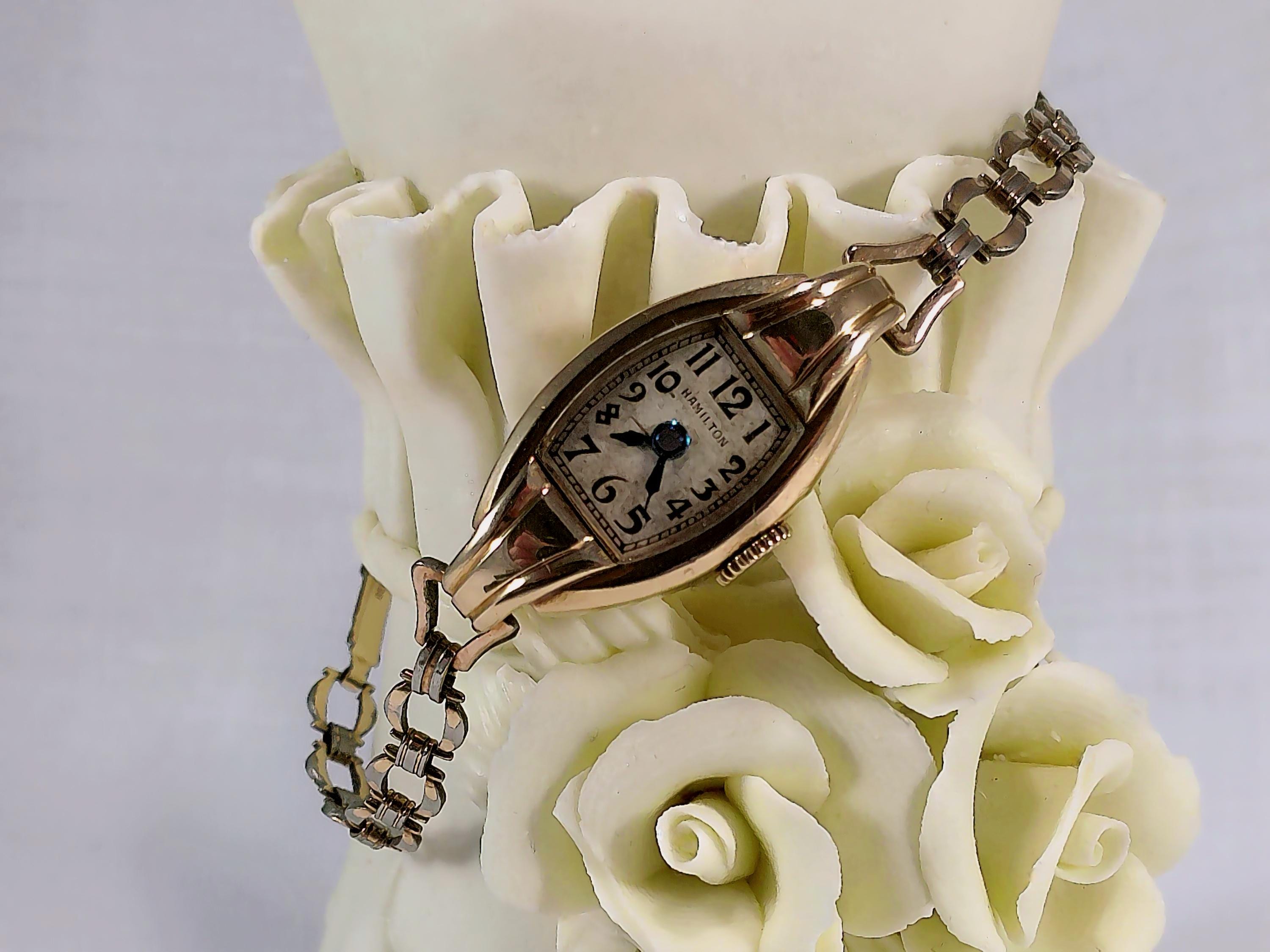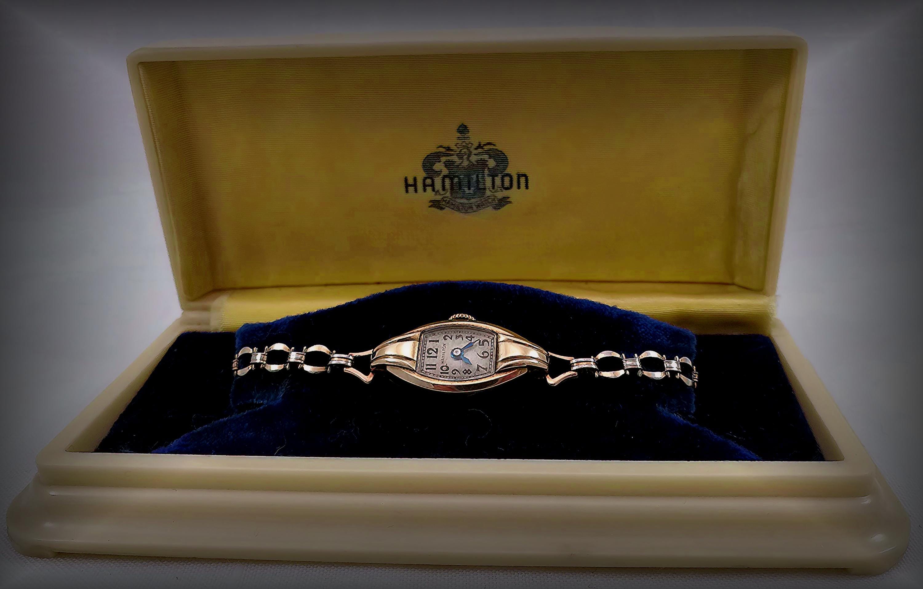 Women’s Wrist Watch – Hamilton – 14 Kt Solid Gold – 17 Jewel – Analog – Tonneau – Wind up – Vintage Circa 1930’s