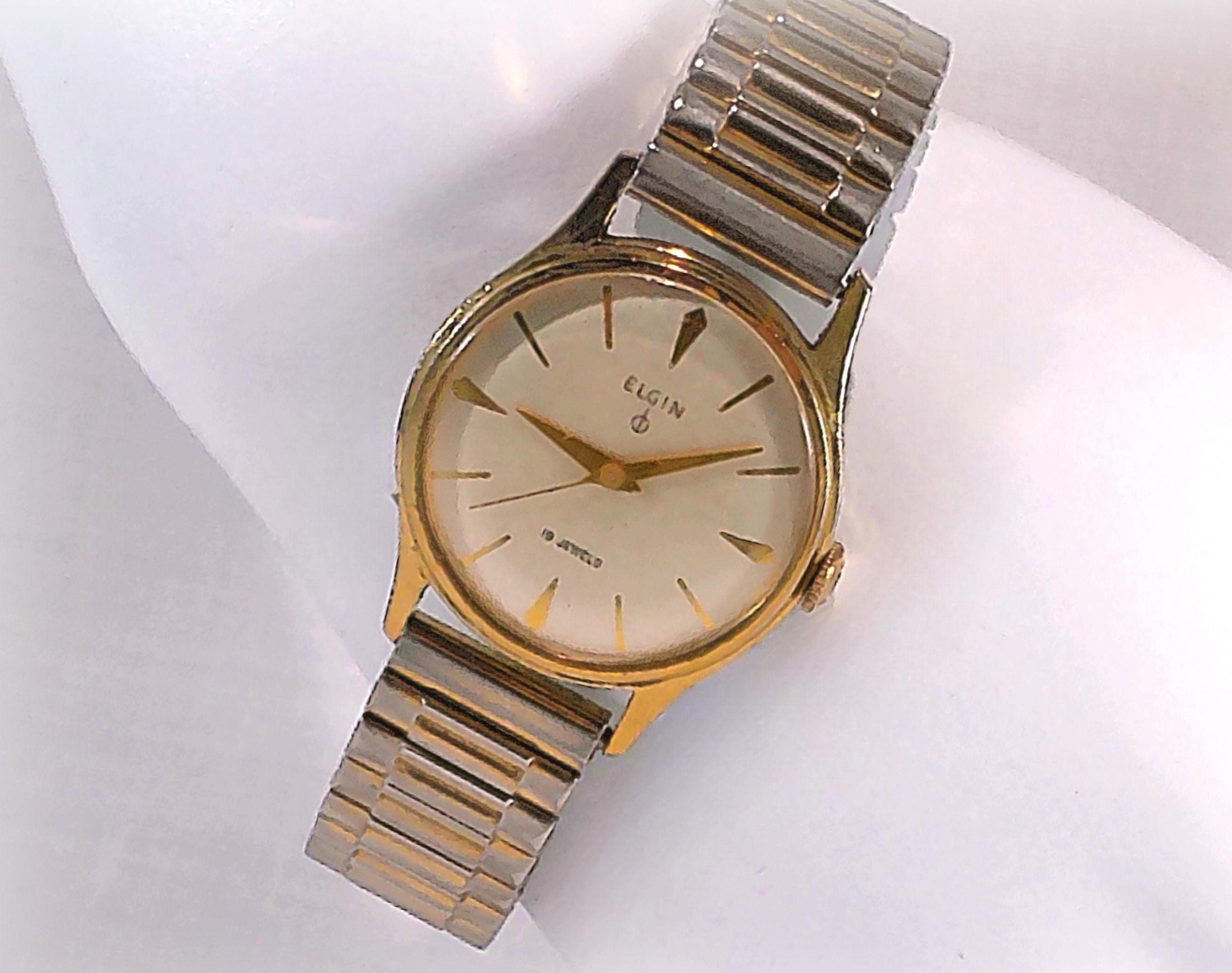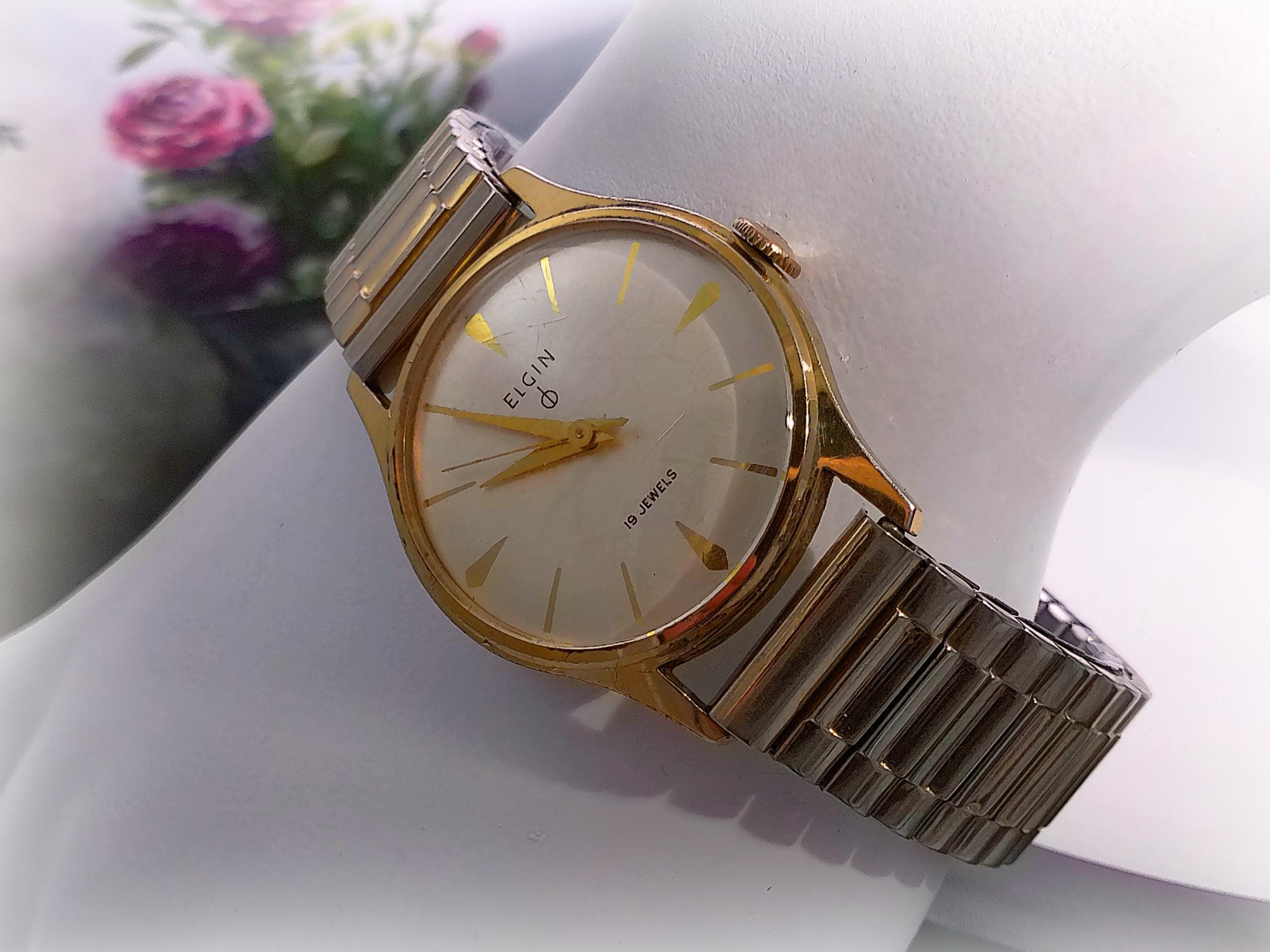 Men’s Wrist Watch - Elgin Men’s Round Dura Balance 19 Jewel Wrist Watch – Two Tone Gold and Silver -Analog – Vintage Circa 1960s Wristwatch