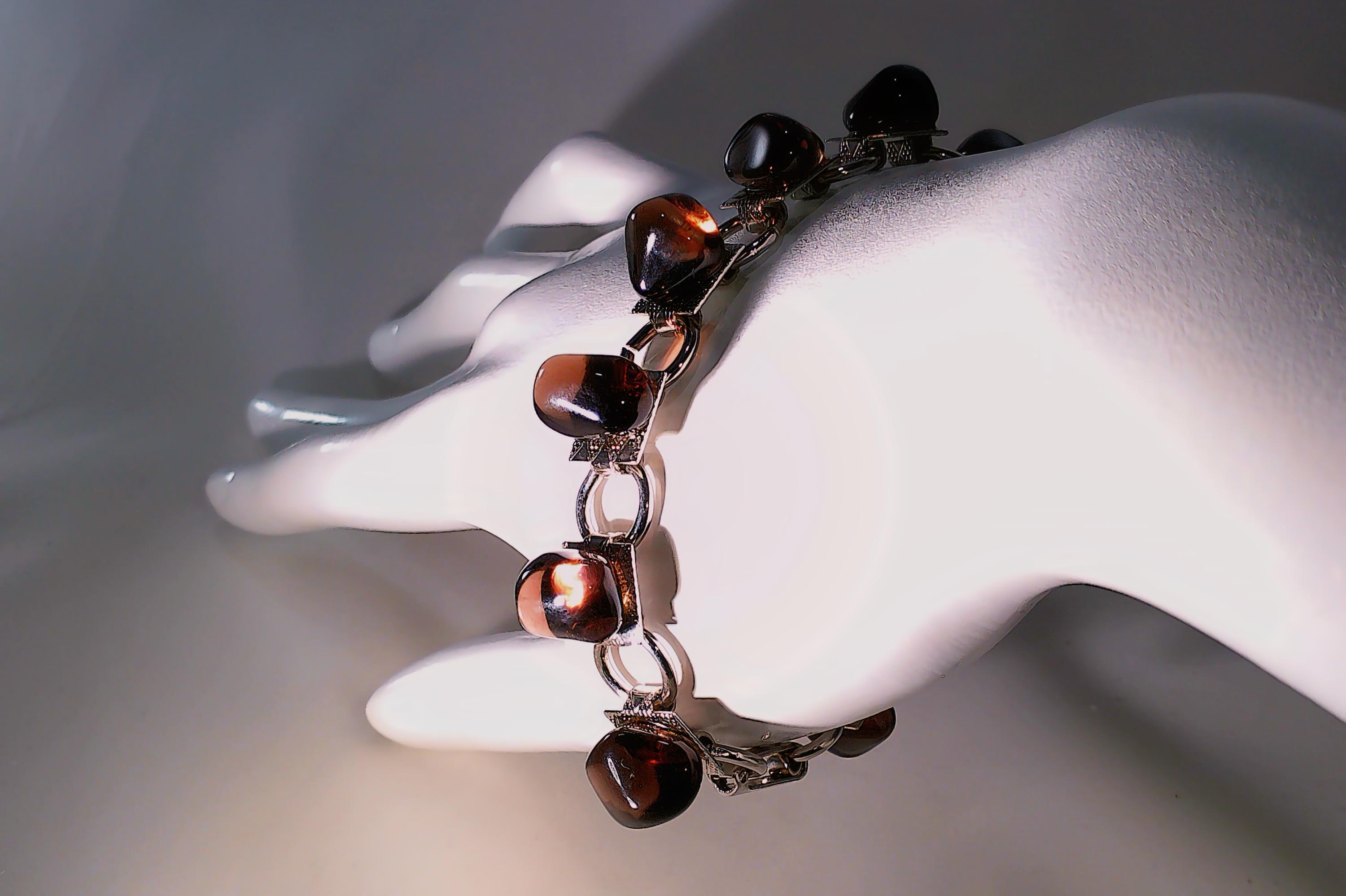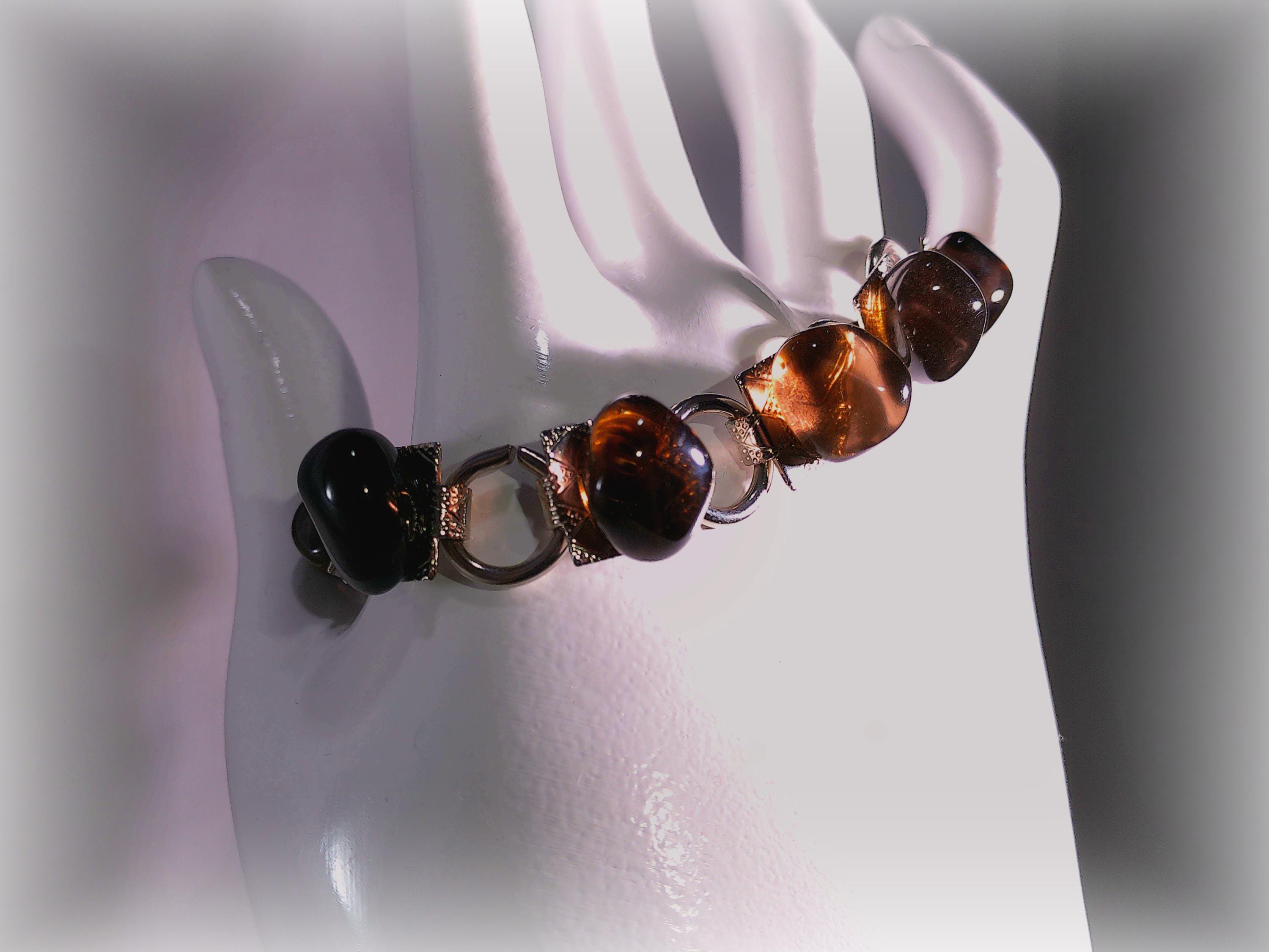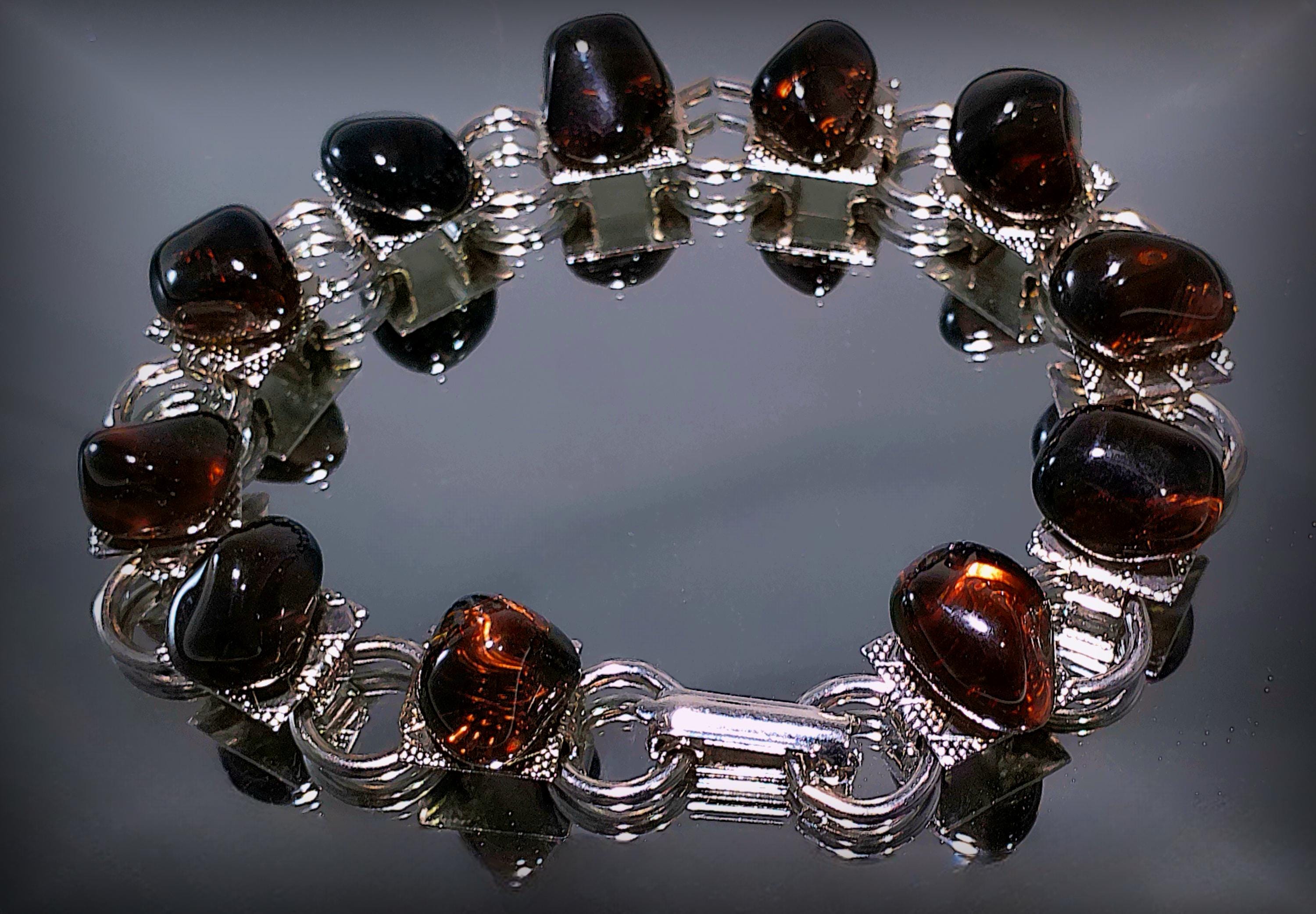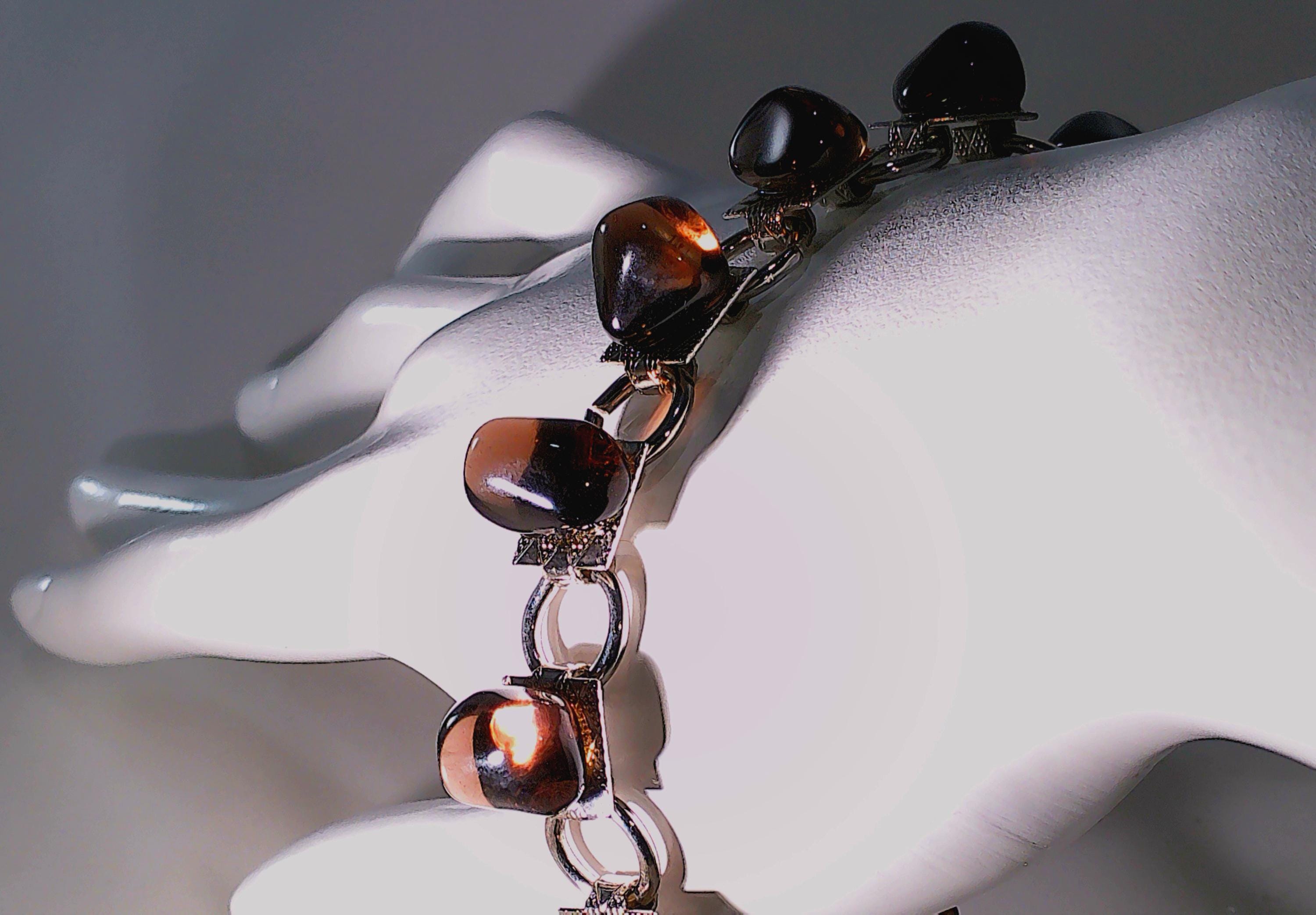 Women’s Bracelet – Smoky Quartz – Stainless Steel - Vintage Bracelet