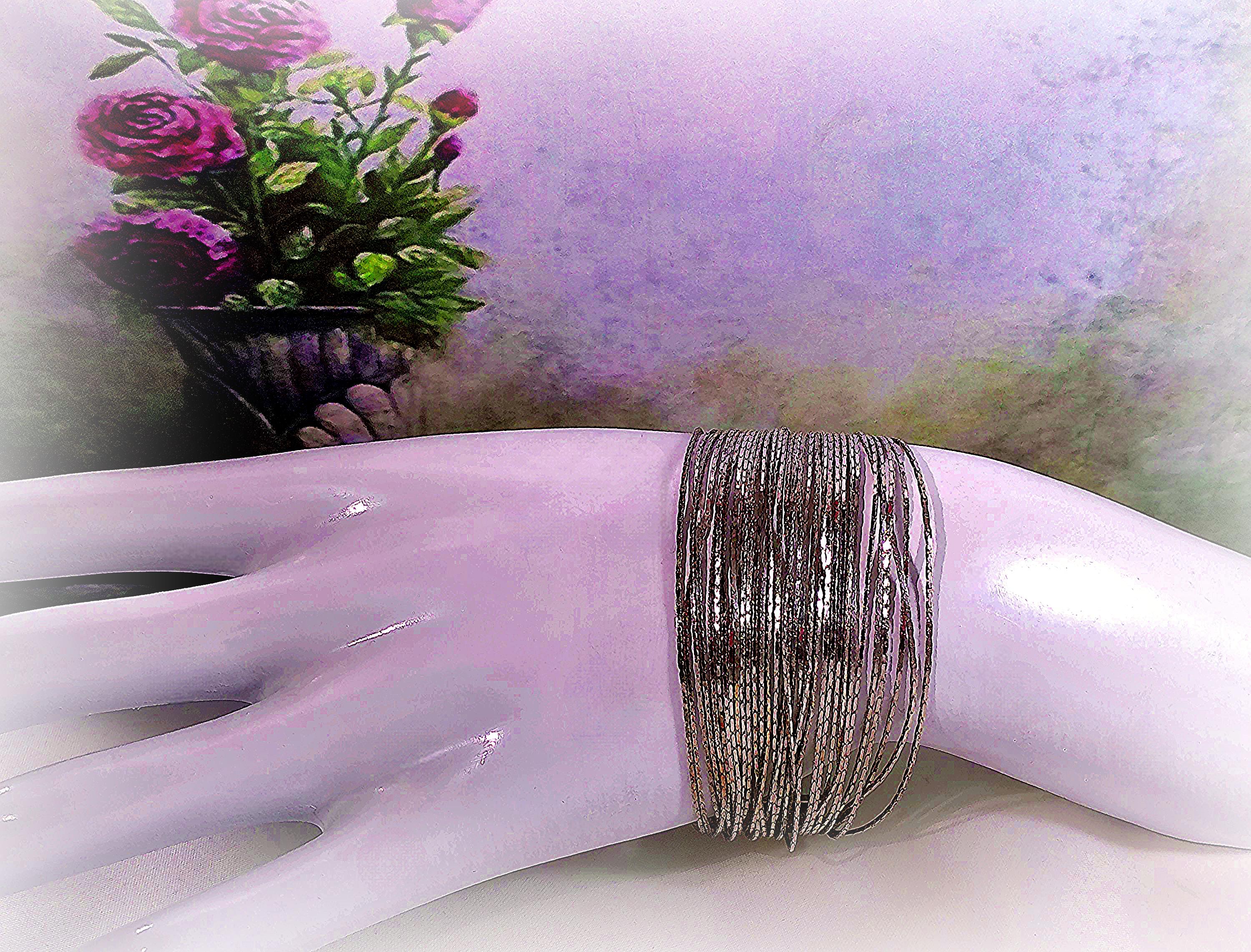 Women's Bracelet - Sterling Silver Multi Strand Bracelet - 32 Strands - Circa 1990's - Vintage Bracelet