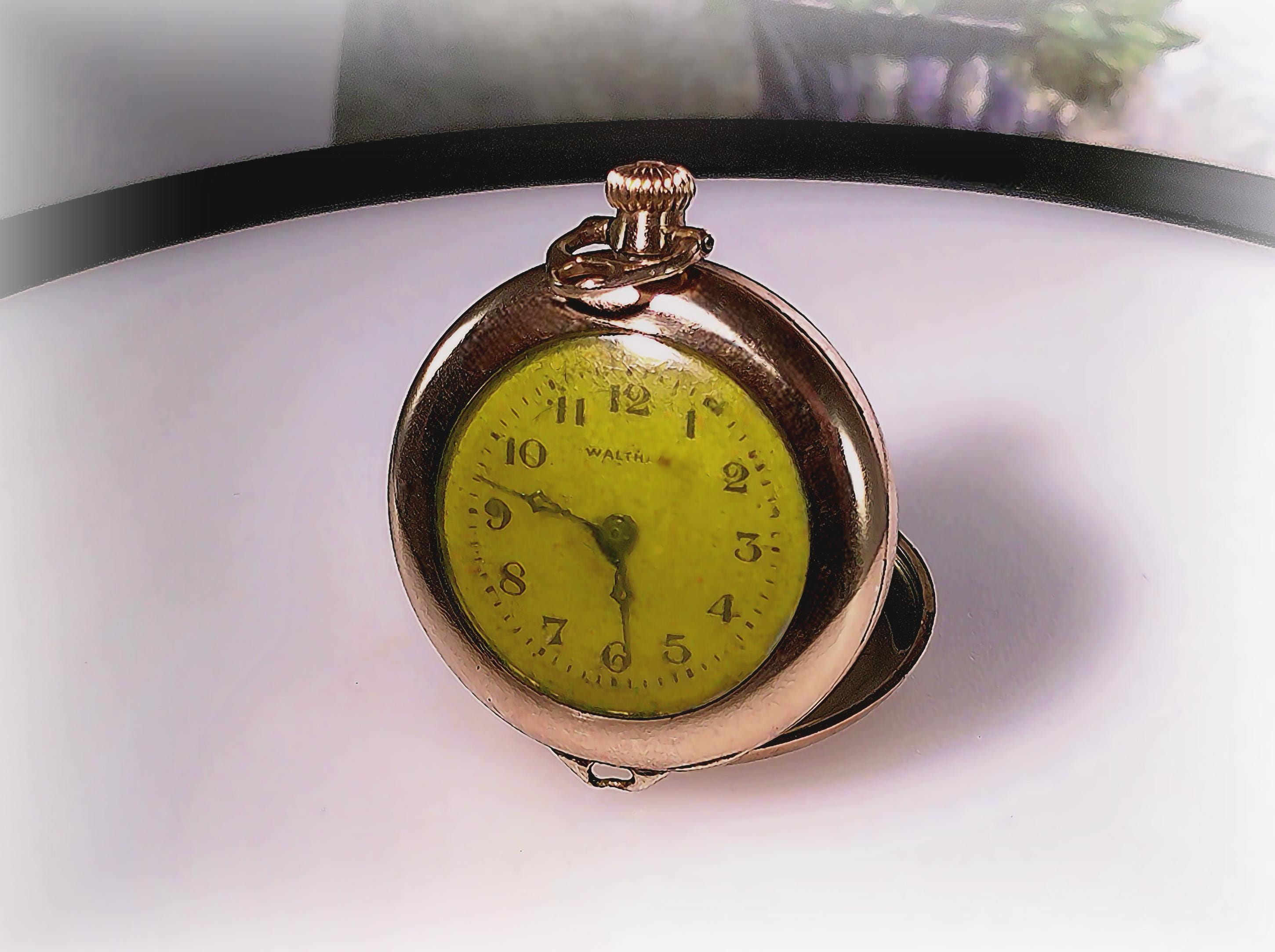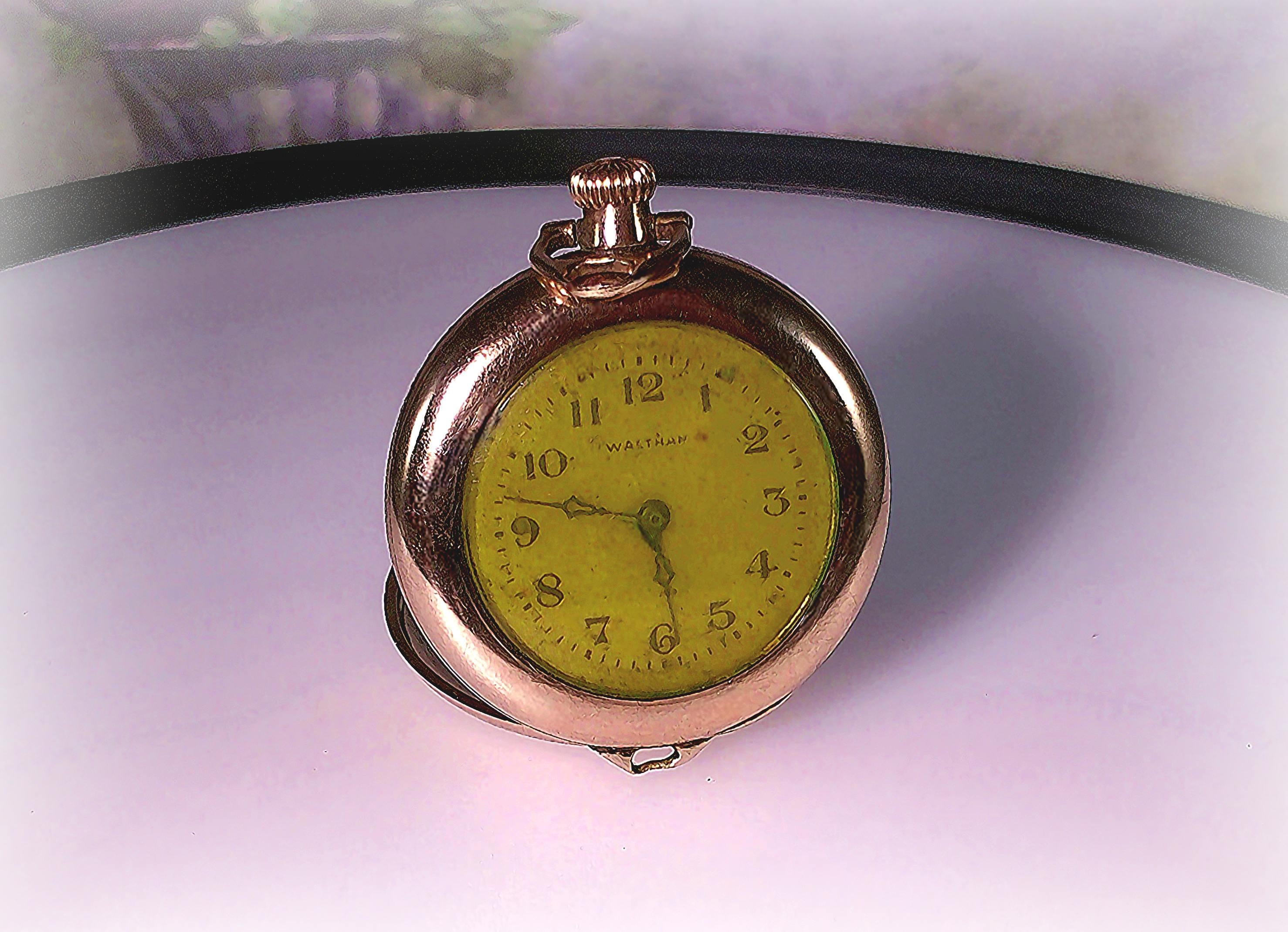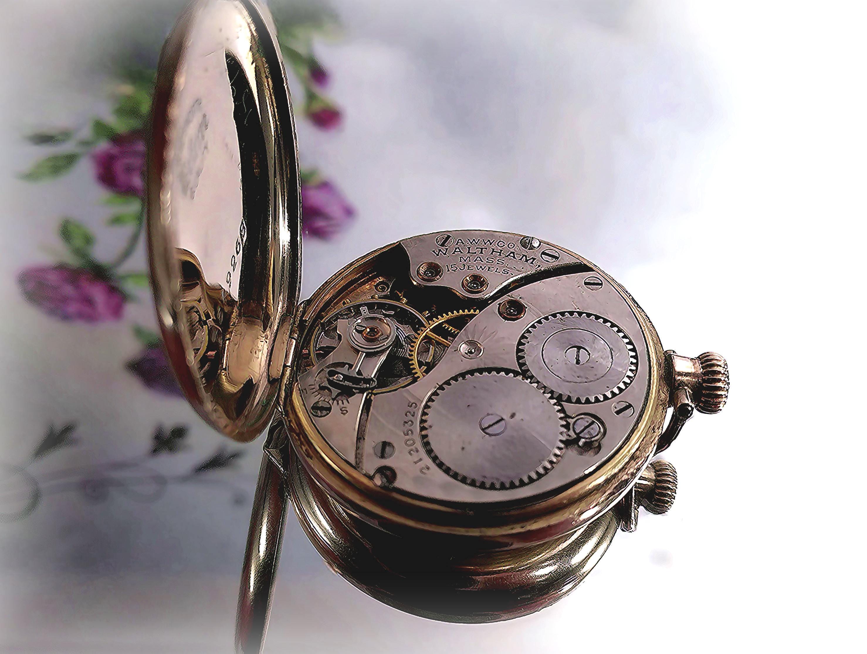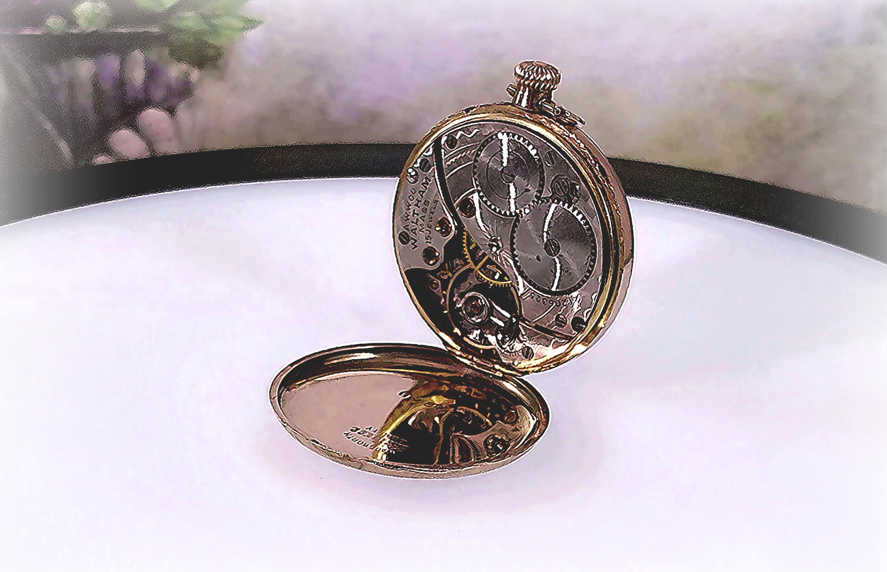 This is lovely Waltham “Referee Quality” Pocket Watch in a Wadsworth Gold Filled case and possesses over a century of stories and secrets. To add a little mystery and intrigue, aside from the professional hallmark engravings, the inside of this pocket watch has multiple personal markings inscribed in the gold by prior owner(s). These markings are a historical account of who serviced the watch and when. Perhaps a treasure hunt is in order, or at the very least a topic of interesting and speculative conversation at your next dinner party. The watch repairman could be a noted and well-known watchman... one never knows...In any case, ownership of this pocket watch involves a legacy of unique and one-of-a-kind history.