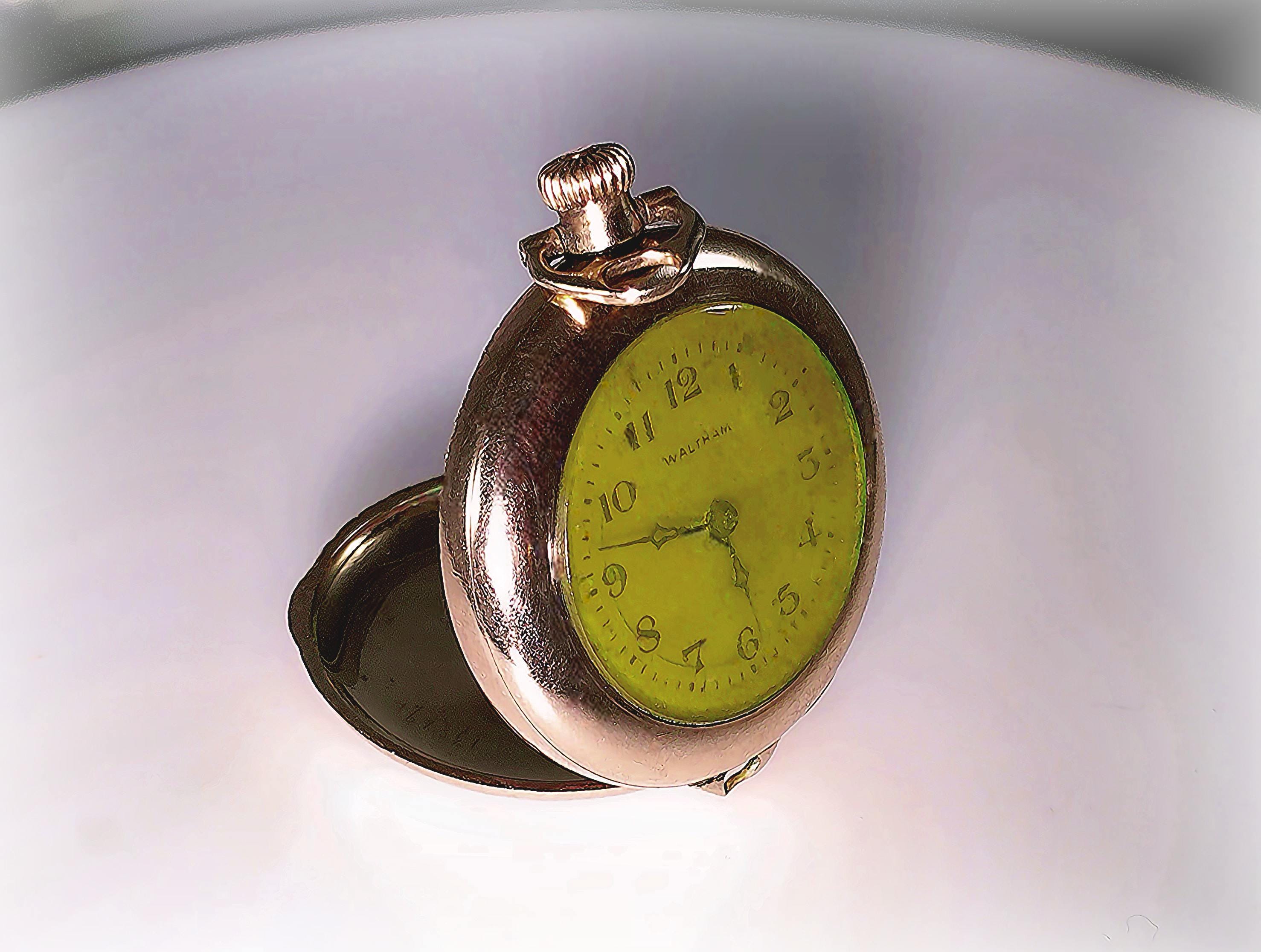 • Hallmark(s): Watch: Waltham, 21205325, A.W.W.CO, Waltham Mass., 15 Jewel; Case: Wadsworth, Referee Quality, 4549268
