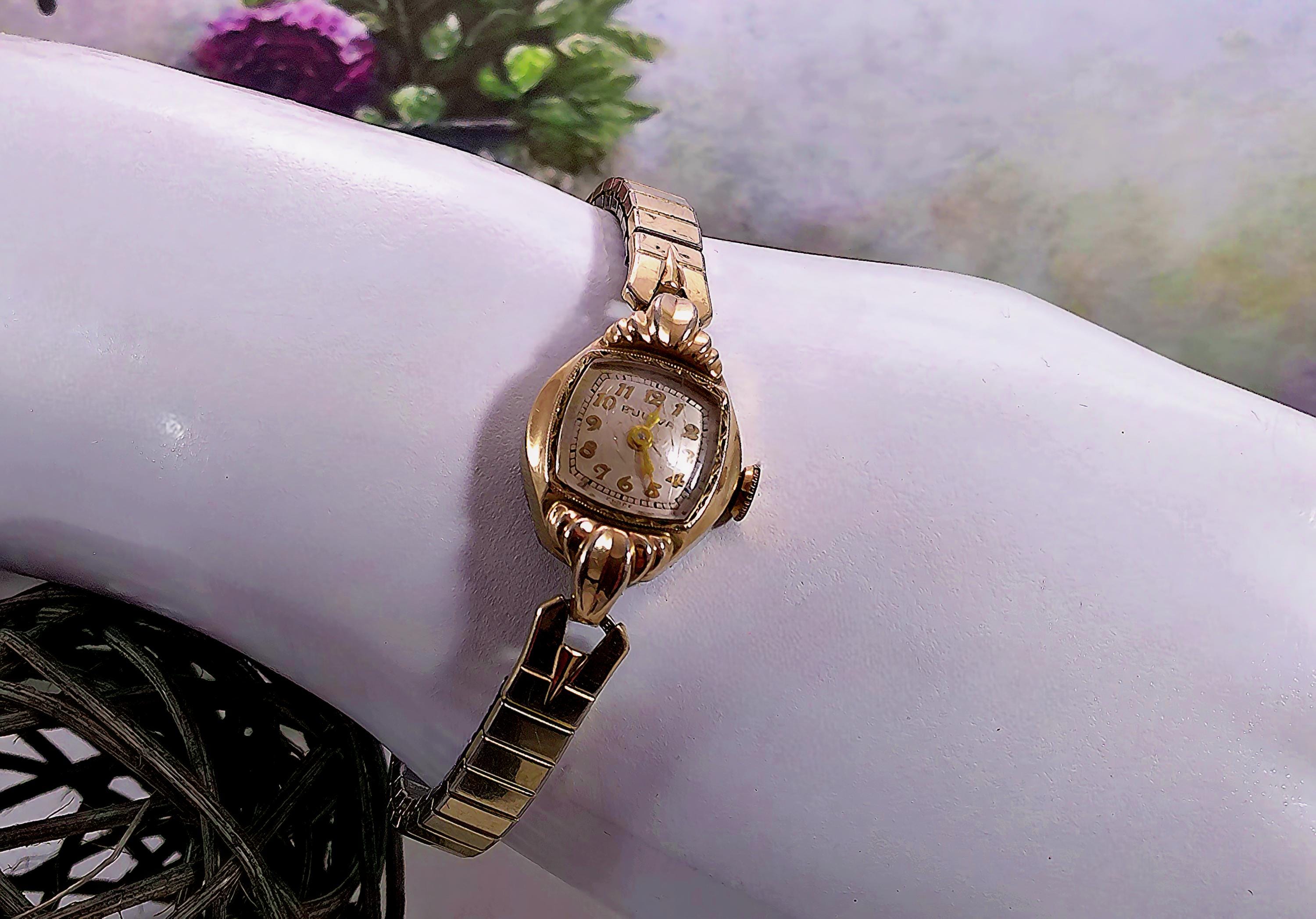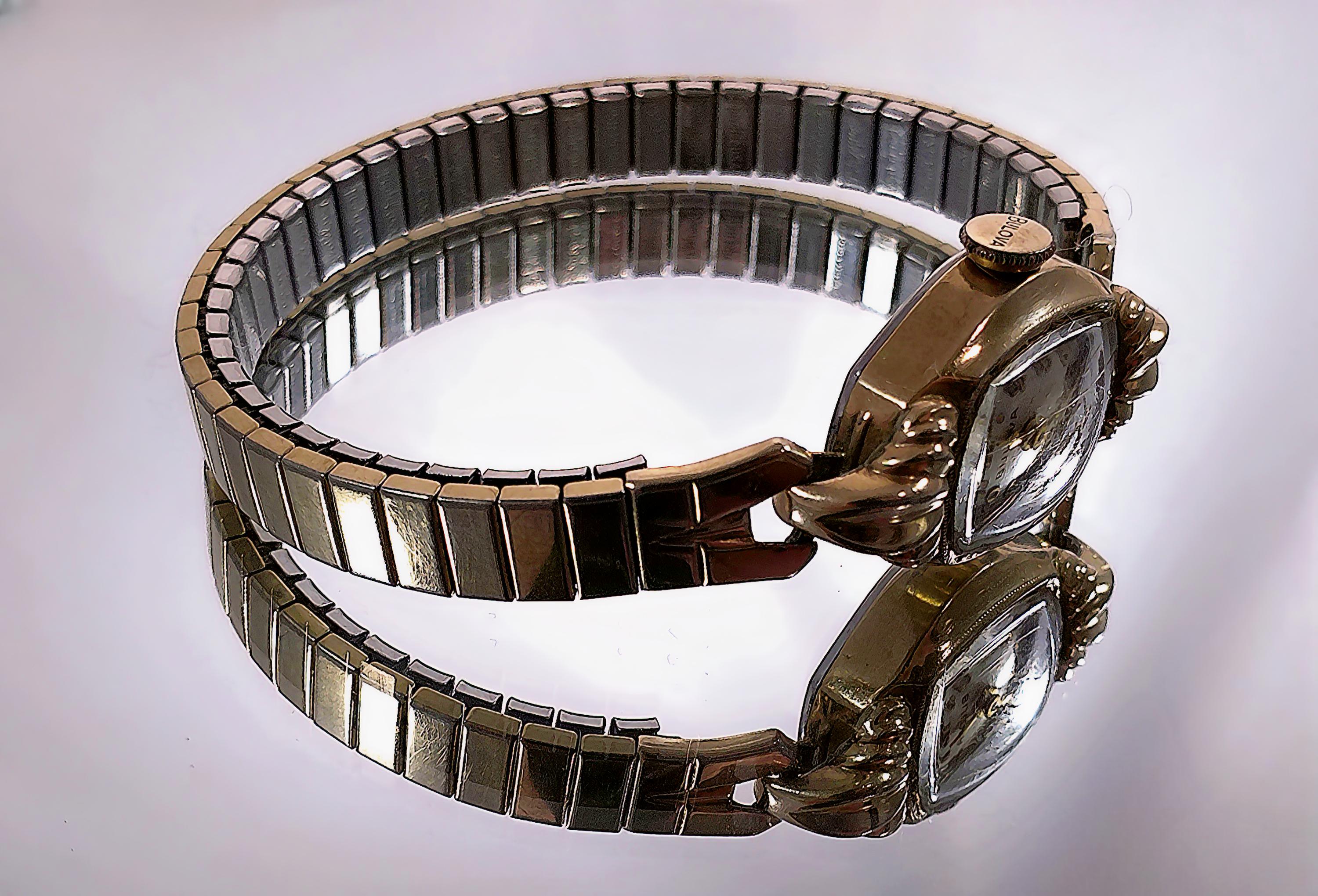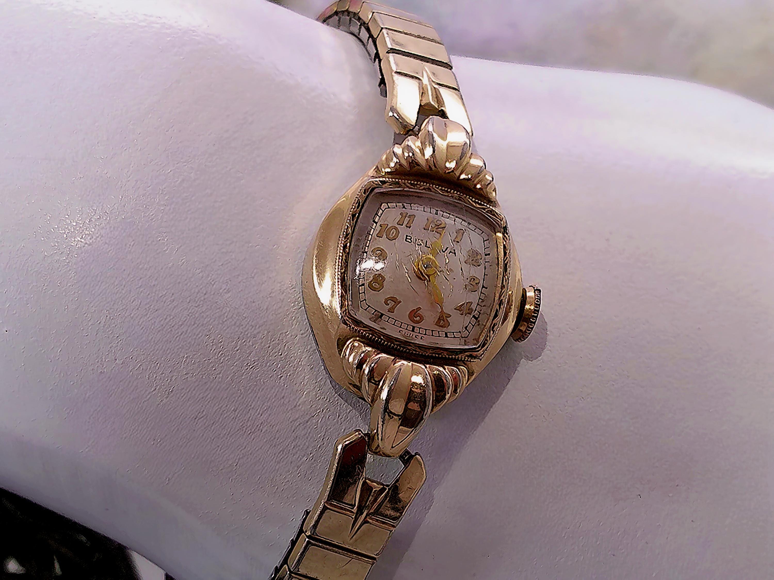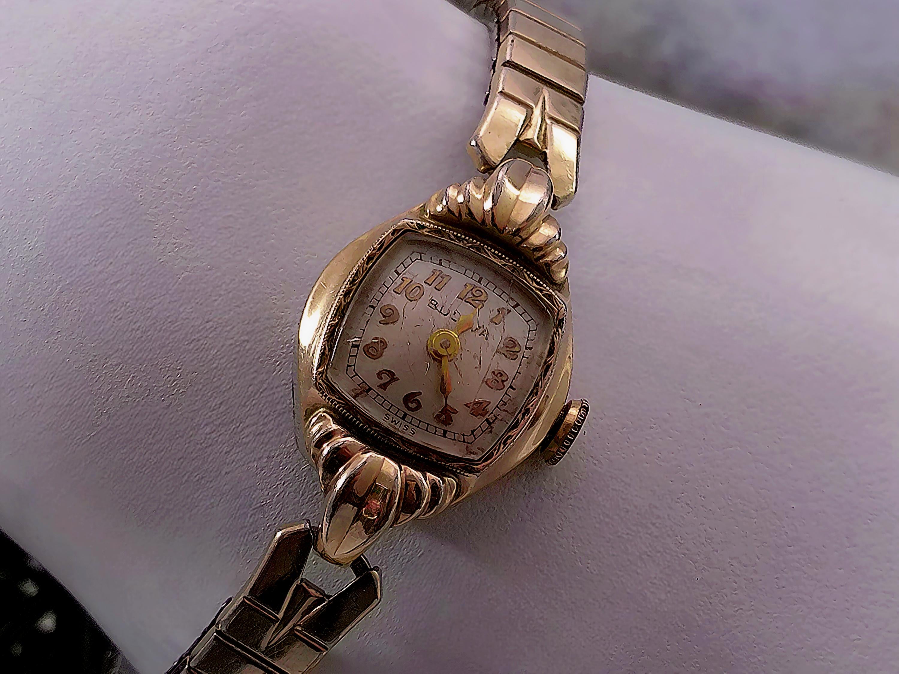 1949 Womens Wristwatch – Bulova – Miss America – 10 Kt Gold– Marquis case -Speidel Expandable Band – Swiss Wind up – Analog - Vintage