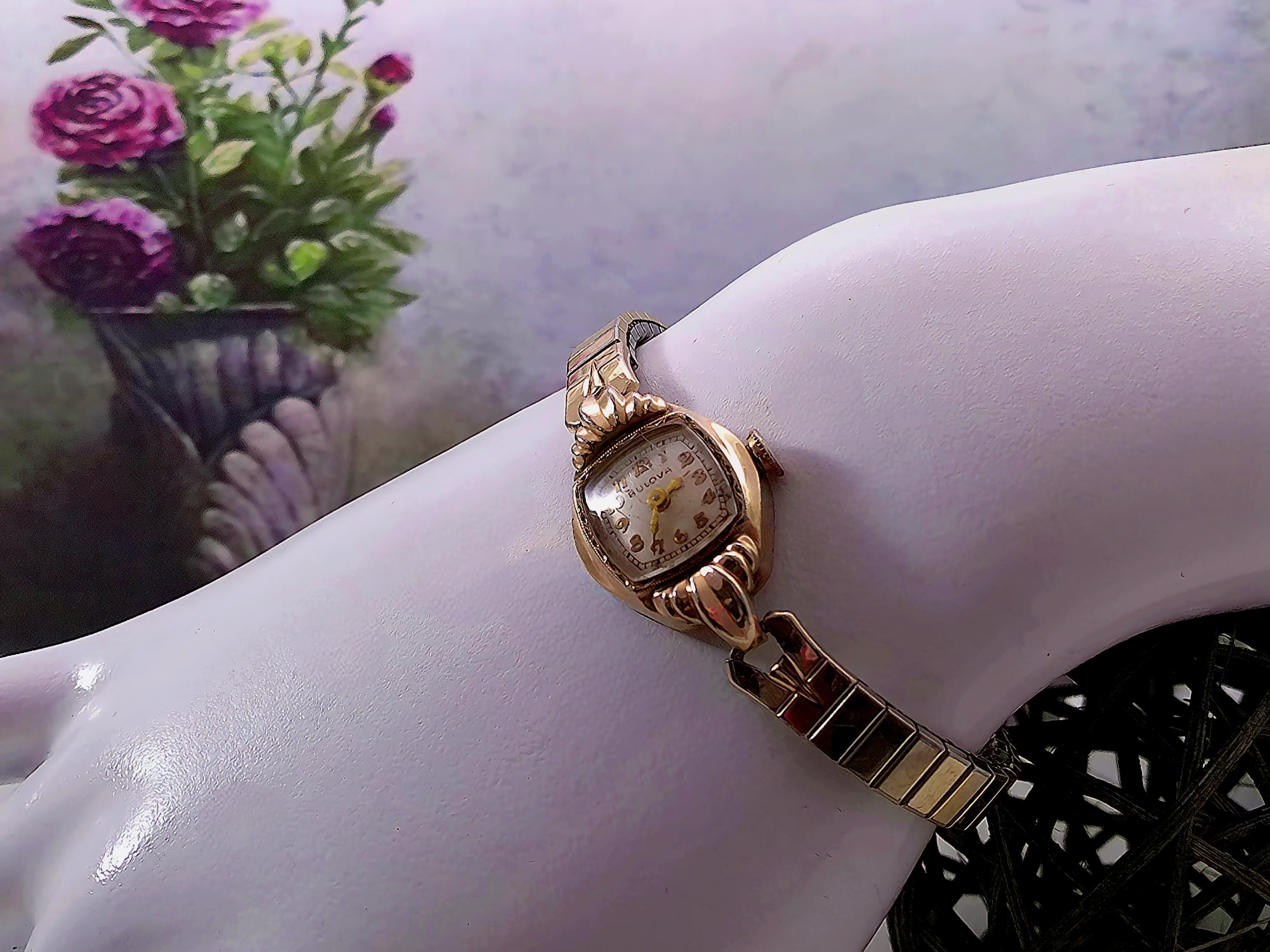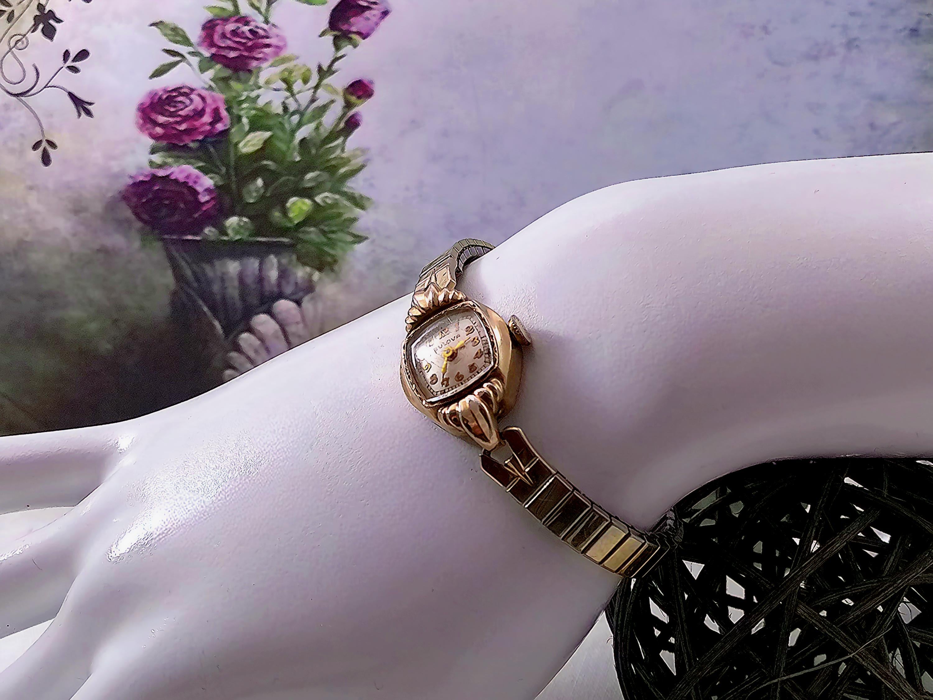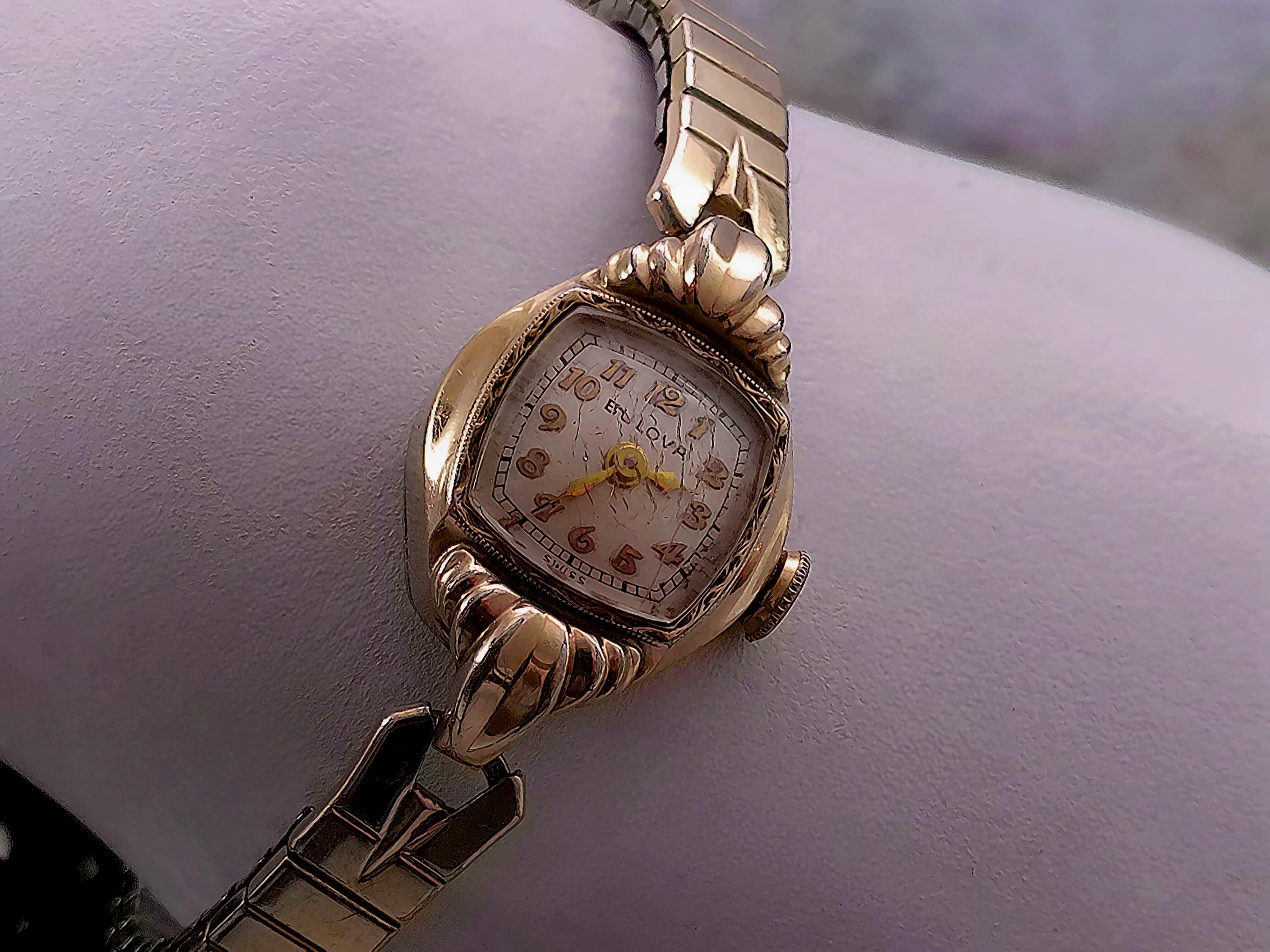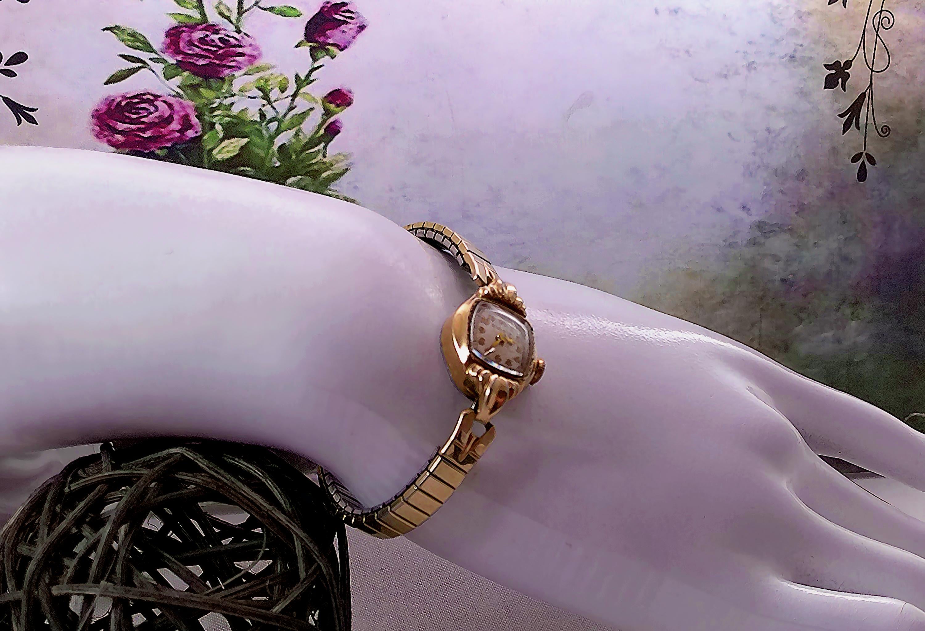 1949 Womens Wristwatch – Bulova – Miss America – 10 Kt Gold– Marquis case -Speidel Expandable Band – Swiss Wind up – Analog - Vintage