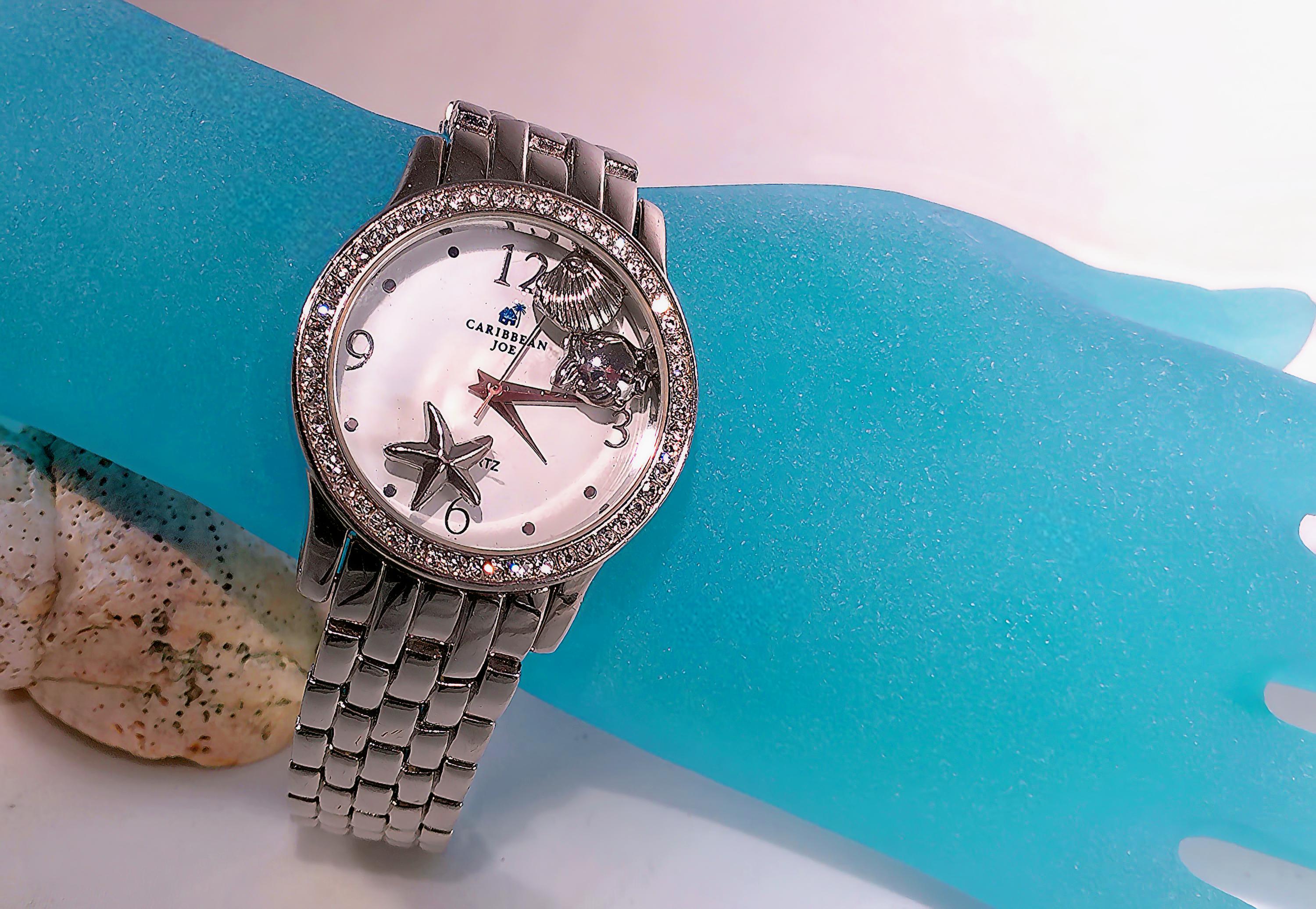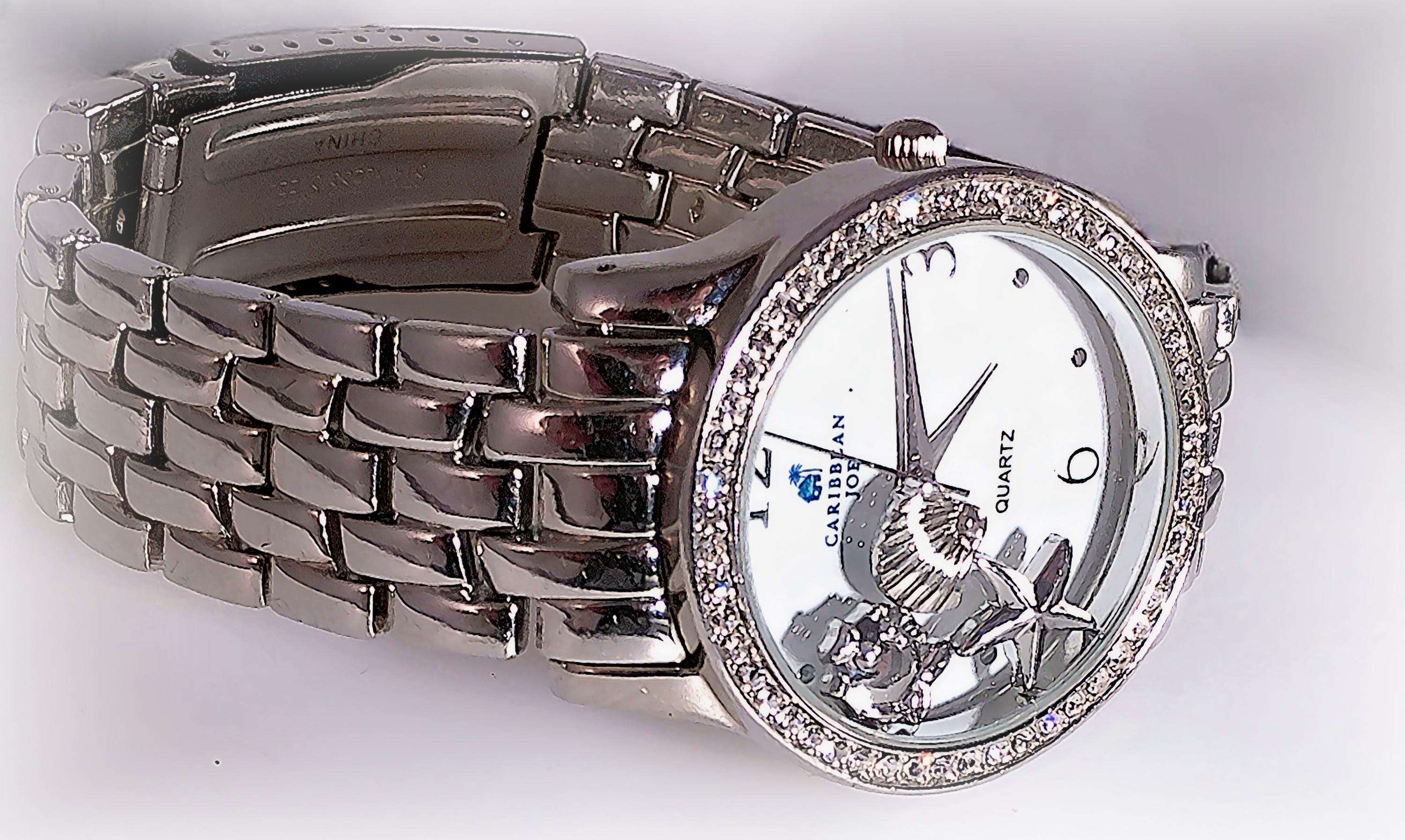 • Hallmark(s): Caribbean Joe, Quartz, CJ6008STK, Japan Movt, Base Metal Stainless Steel, Battery SR626SW, Band – Stainless Steel