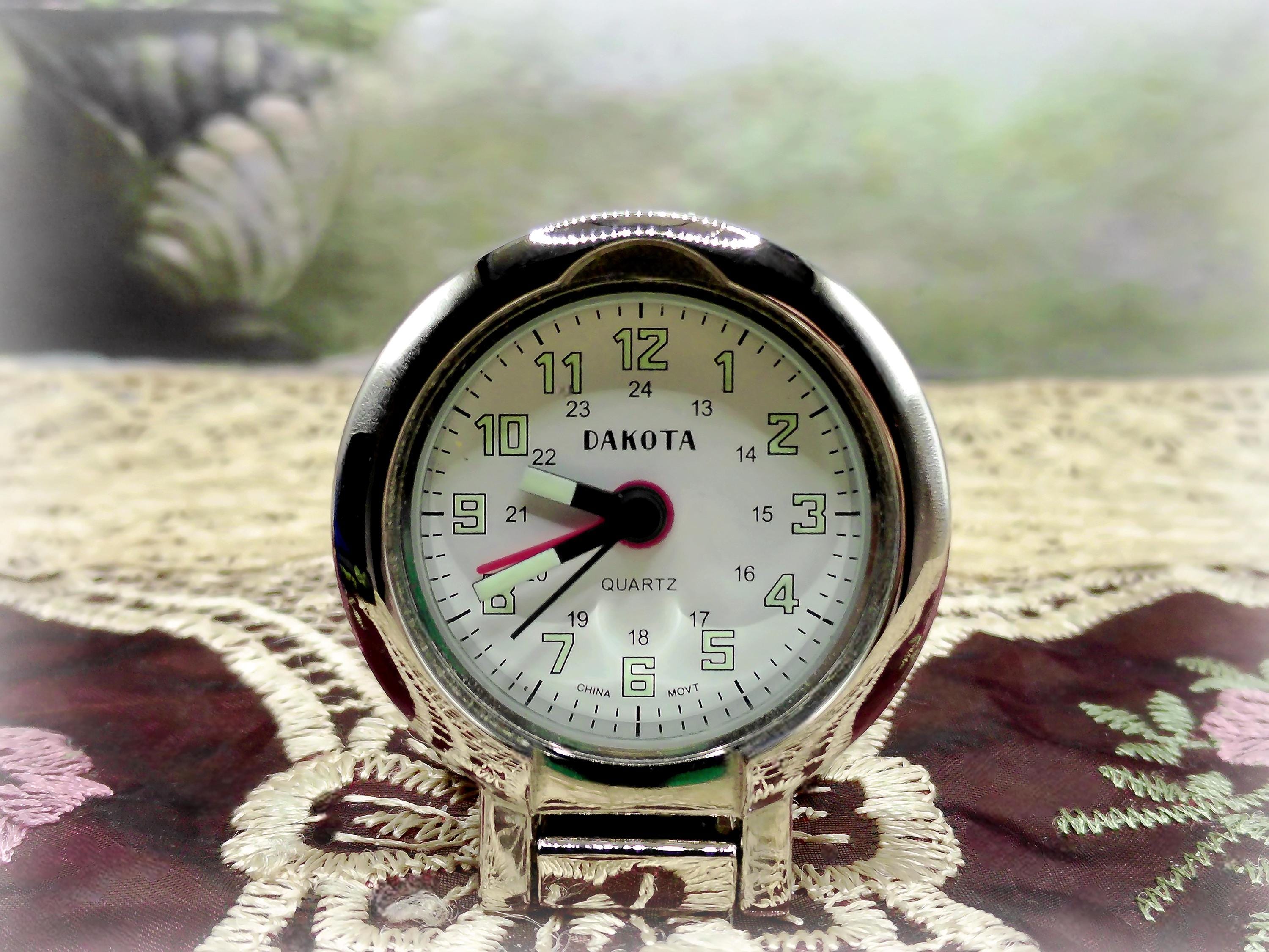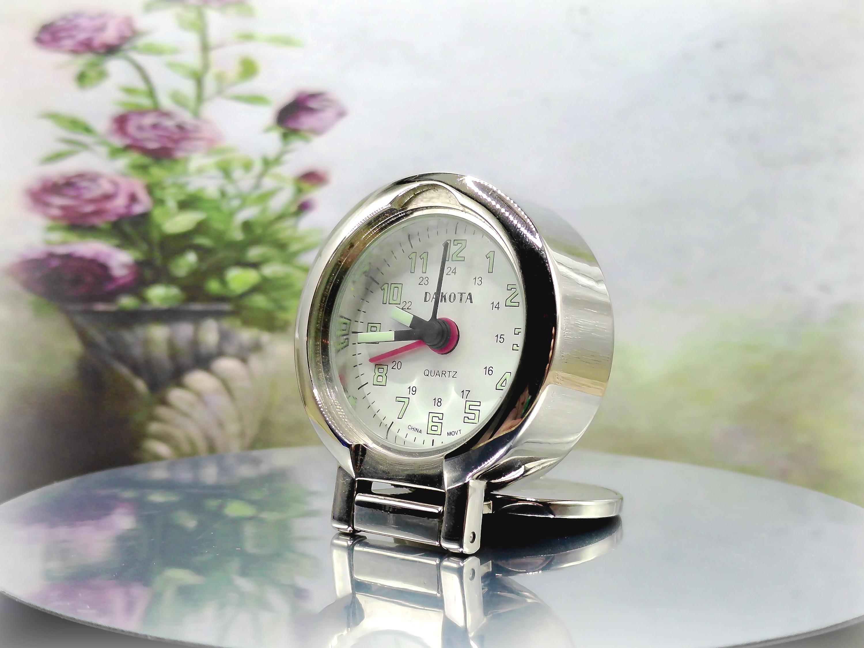 Miniature World Quartz Travel Alarm Clock – Stainless Steel DAKOTA Flip Up Alarm Clock with Black Case