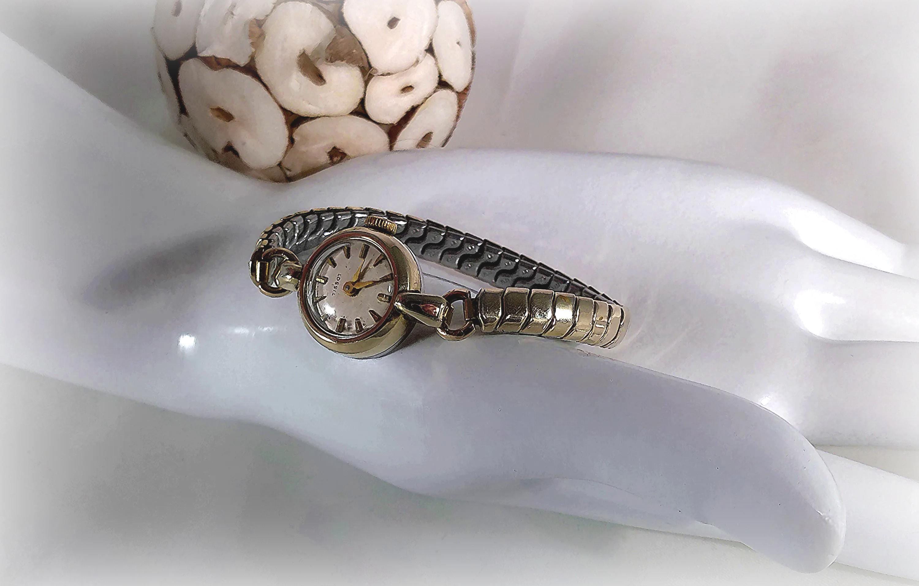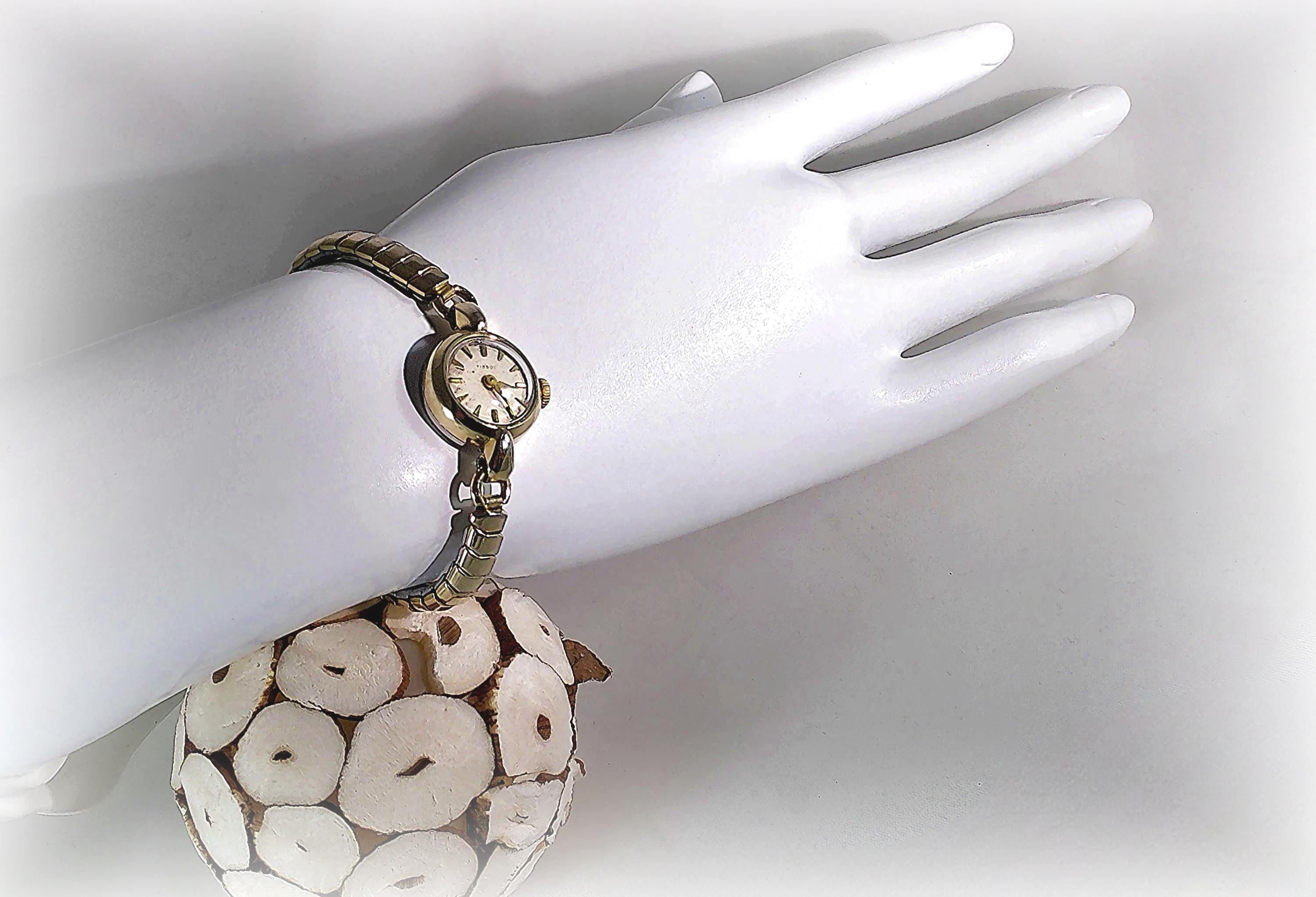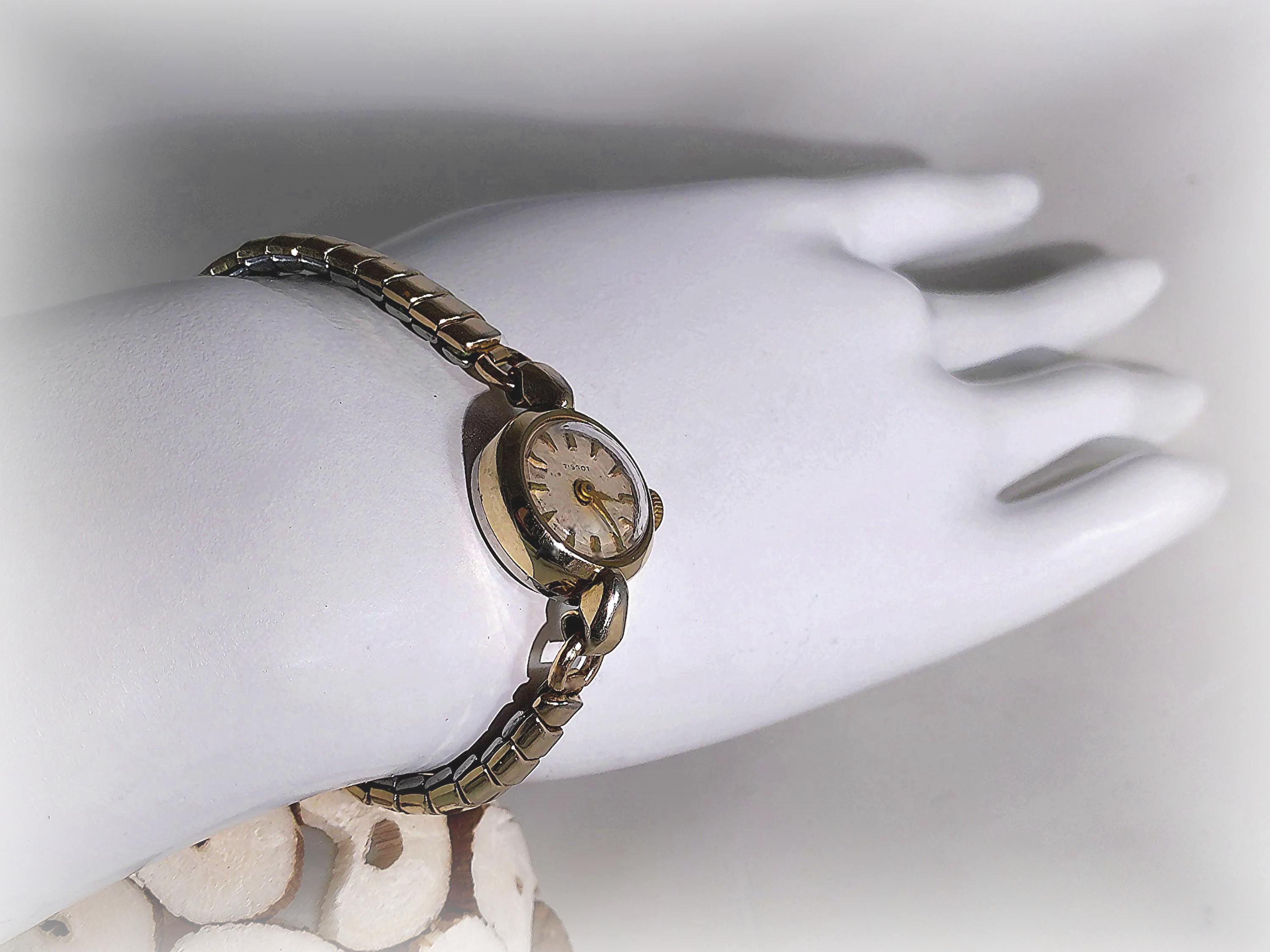 This Tissot Women’s Watch is 10 Kt Gold Filled with a 12 Kt 1/20 Gold Filled adjustable Flex-Let band. It is an incredible find in a minimalist style that resonates to an early Victorian era, that was resurrected by the manufacturer in the 1960’s. As a watch maker in the Swiss mountains since 1853, Tissot vintage watches are often sought after by collectors who respect their quality, craftsmanship, and innovative watch crafting history.
