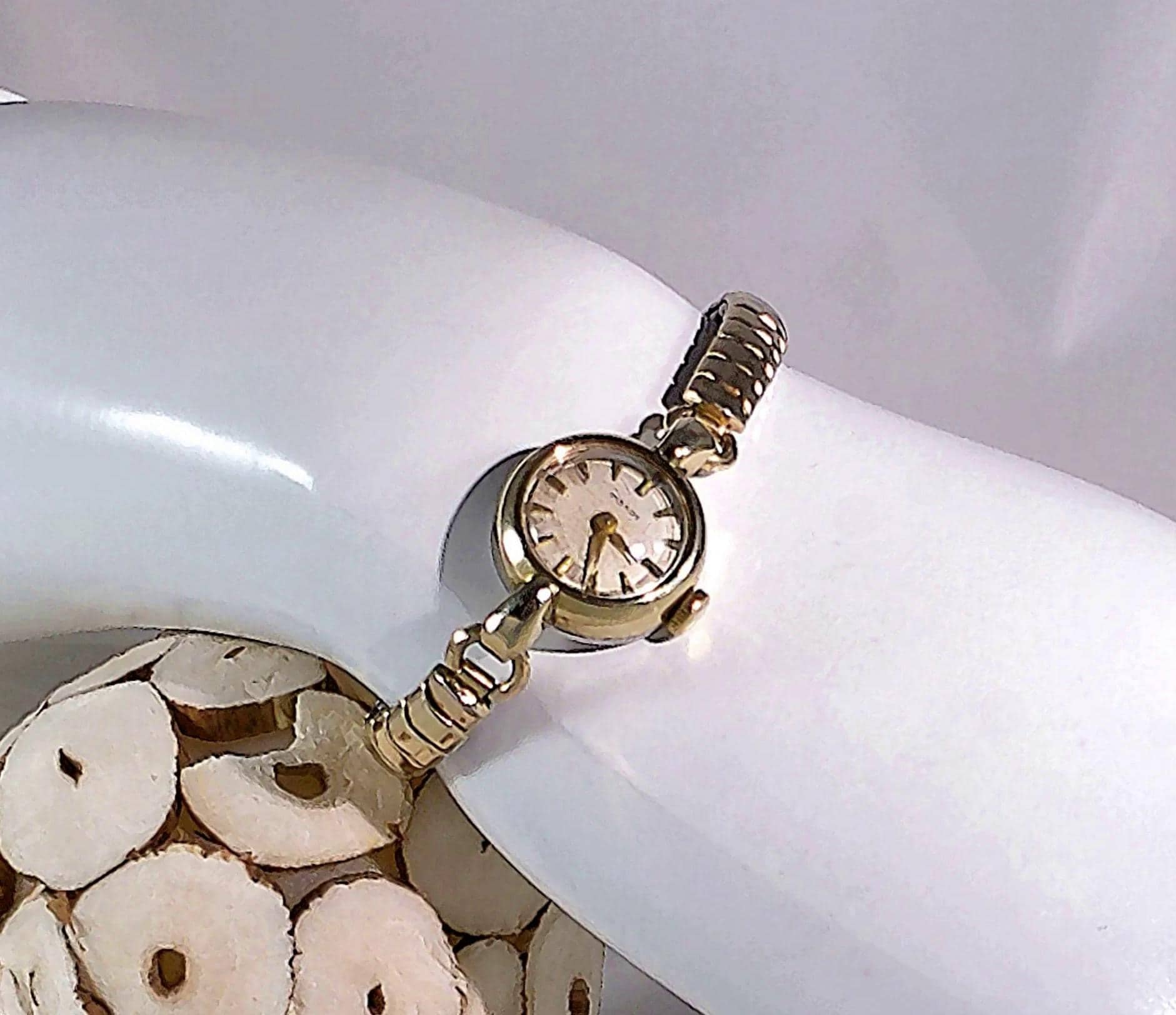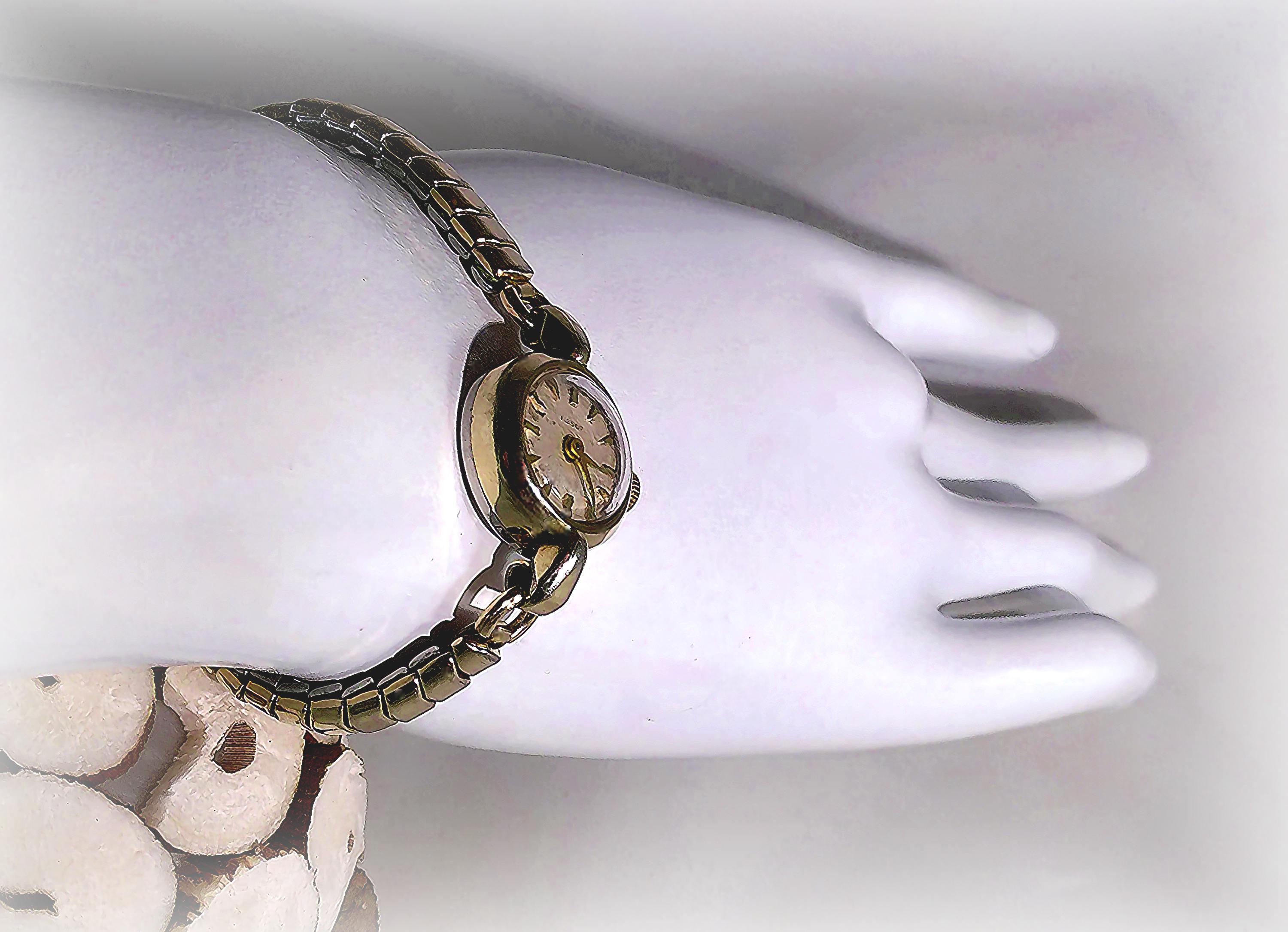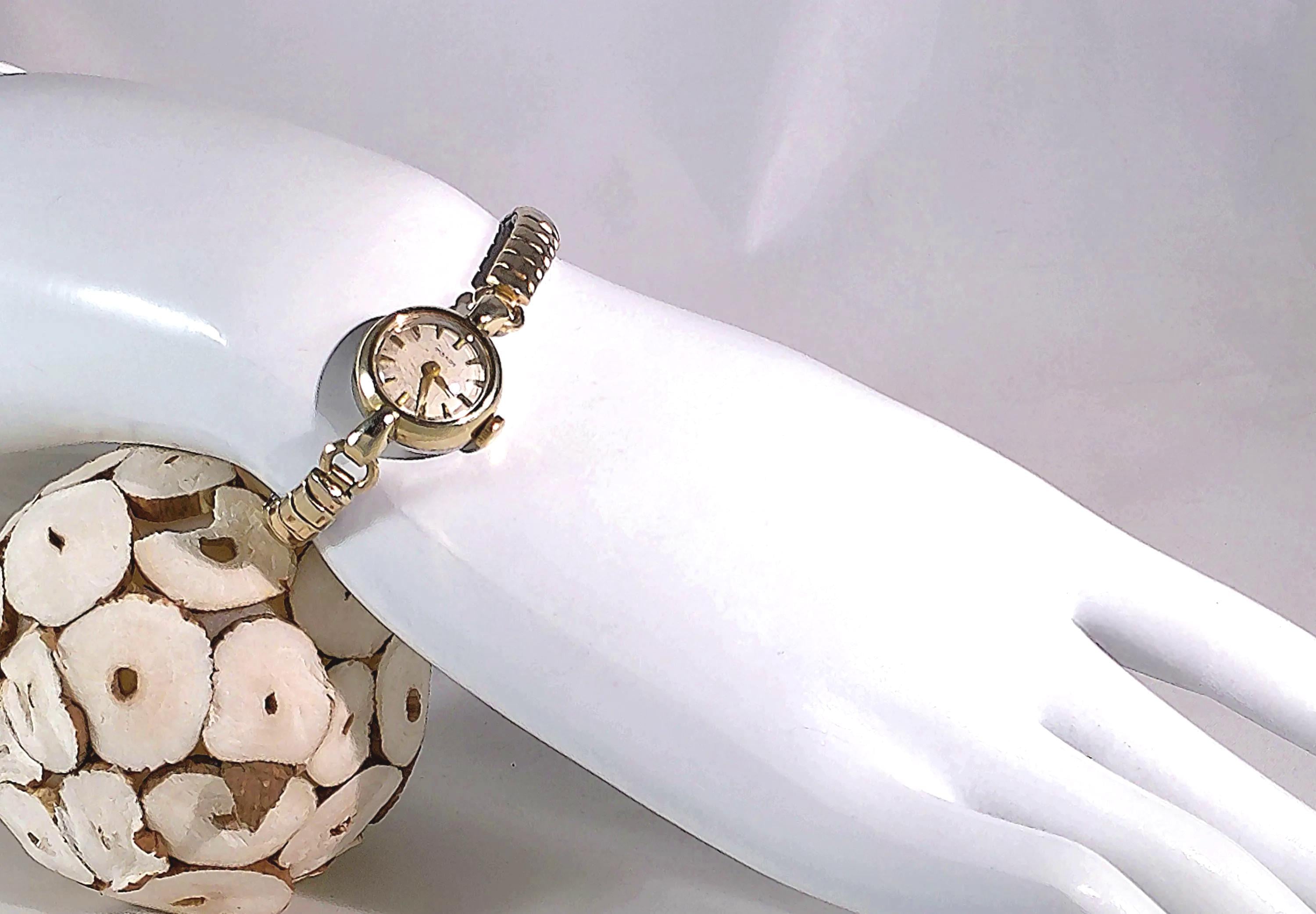 This Tissot Women’s Watch is 10 Kt Gold Filled with a 12 Kt 1/20 Gold Filled adjustable Flex-Let band. It is an incredible find in a minimalist style that resonates to an early Victorian era, that was resurrected by the manufacturer in the 1960’s. As a watch maker in the Swiss mountains since 1853, Tissot vintage watches are often sought after by collectors who respect their quality, craftsmanship, and innovative watch crafting history.