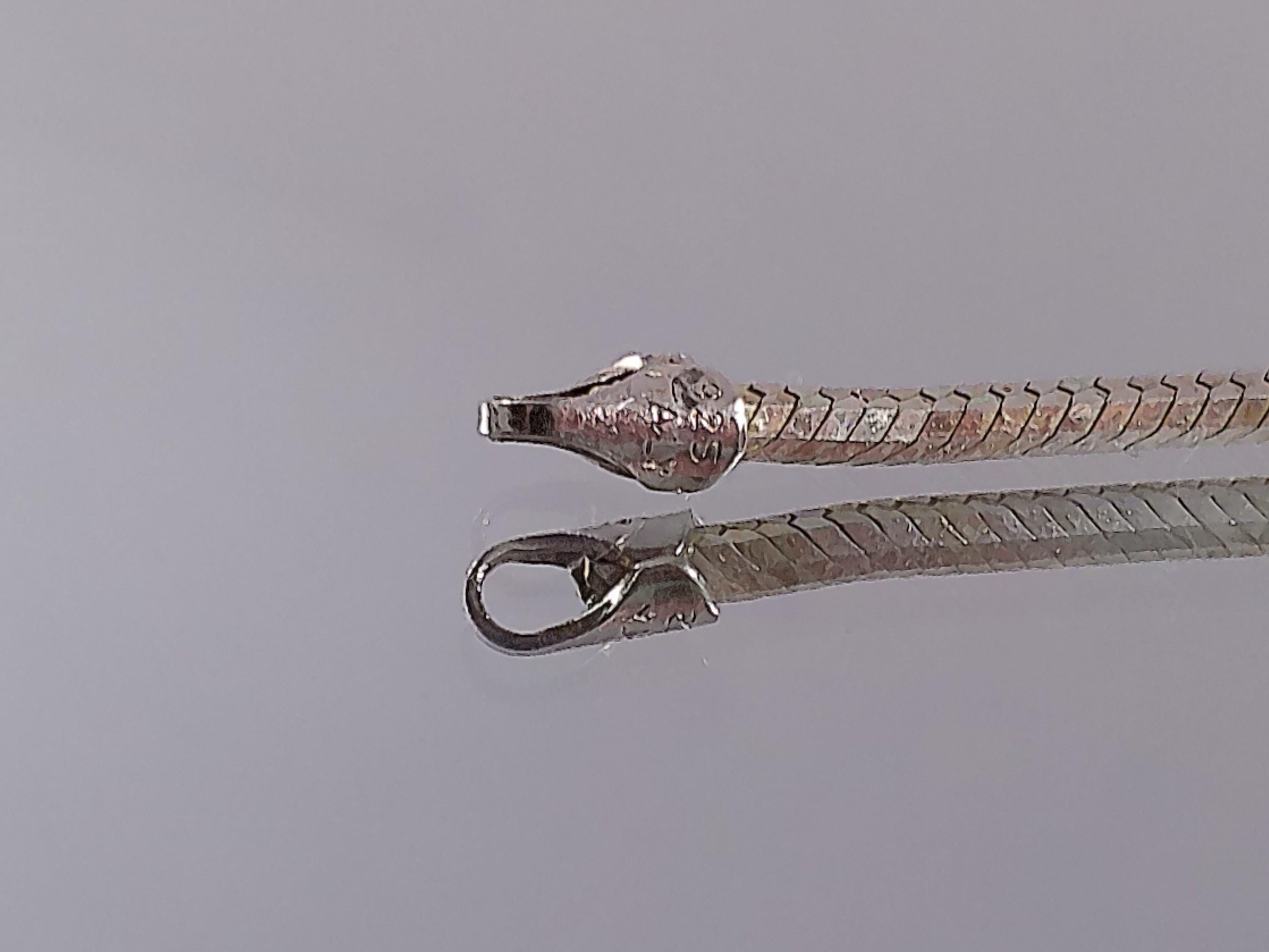 A beautiful shimmering Silver Snake Chain Necklace, by the early works of Silpada with 925 Sterling Silver is obtained and crafted in Italy. With glittering simplicity is the statement of beauty that is being sought, or you may wish to slip on the perfect pendant of your choosing. This Snake Chain has the versatility of everyday wear or the perfect complement to something very special.