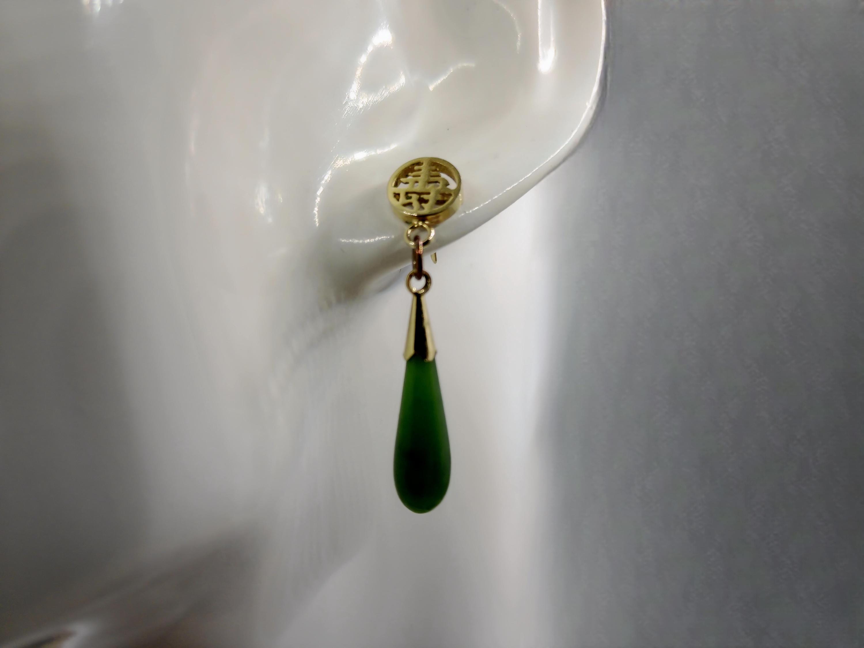 • Set consists of one beaded necklace, one convertible brooch with chain, one pair of dangle pierced earrings that are made for pierced ears and one beautiful jade bracelet