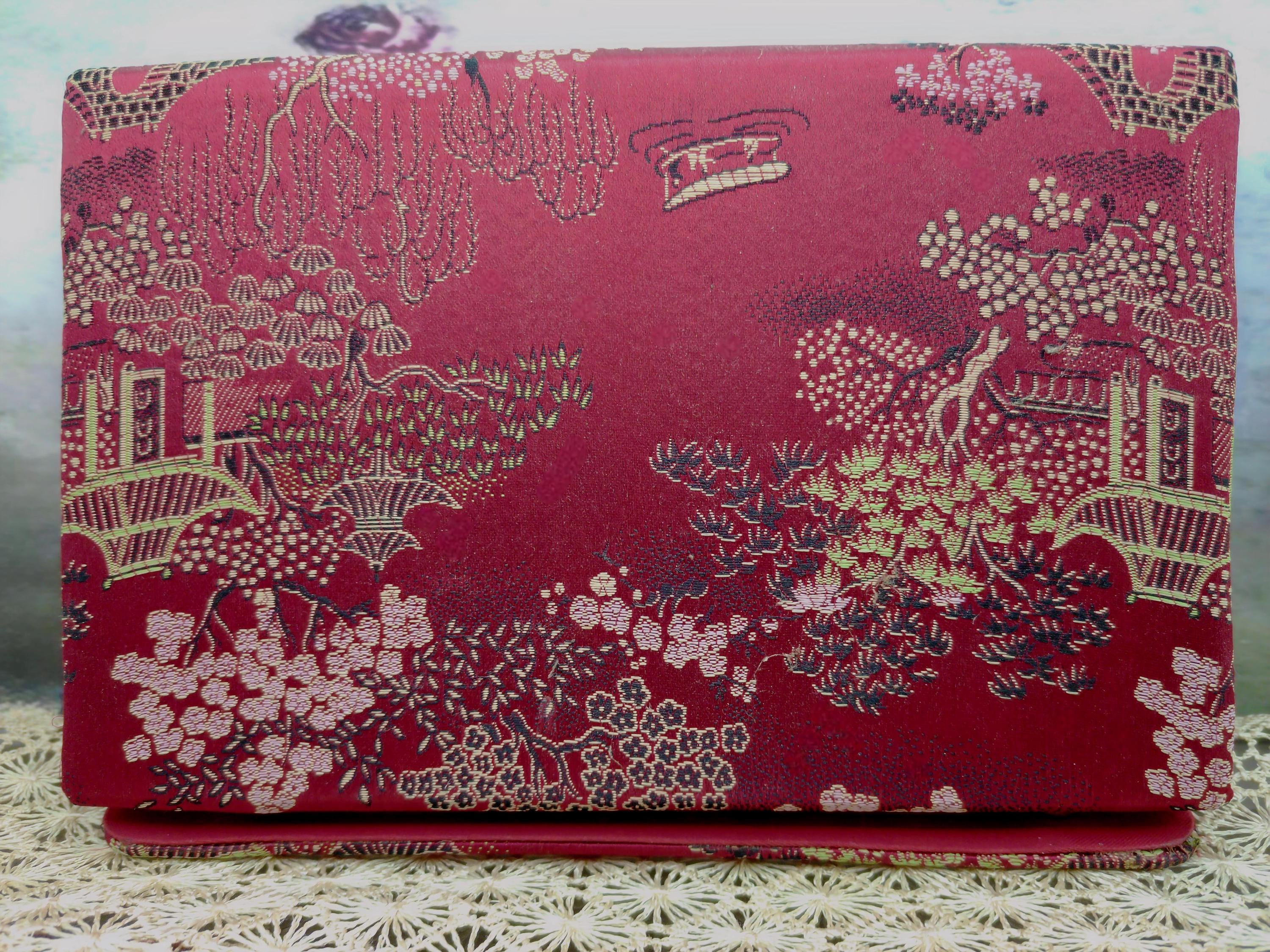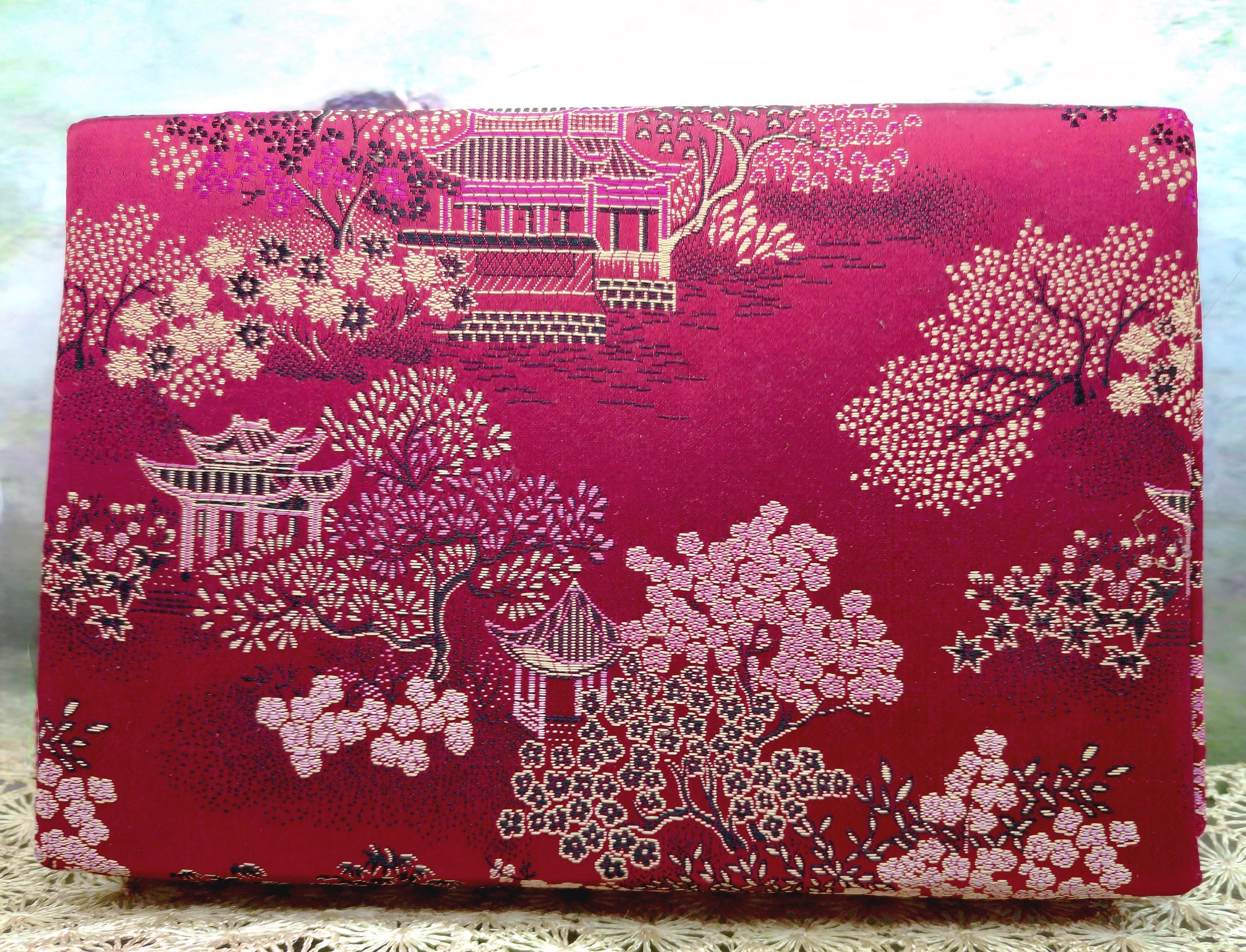 • Silk Brocade Case measures 7.5 inches from west to east and 5.25 inches from north to south and depth is 1.25 inches