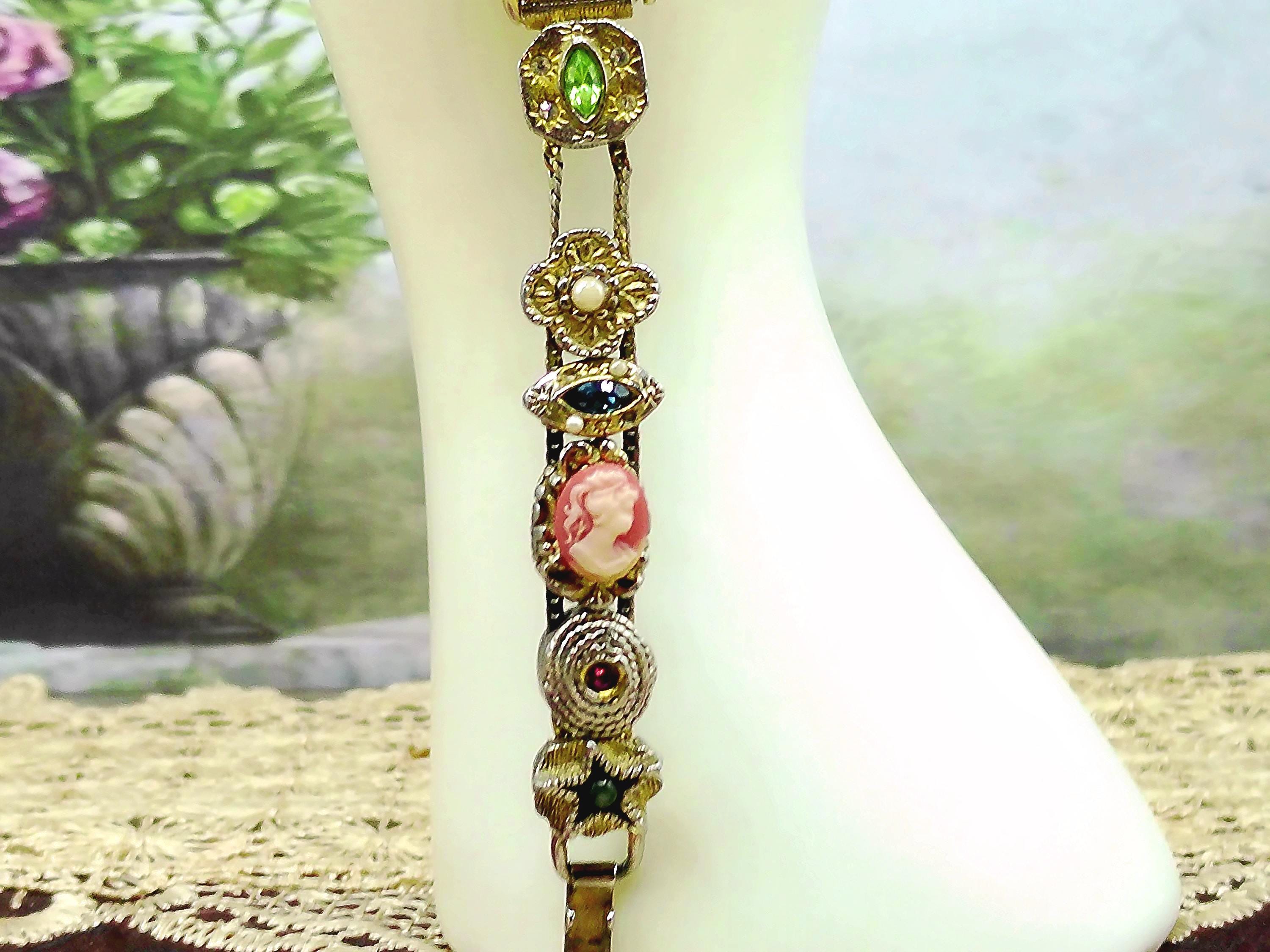 Victorian Style Alexis Ashley Cameo Slider Charm Wrist Watch with Two Uranium Gemstones