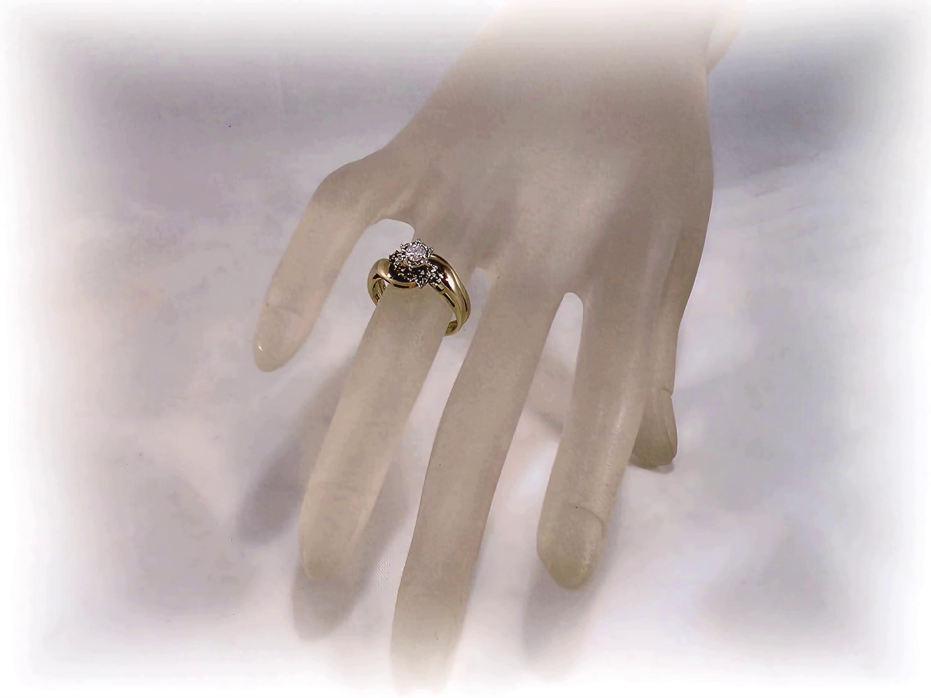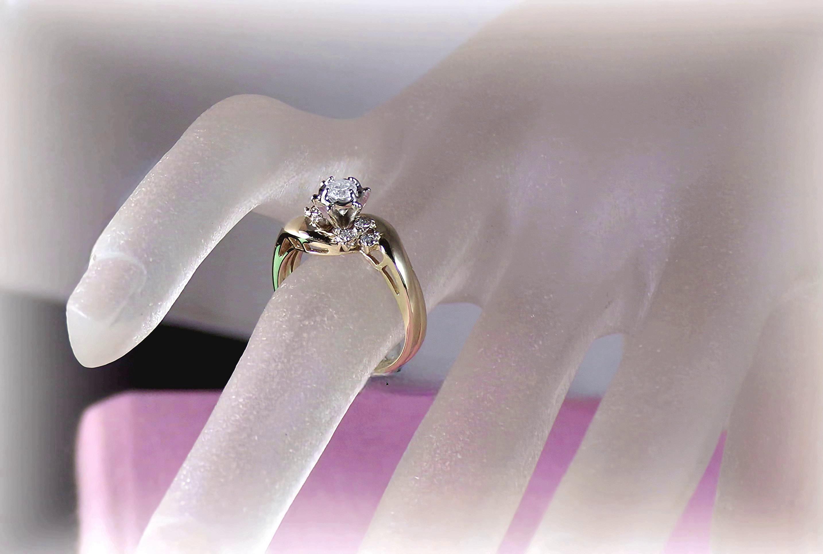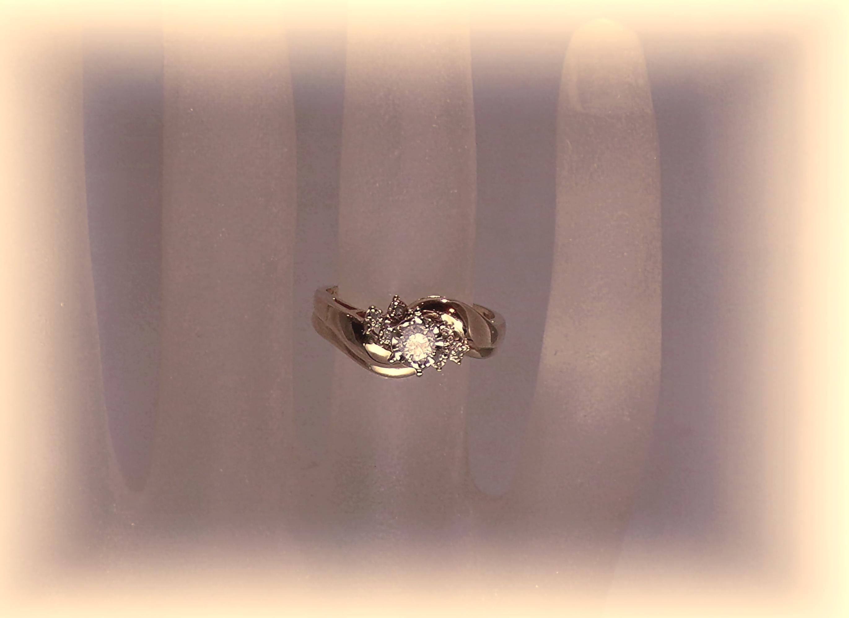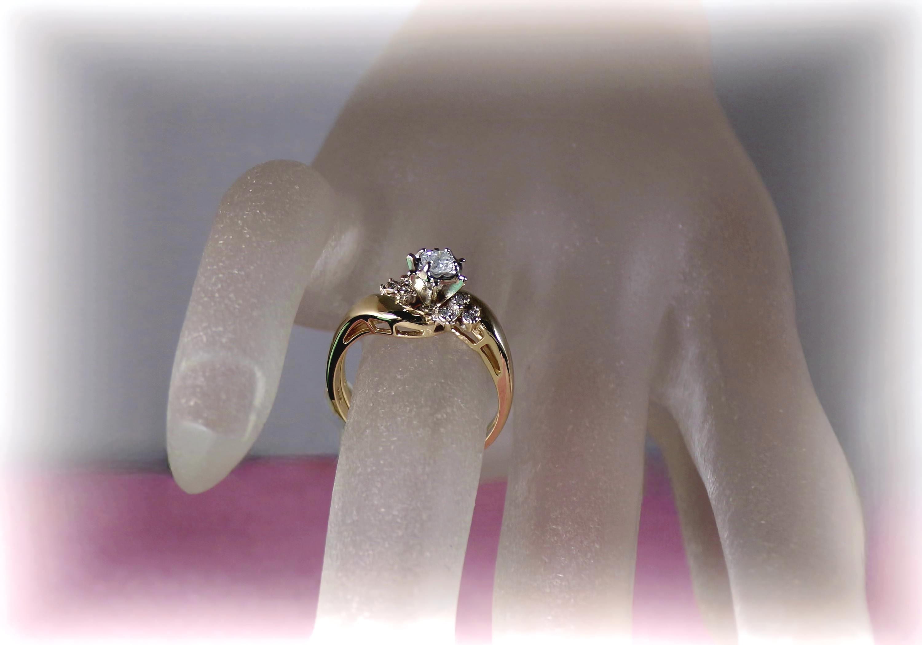 Vintage Bridal Ring Set – Seven Genuine Diamond Engagement Ring with Contour Wedding Band – 10 Kt Gold