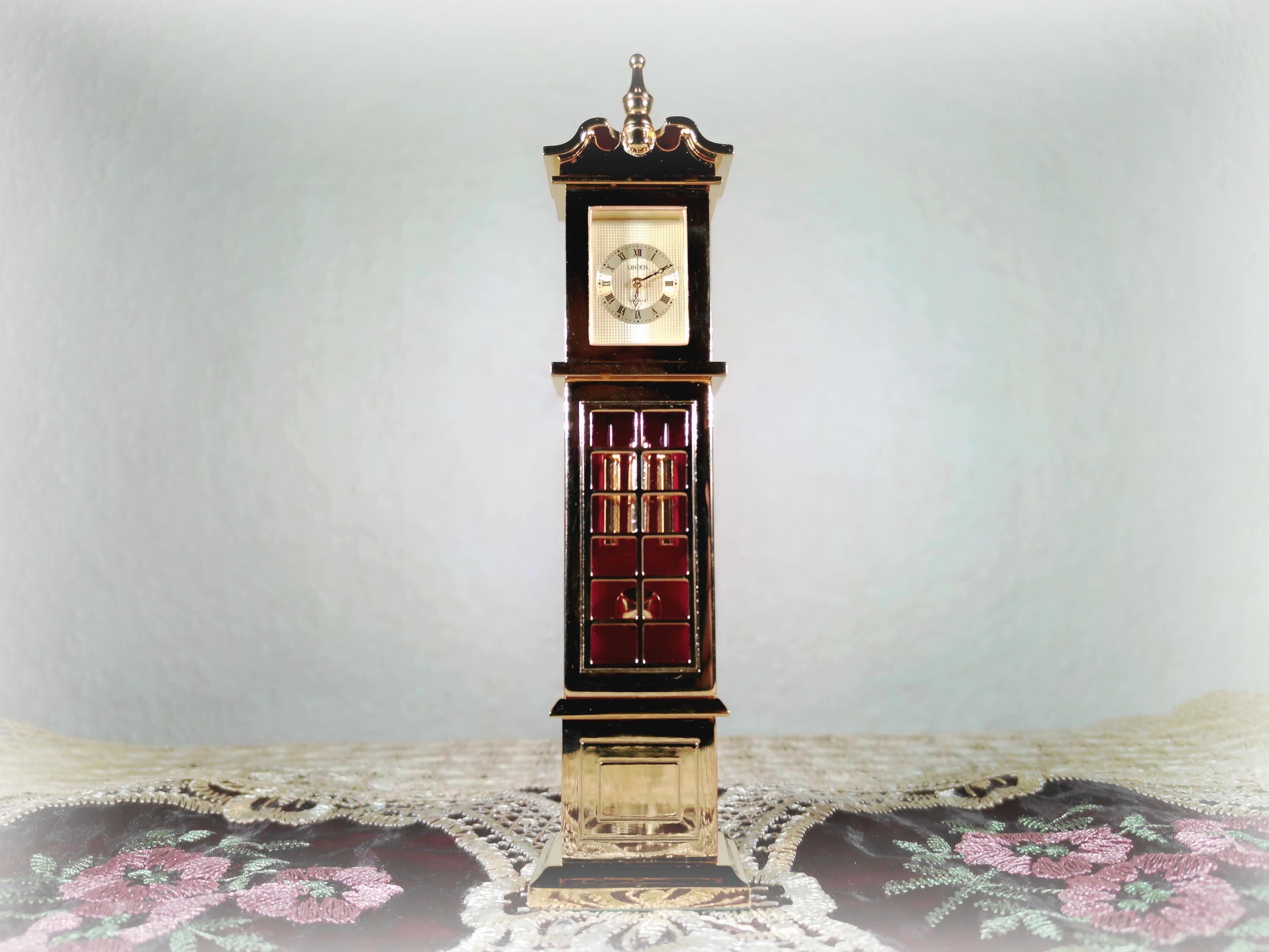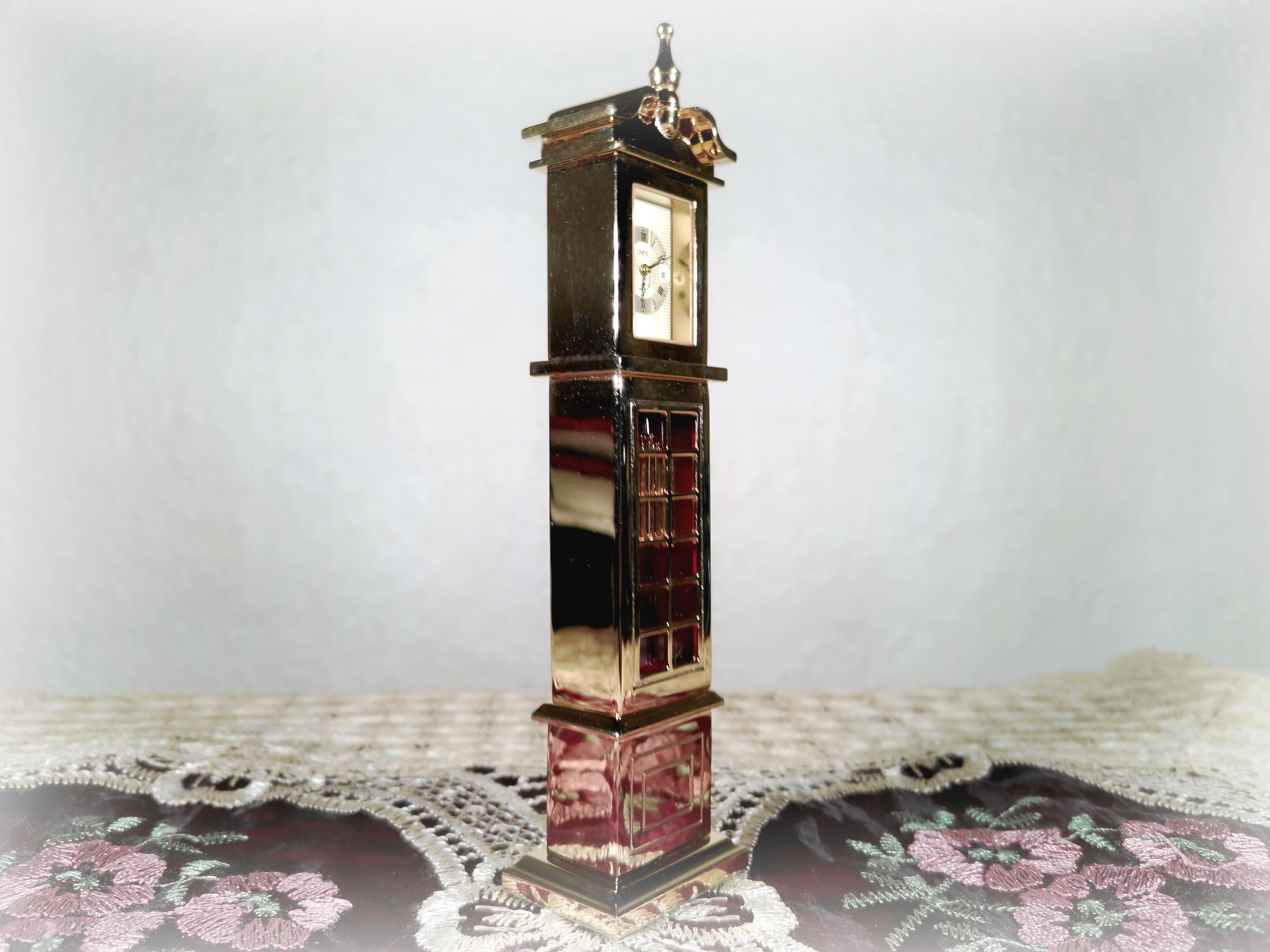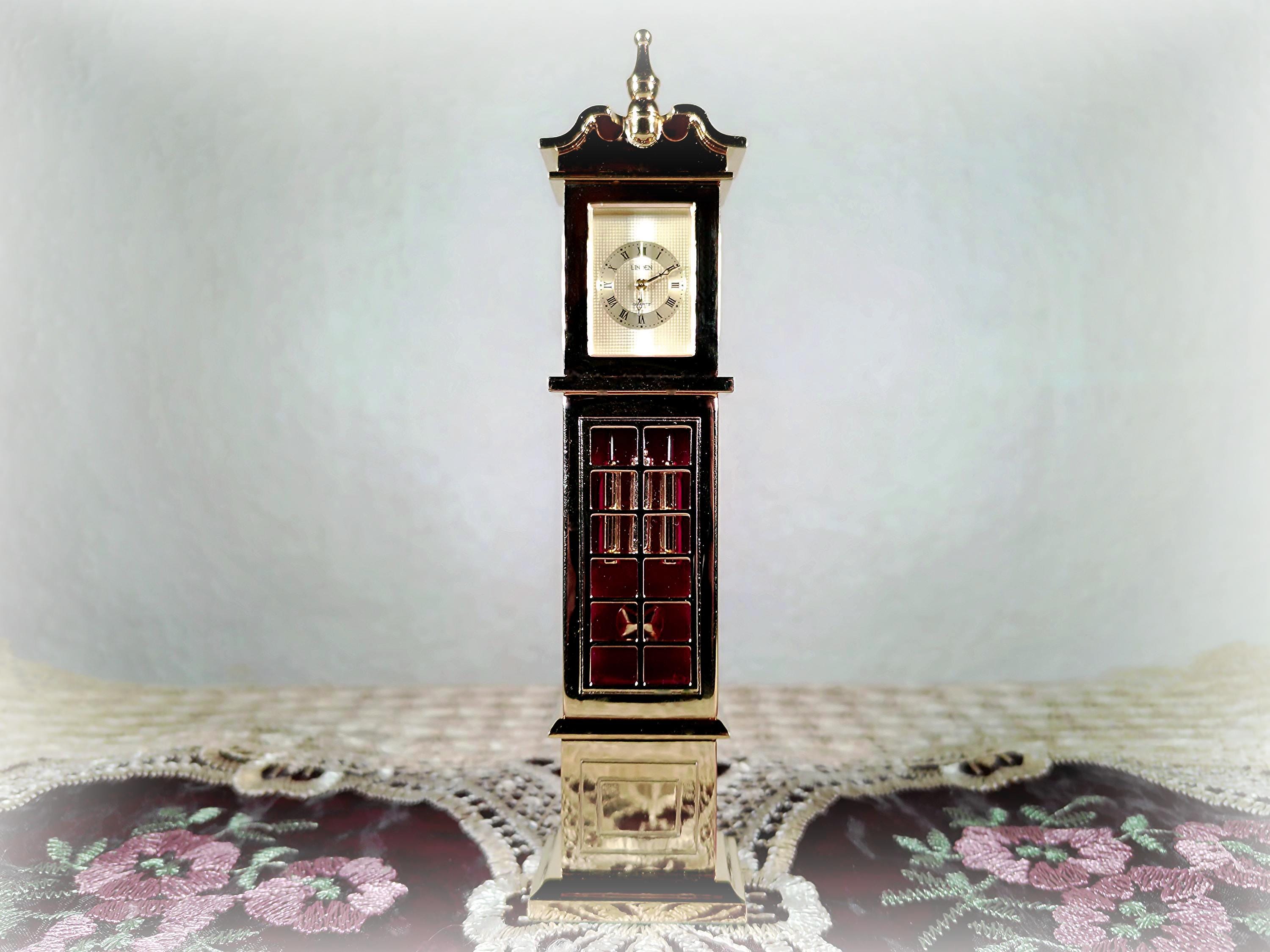 Miniature Clock – Linden West German Brass Grandfather Clock – Quartz Clock – Vintage Desk Clock (NOS)