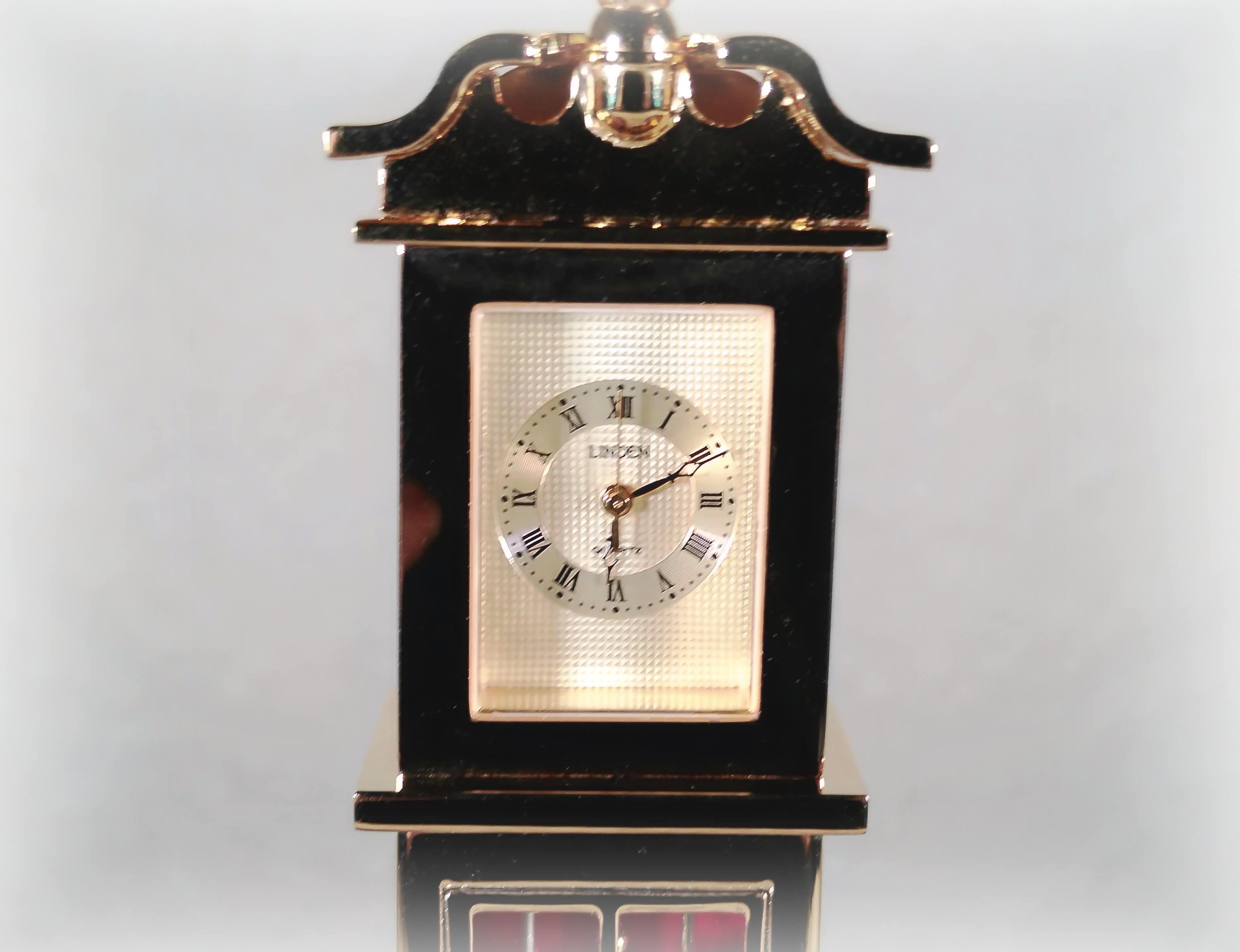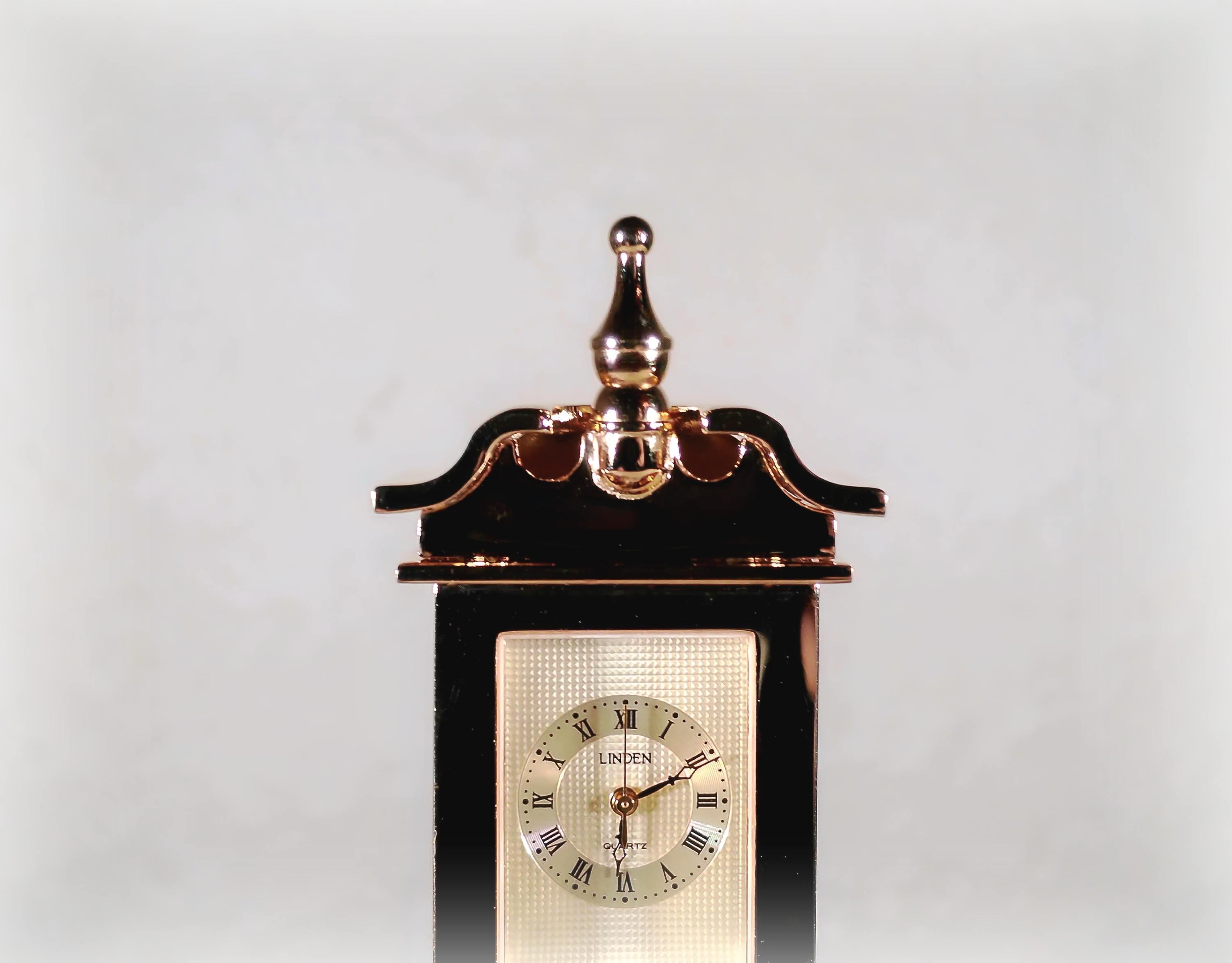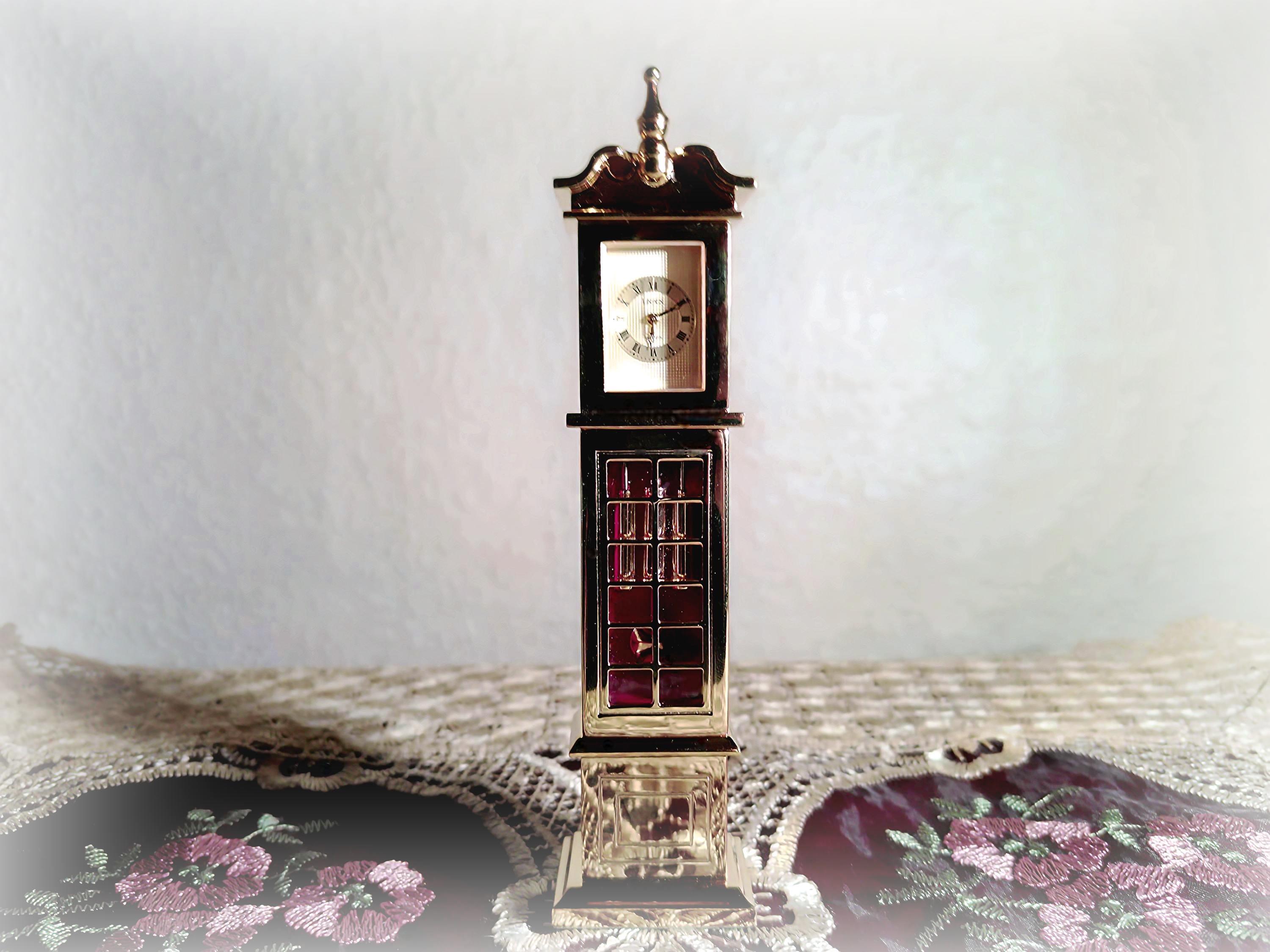 Miniature Clock – Linden West German Brass Grandfather Clock – Quartz Clock – Vintage Desk Clock (NOS)