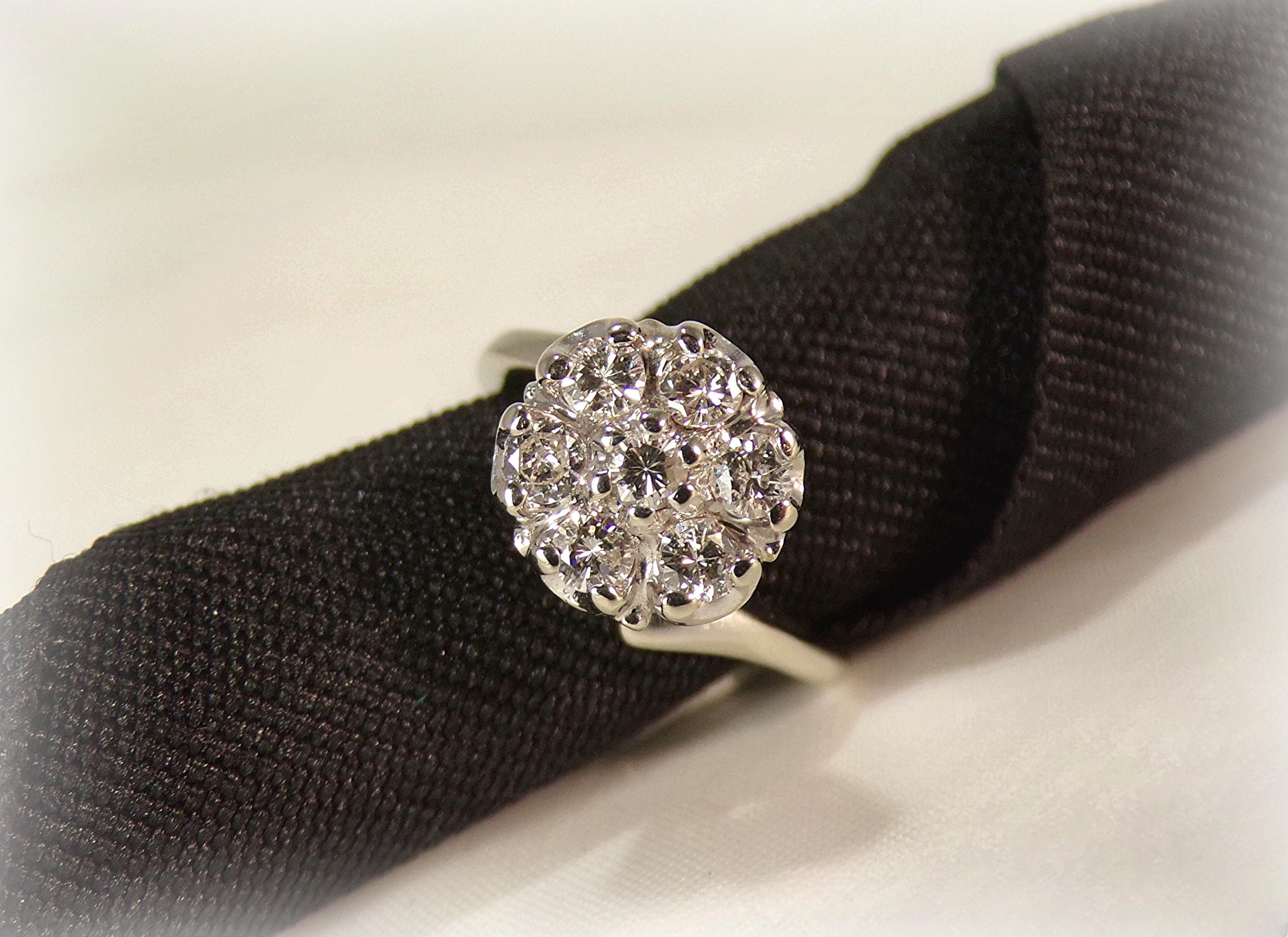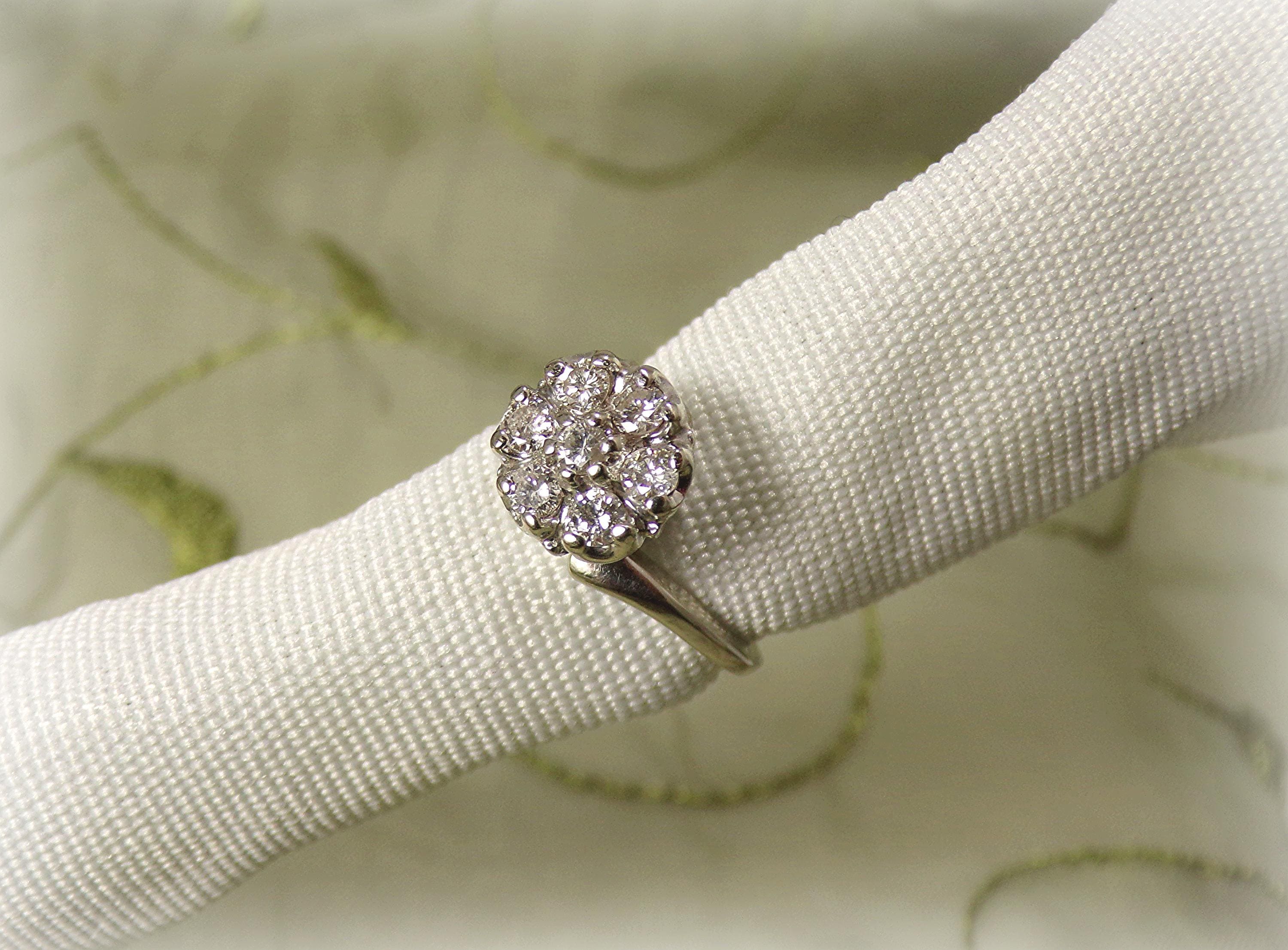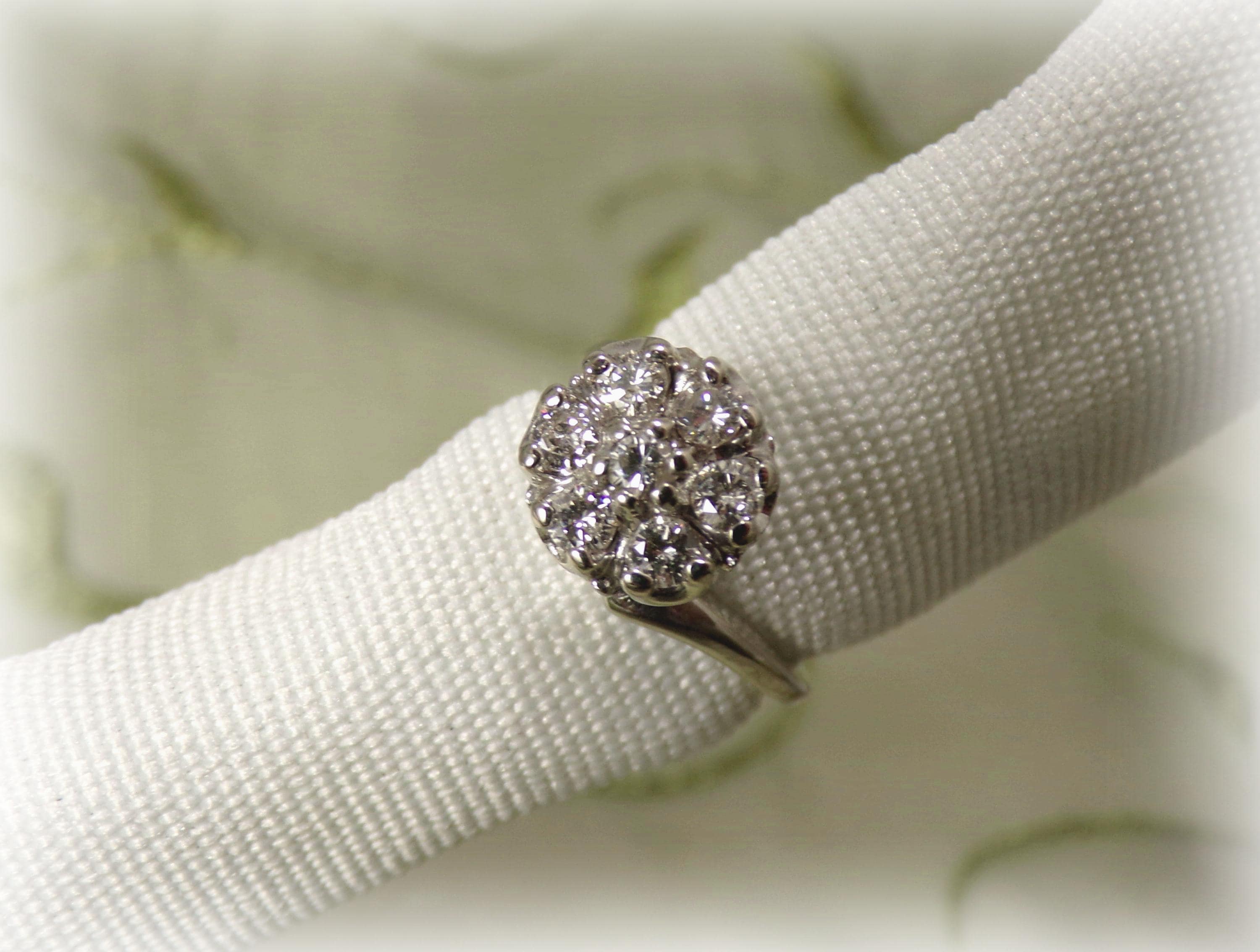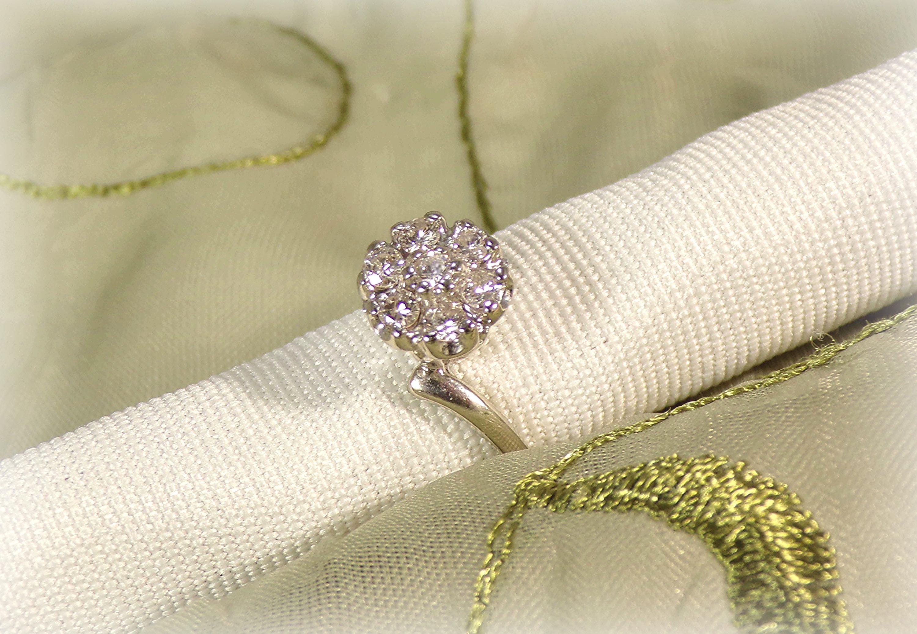 Engagement Ring – Genuine Diamond Flower Cluster Mounting – 14 KT White Gold - Vintage