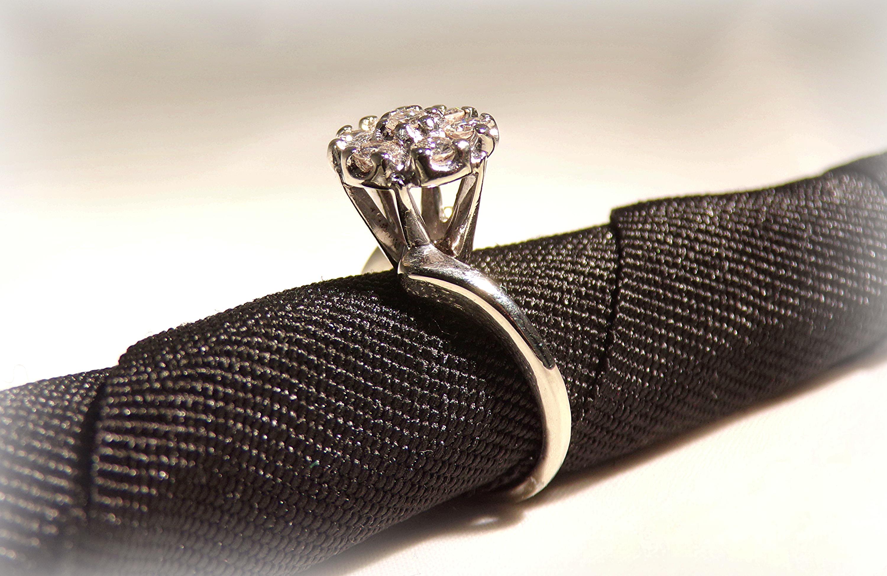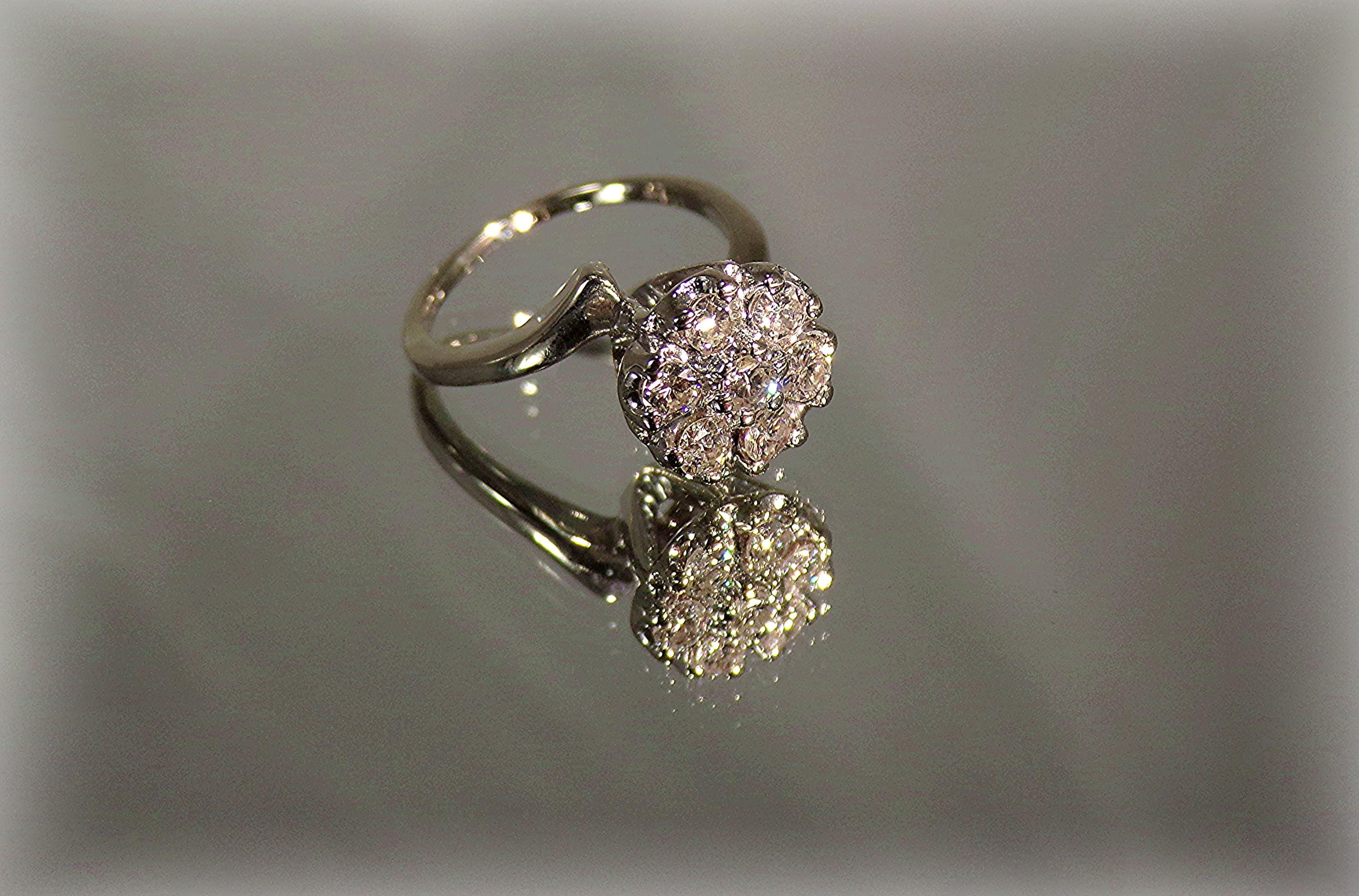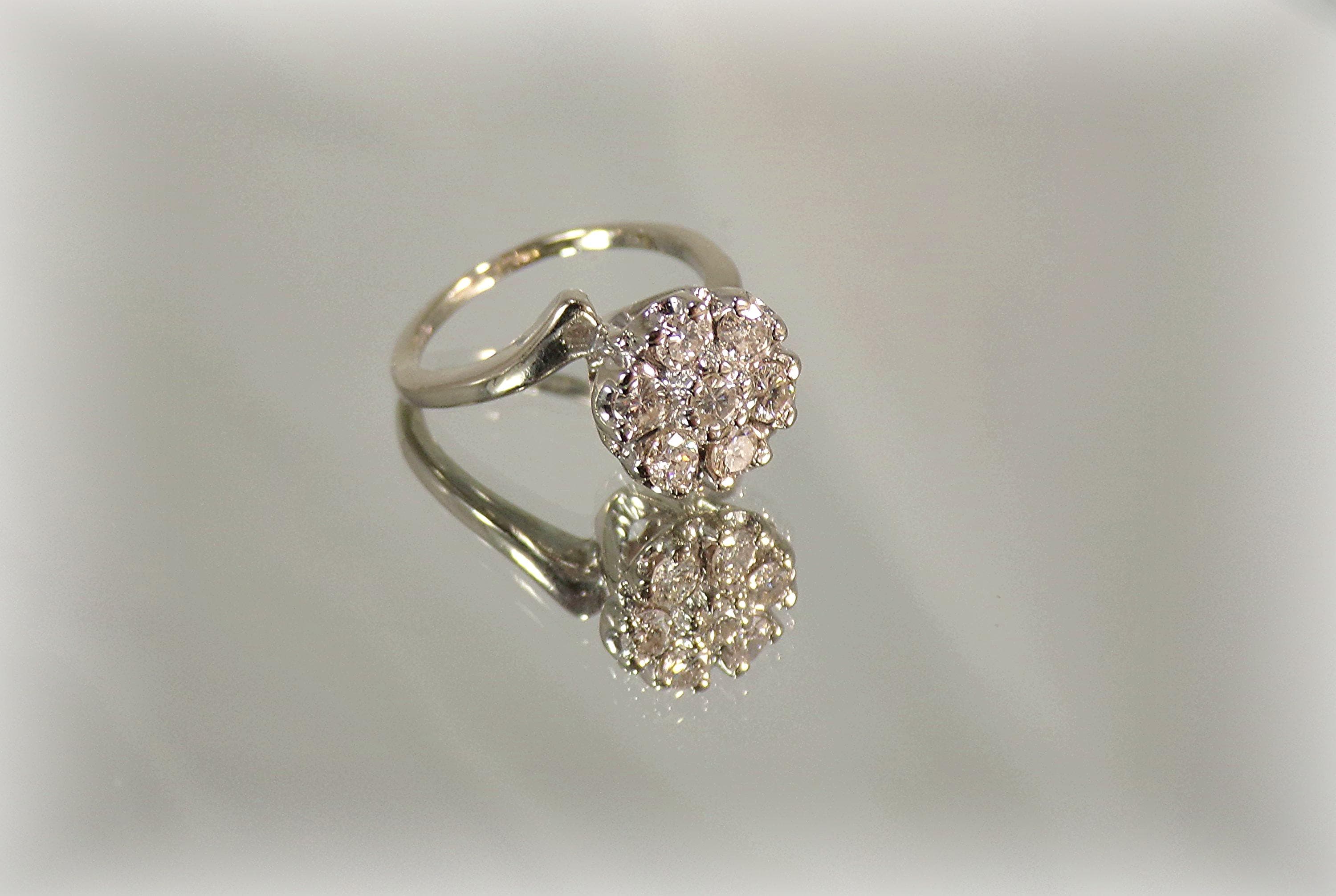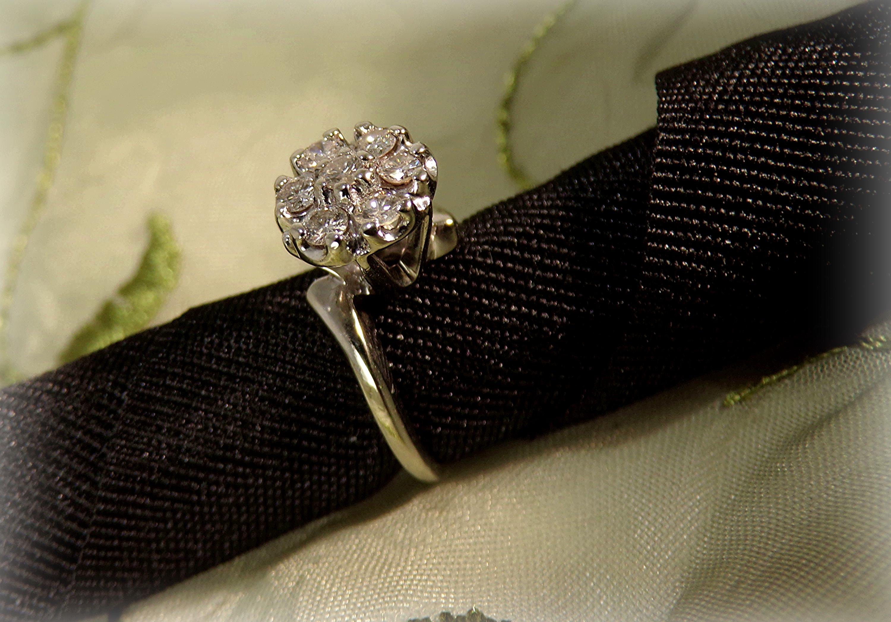Engagement Ring – Genuine Diamond Flower Cluster Mounting – 14 KT White Gold - Vintage