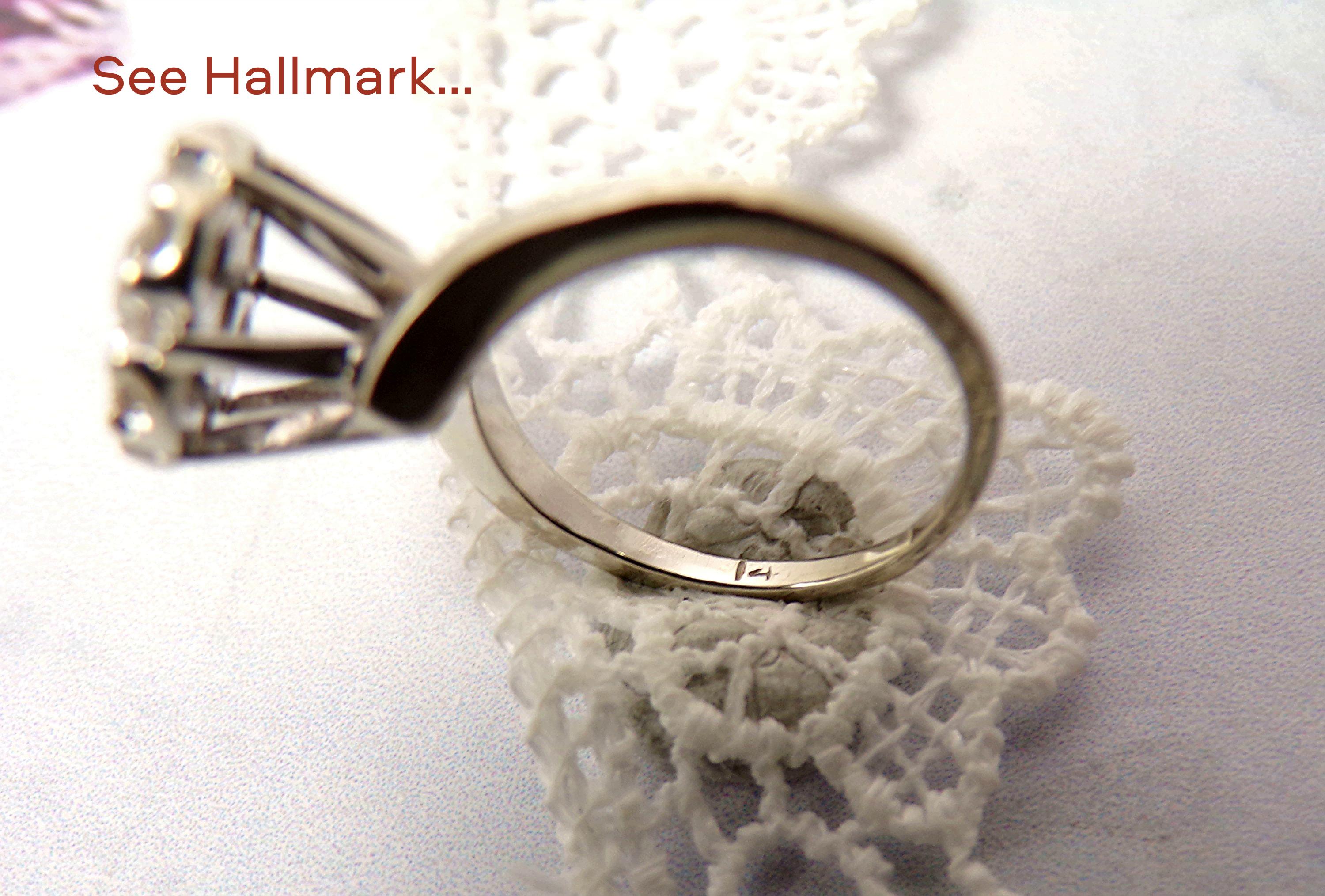 • Hallmark(s): 14 (the "K" is worn off of the band; testing confirms that the ring is 14K white gold)