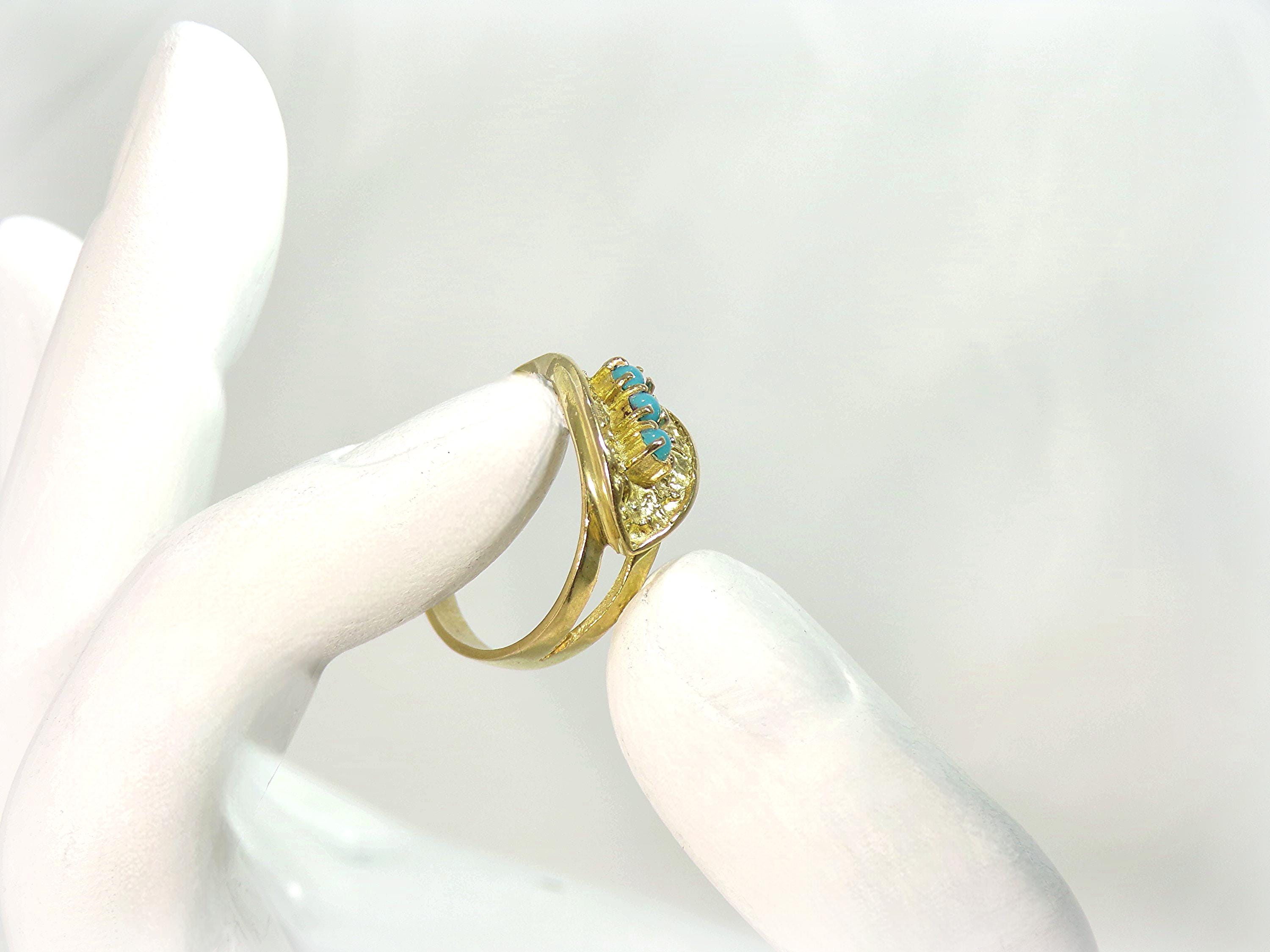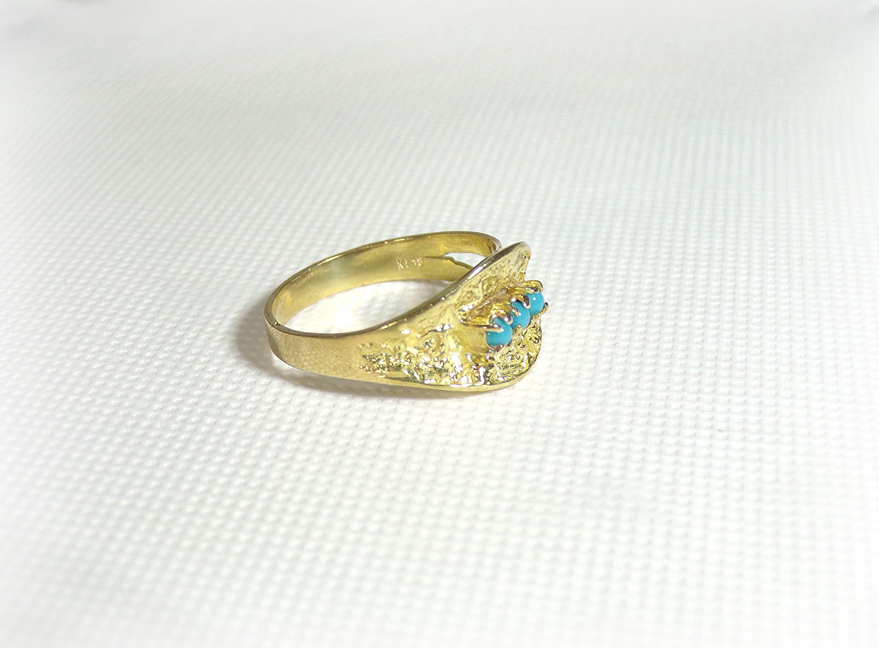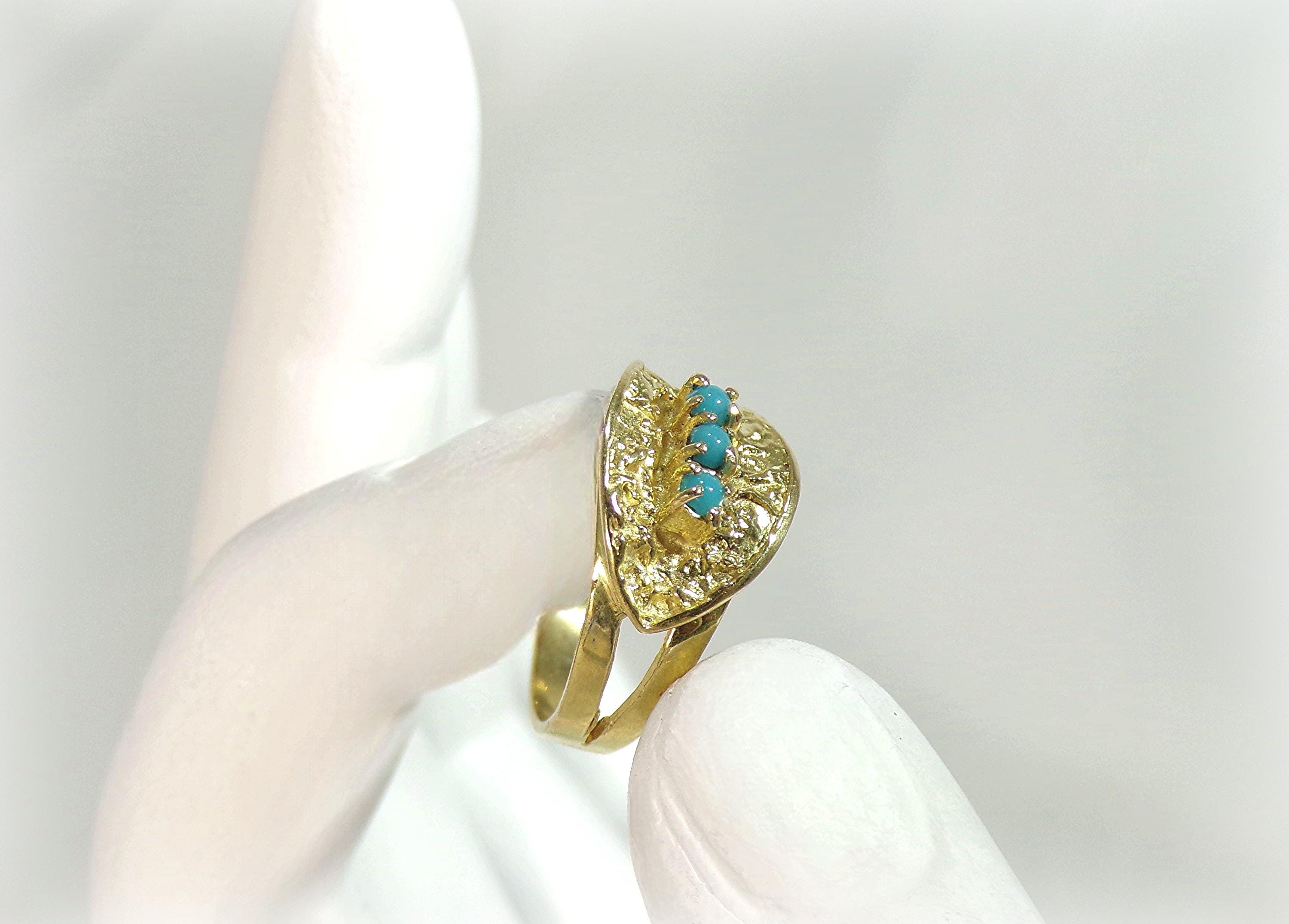 Turquoise Ring – 18K Yellow Gold – Oblique Leaf - Vintage