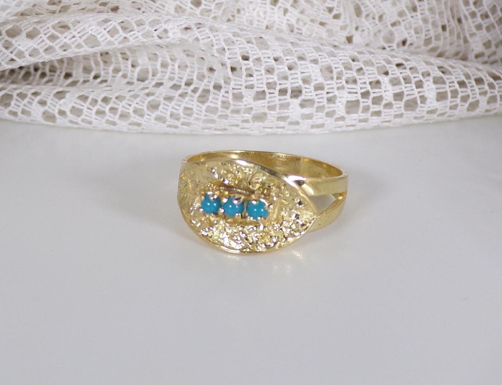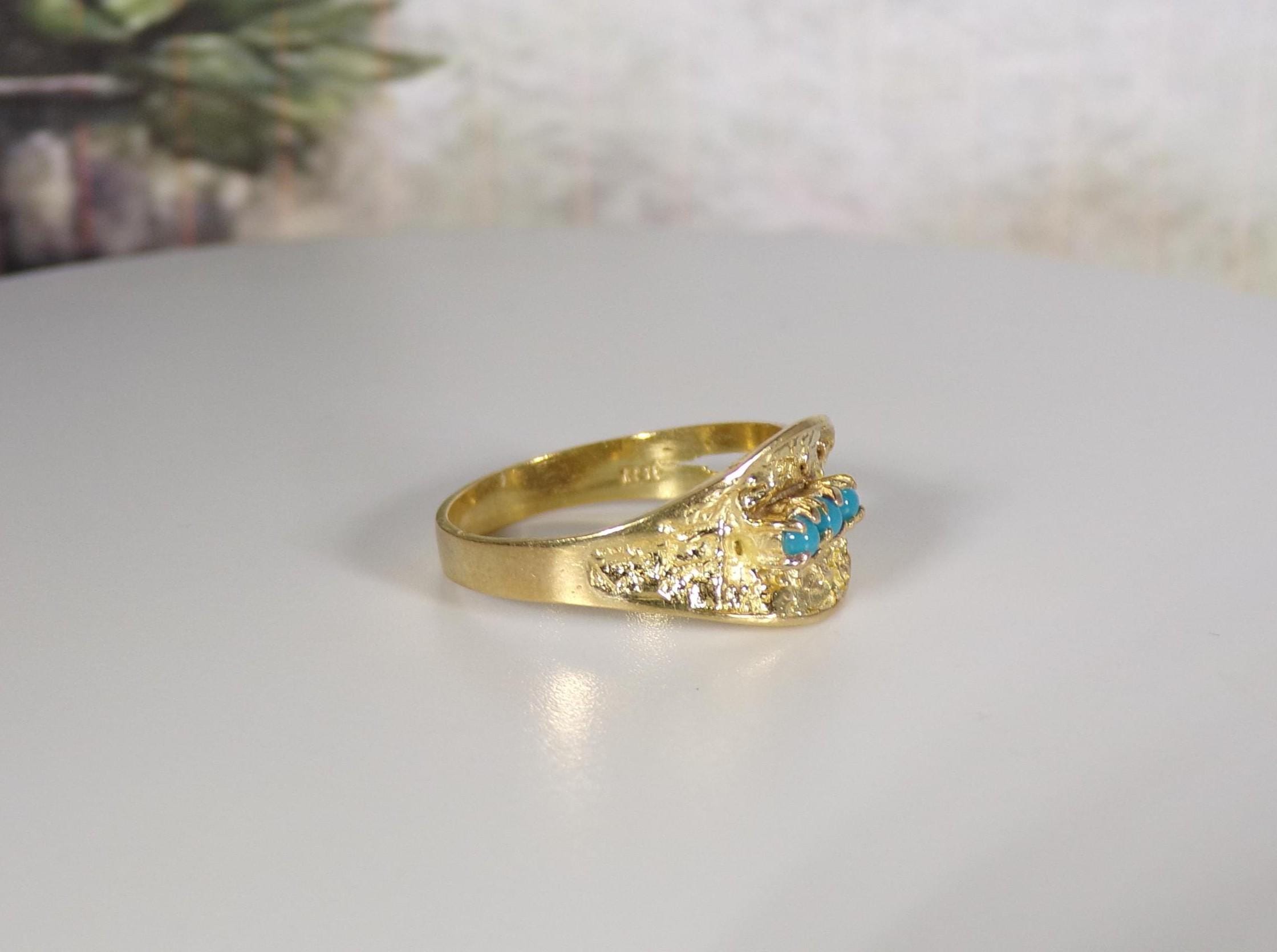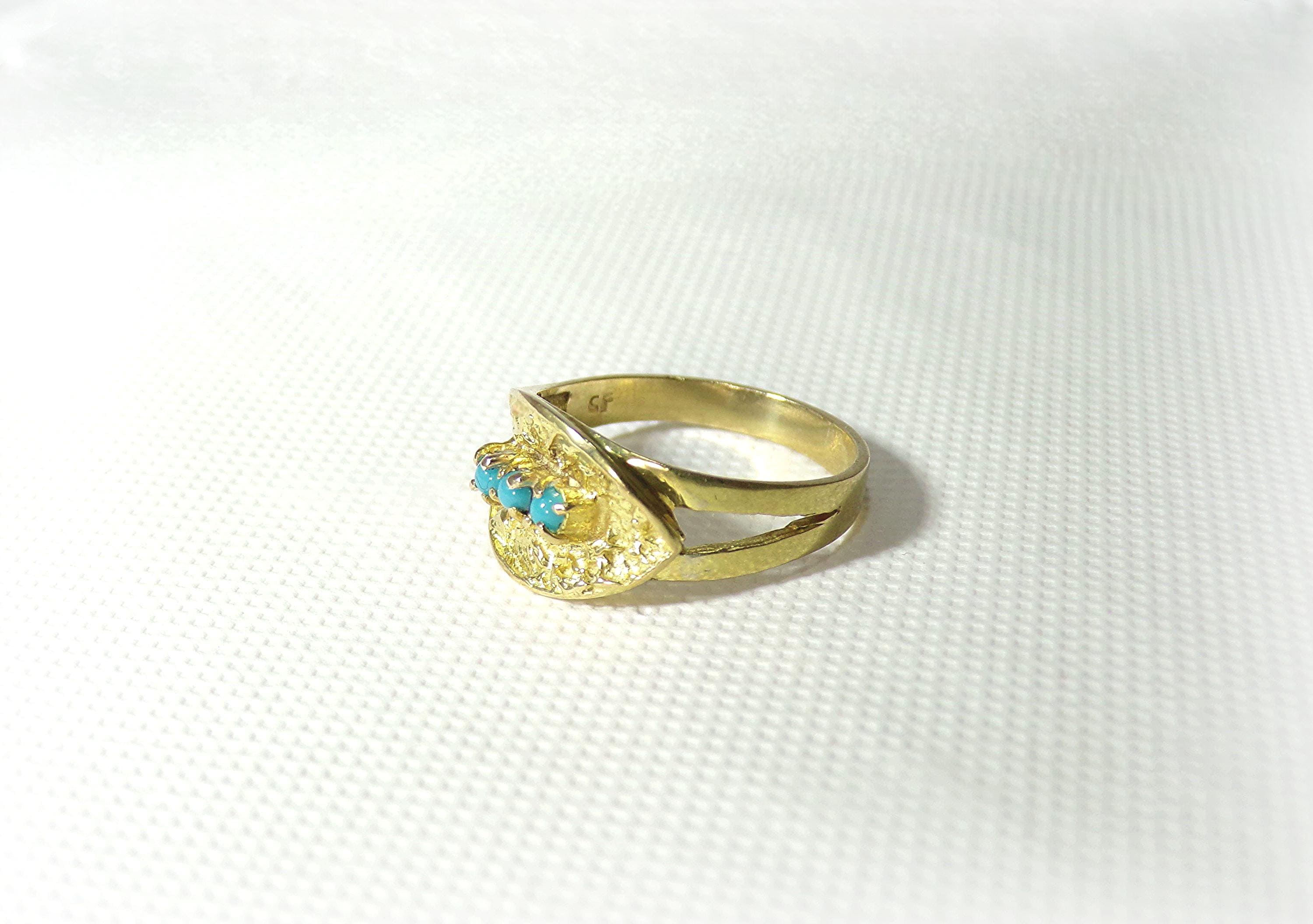 Turquoise Ring – 18K Yellow Gold – Oblique Leaf - Vintage