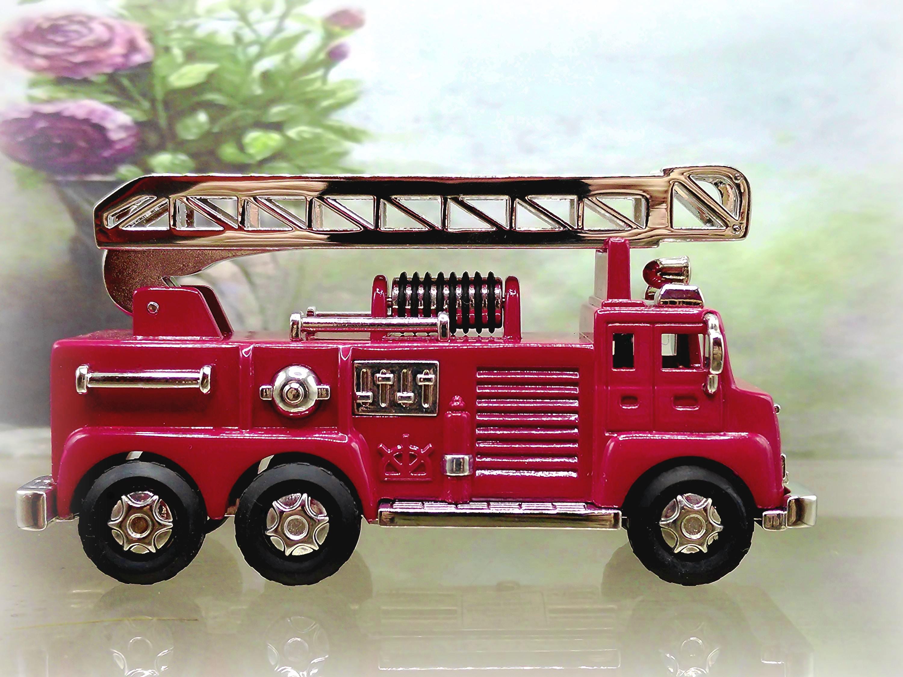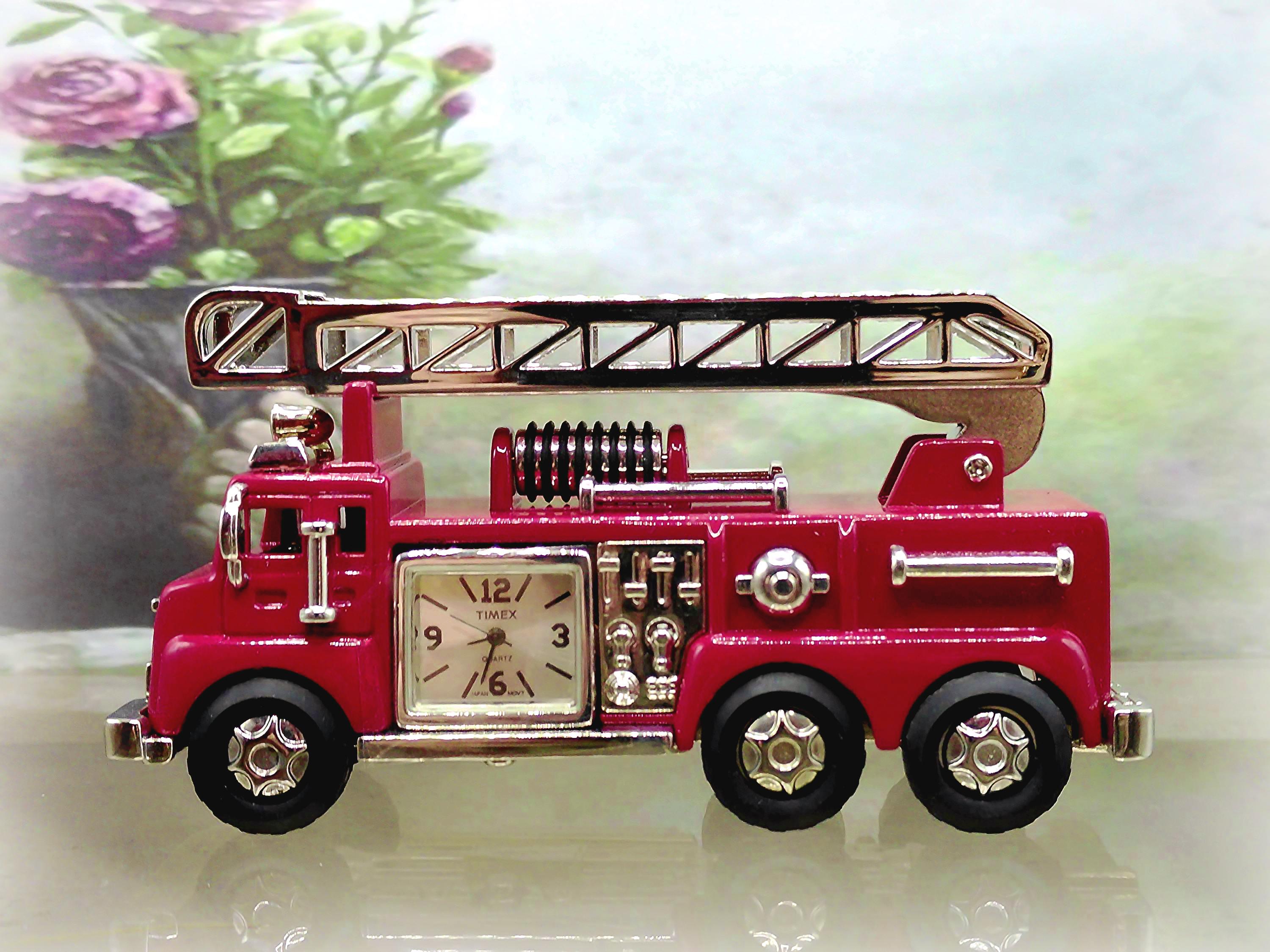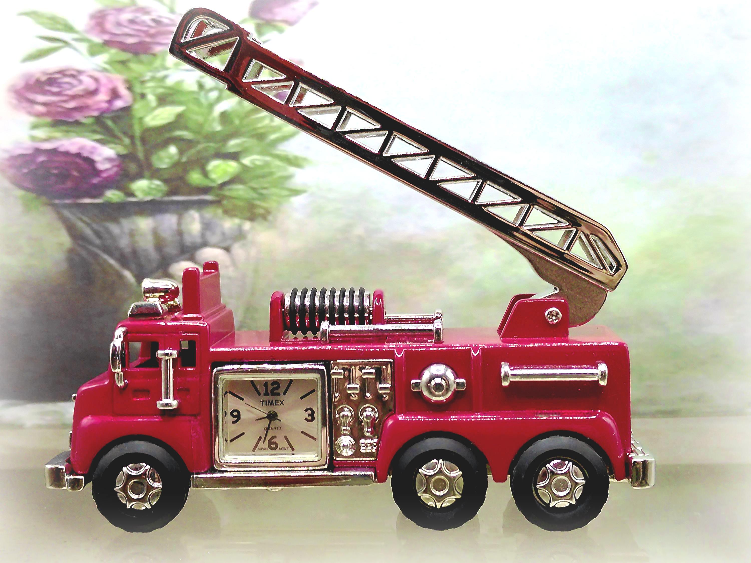 Vintage TIMEX Miniature Diecast Red Ladder Firetruck Quartz Clock - Table Clock - Replica