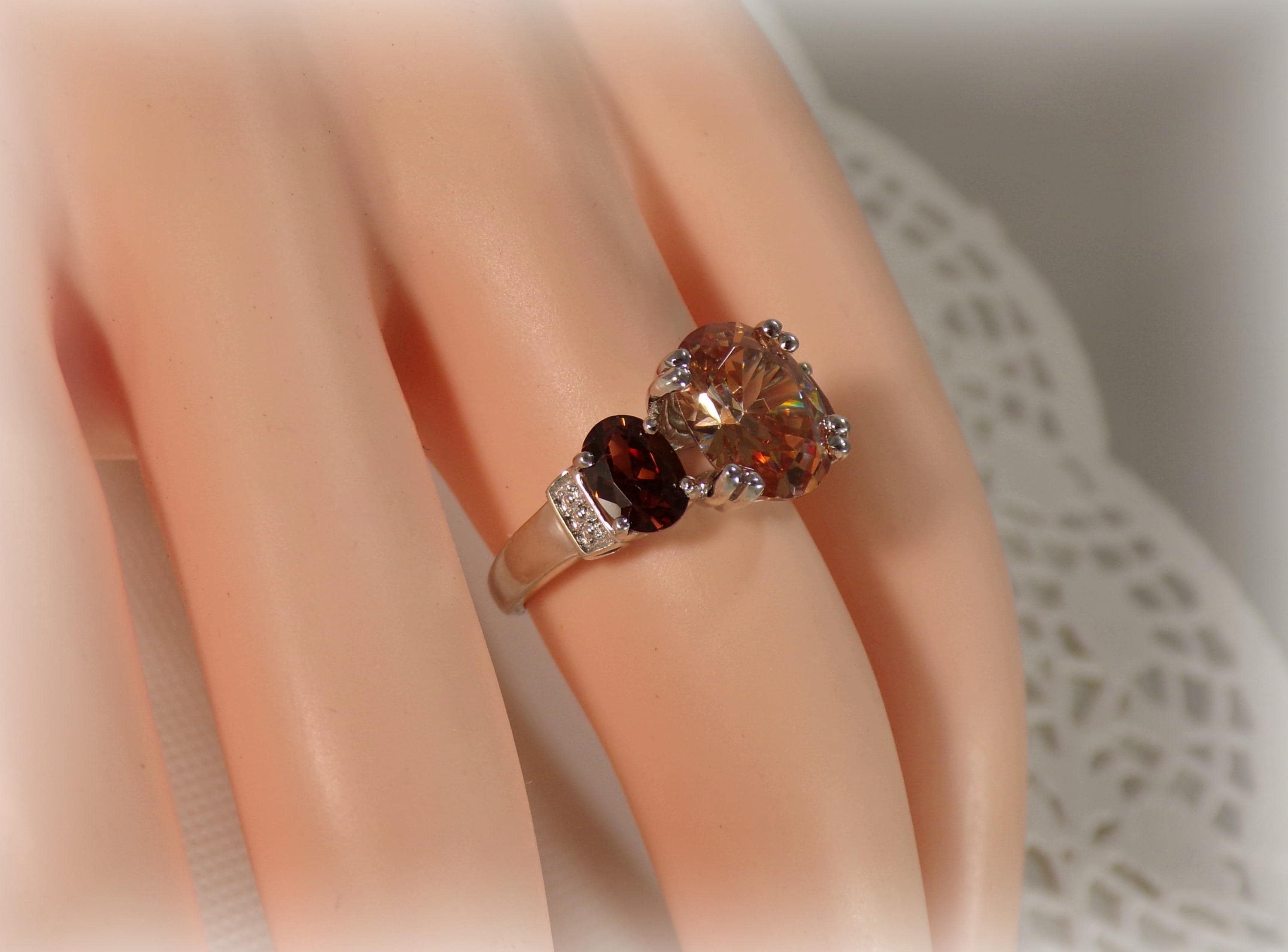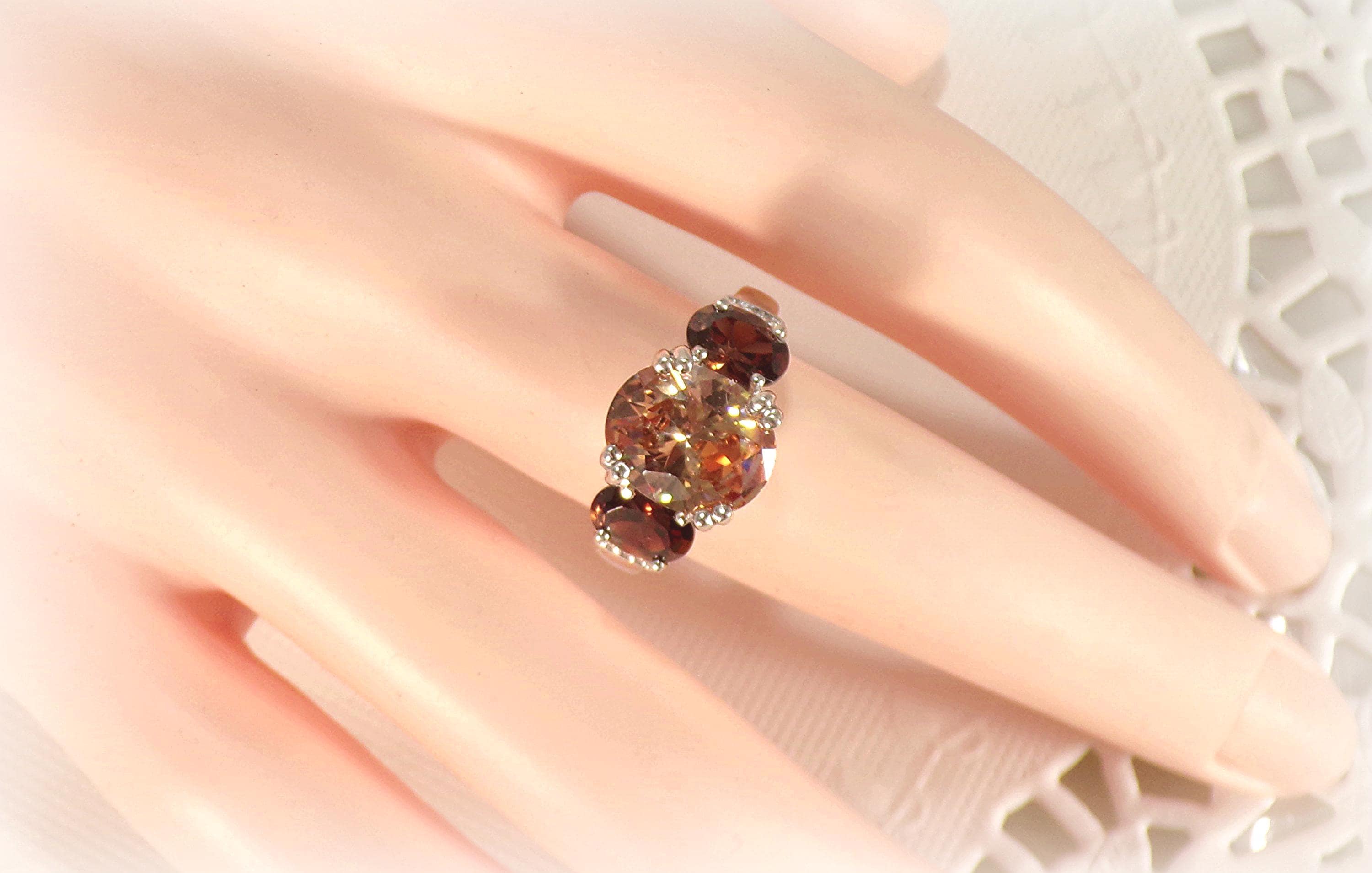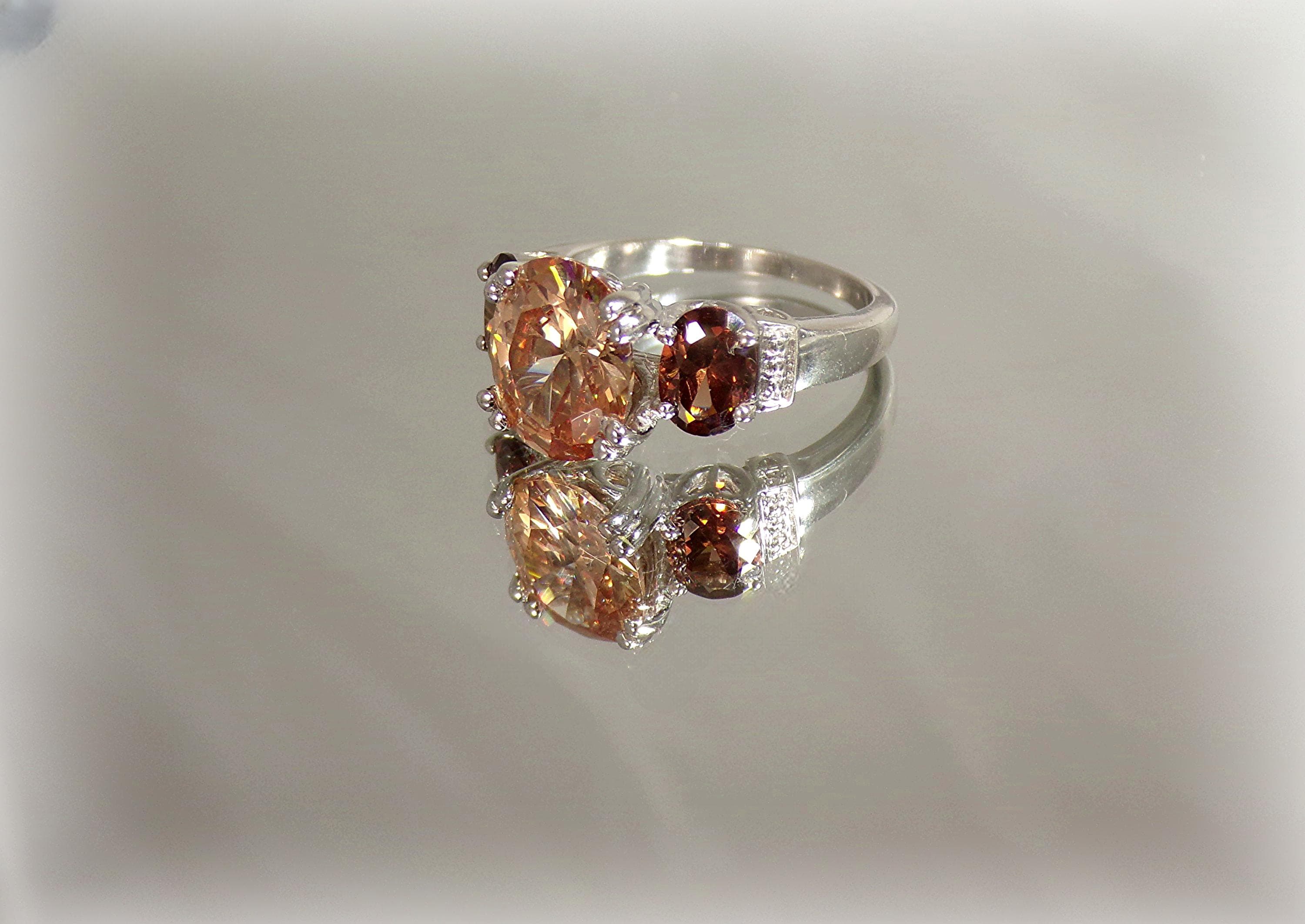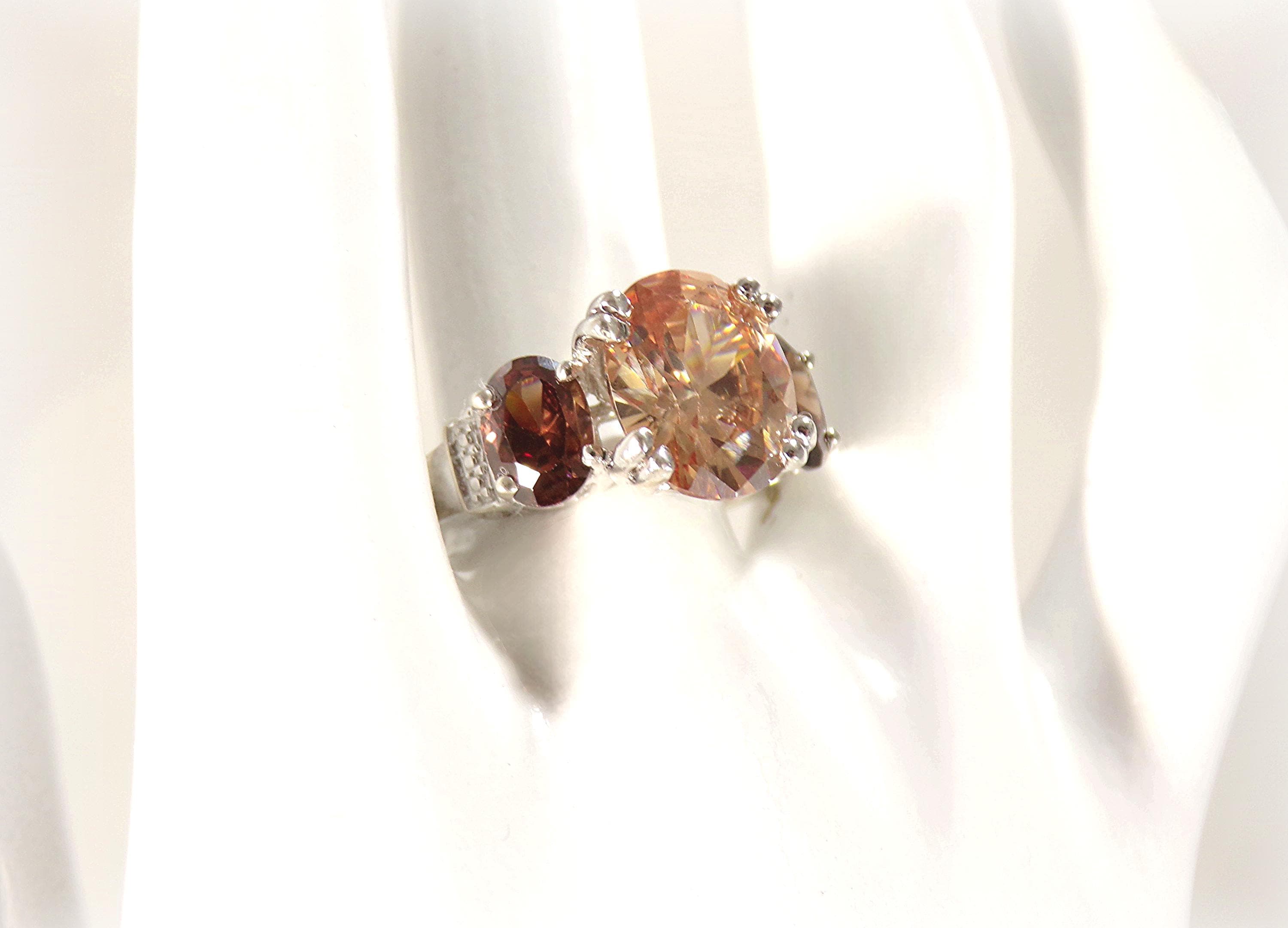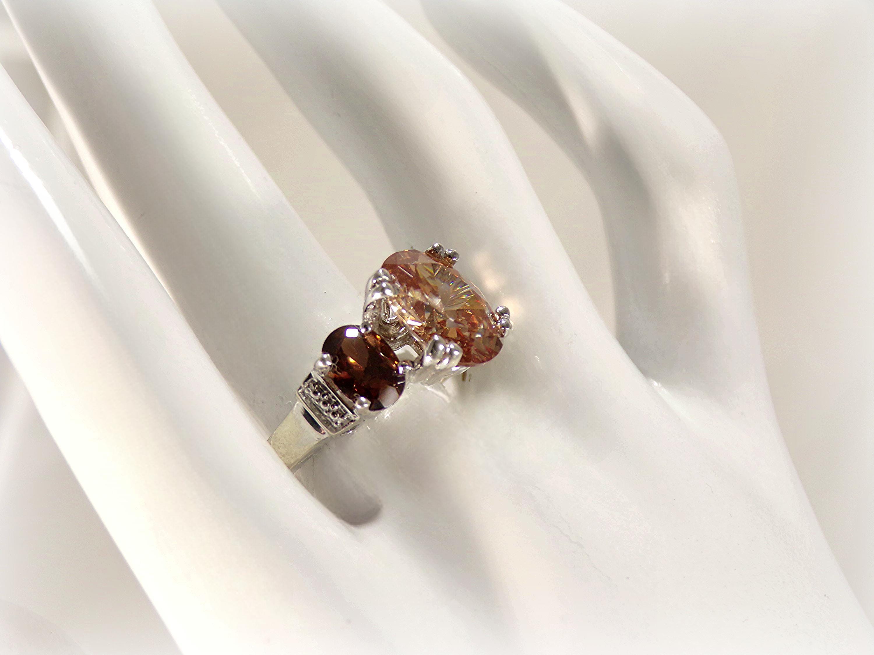 Women’s Ring – Peach & Root Beer Tourmaline – 925 Sterling Silver - Vintage