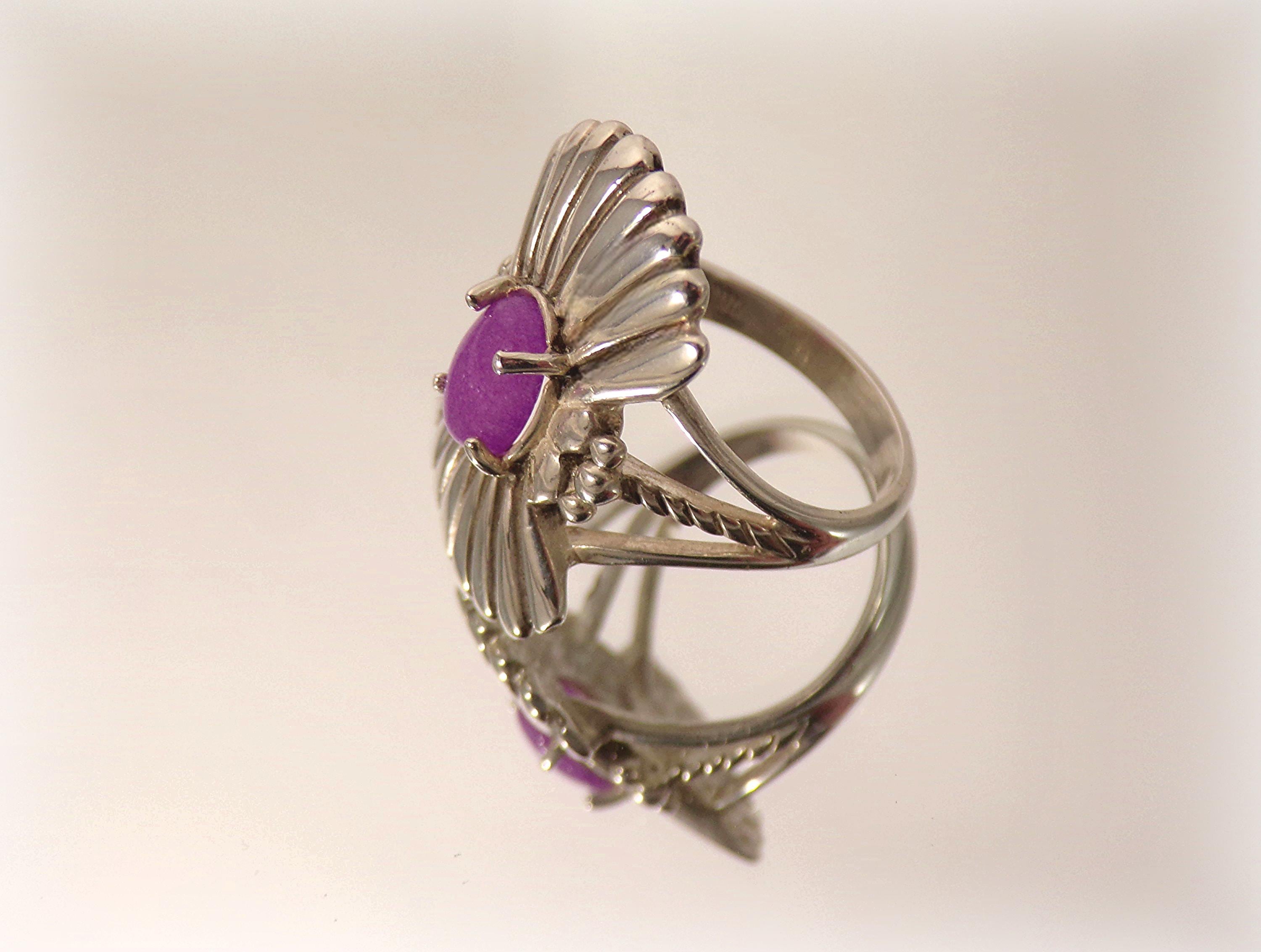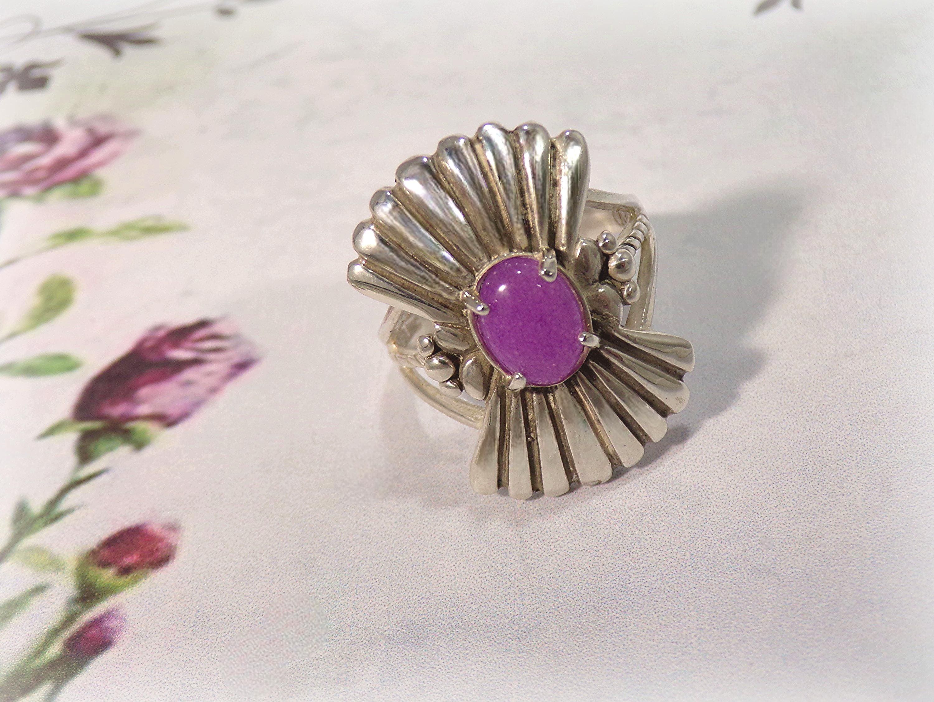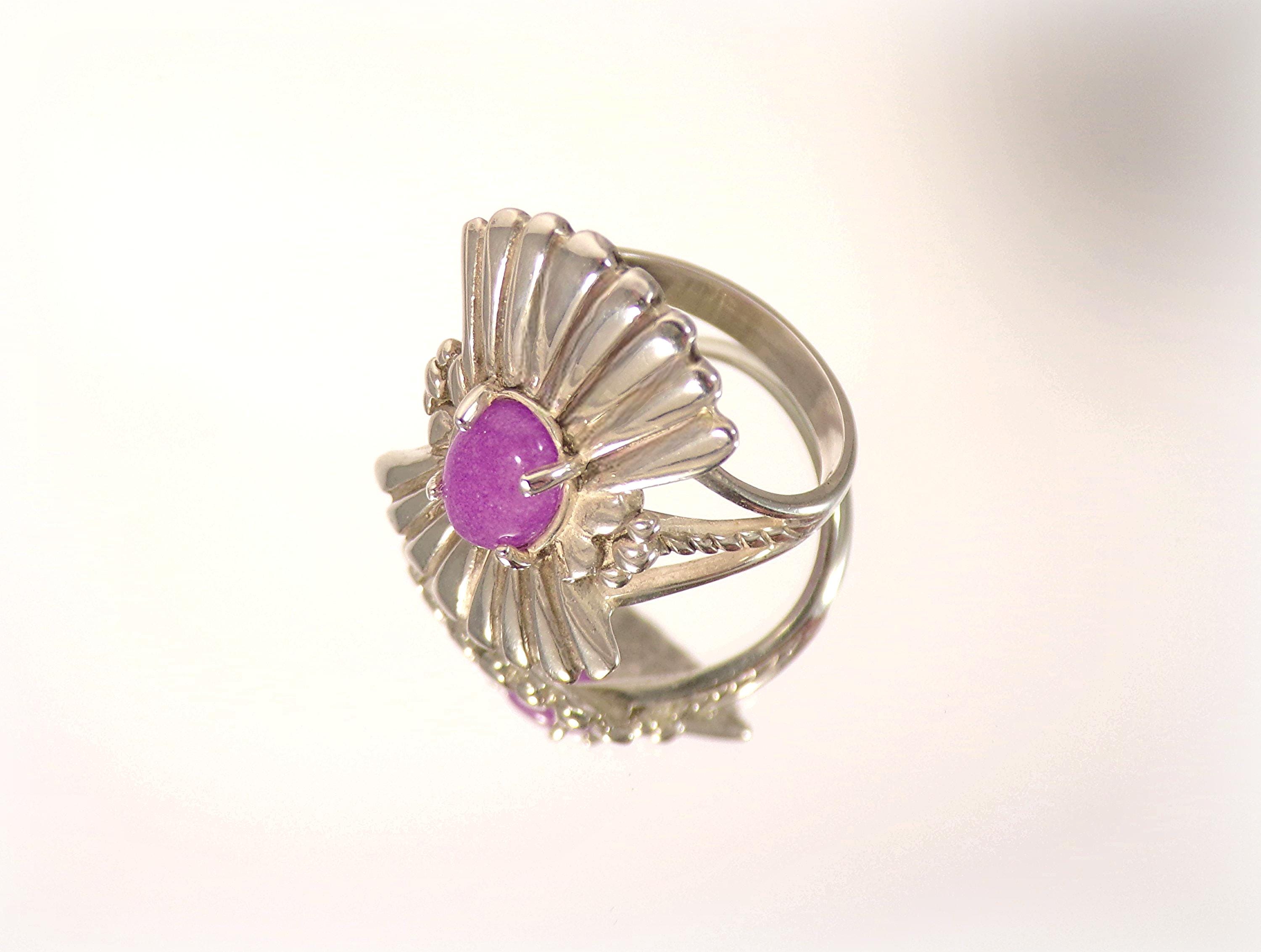 Ring – Violet Jadeite – Sterling Silver -Shield Ring - Vintage