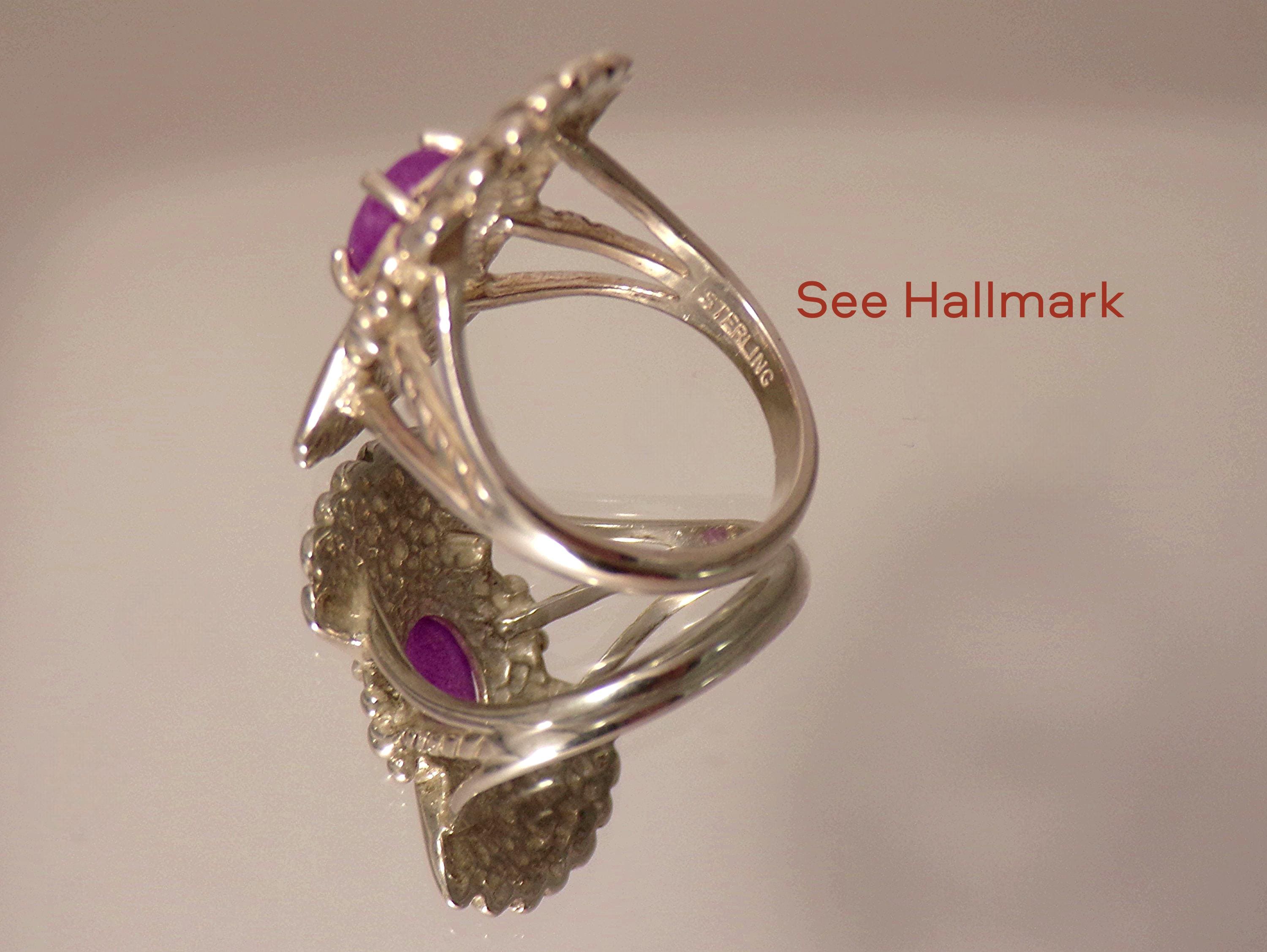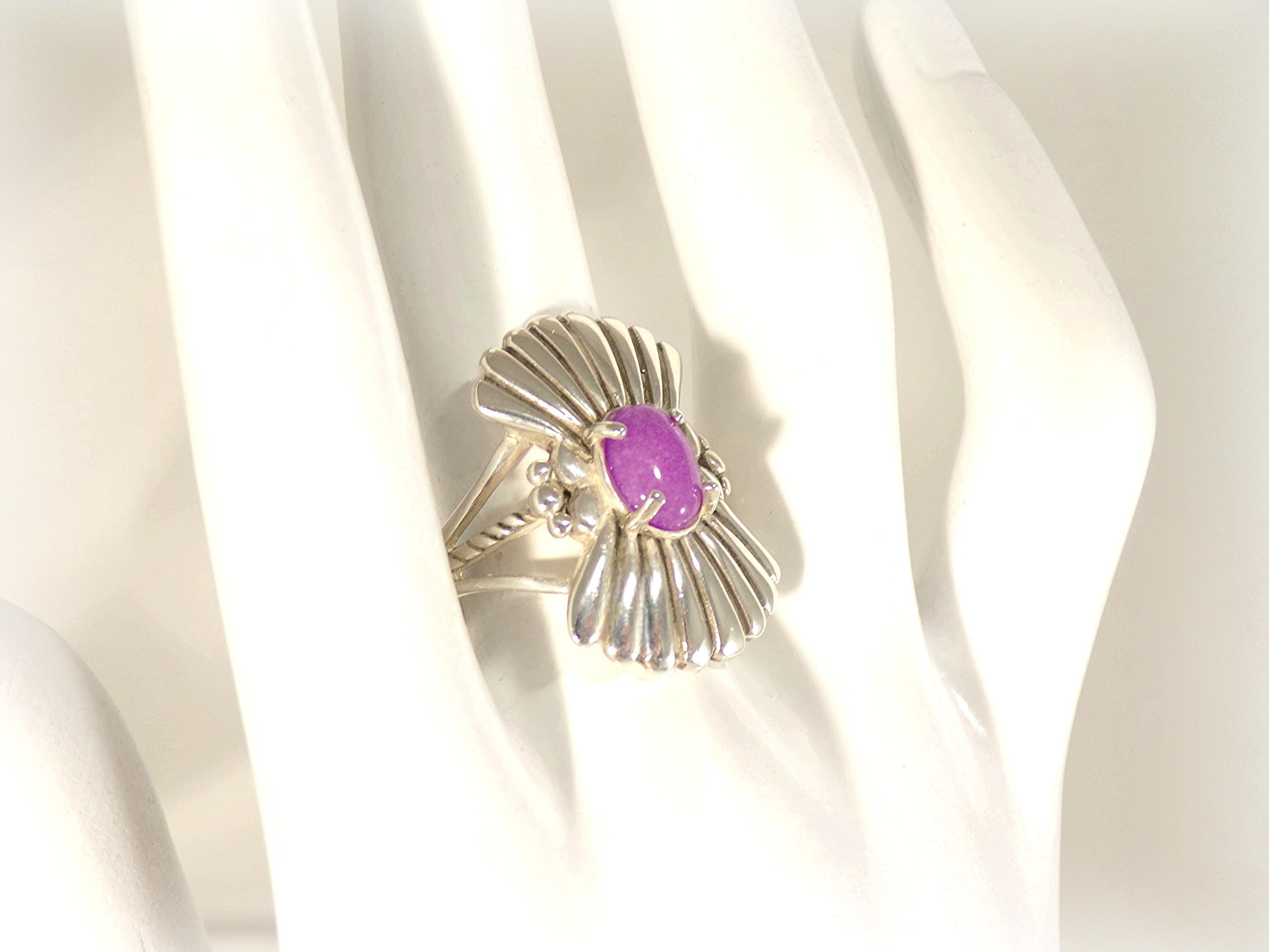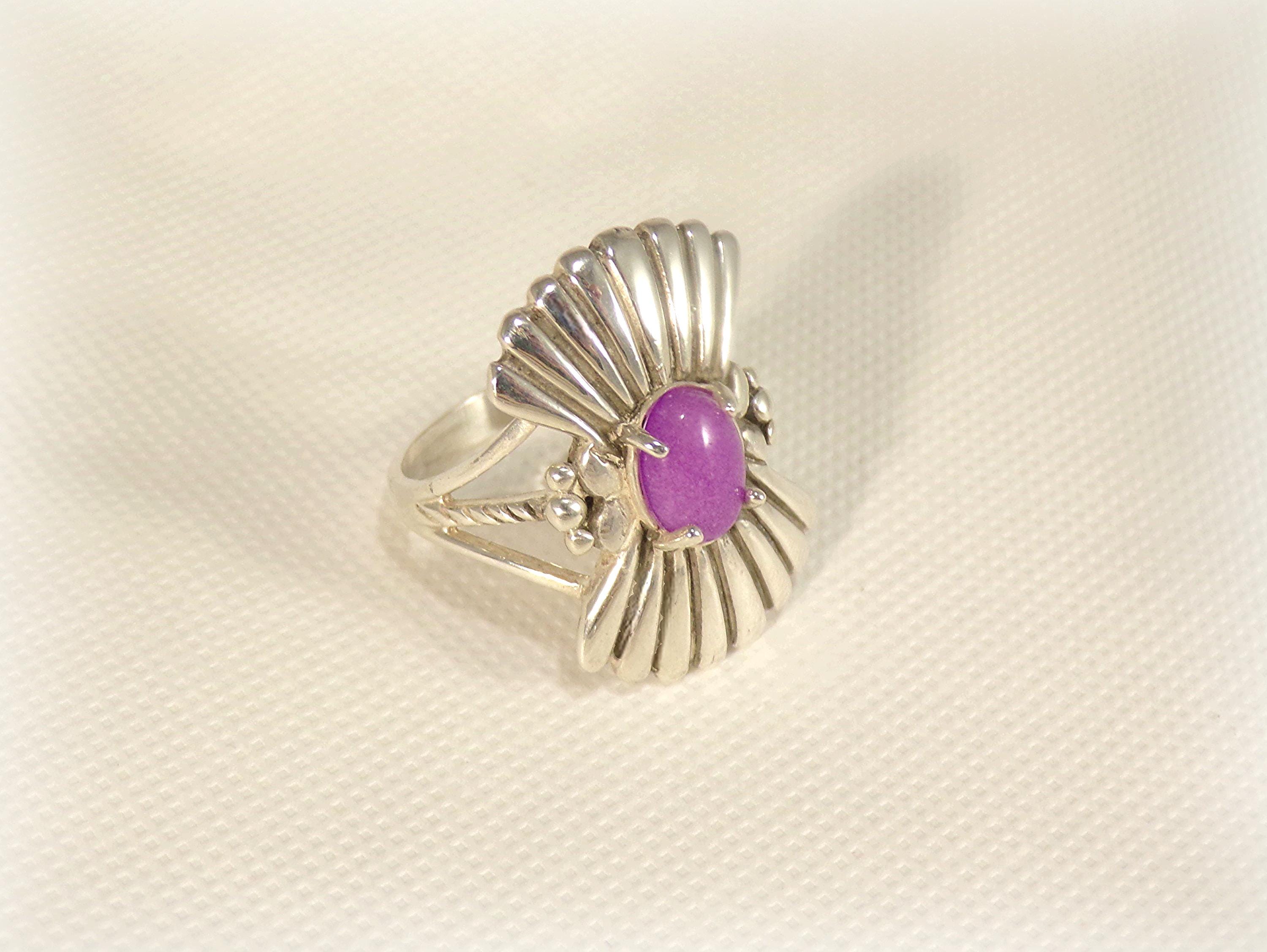Ring – Violet Jadeite – Sterling Silver -Shield Ring - Vintage