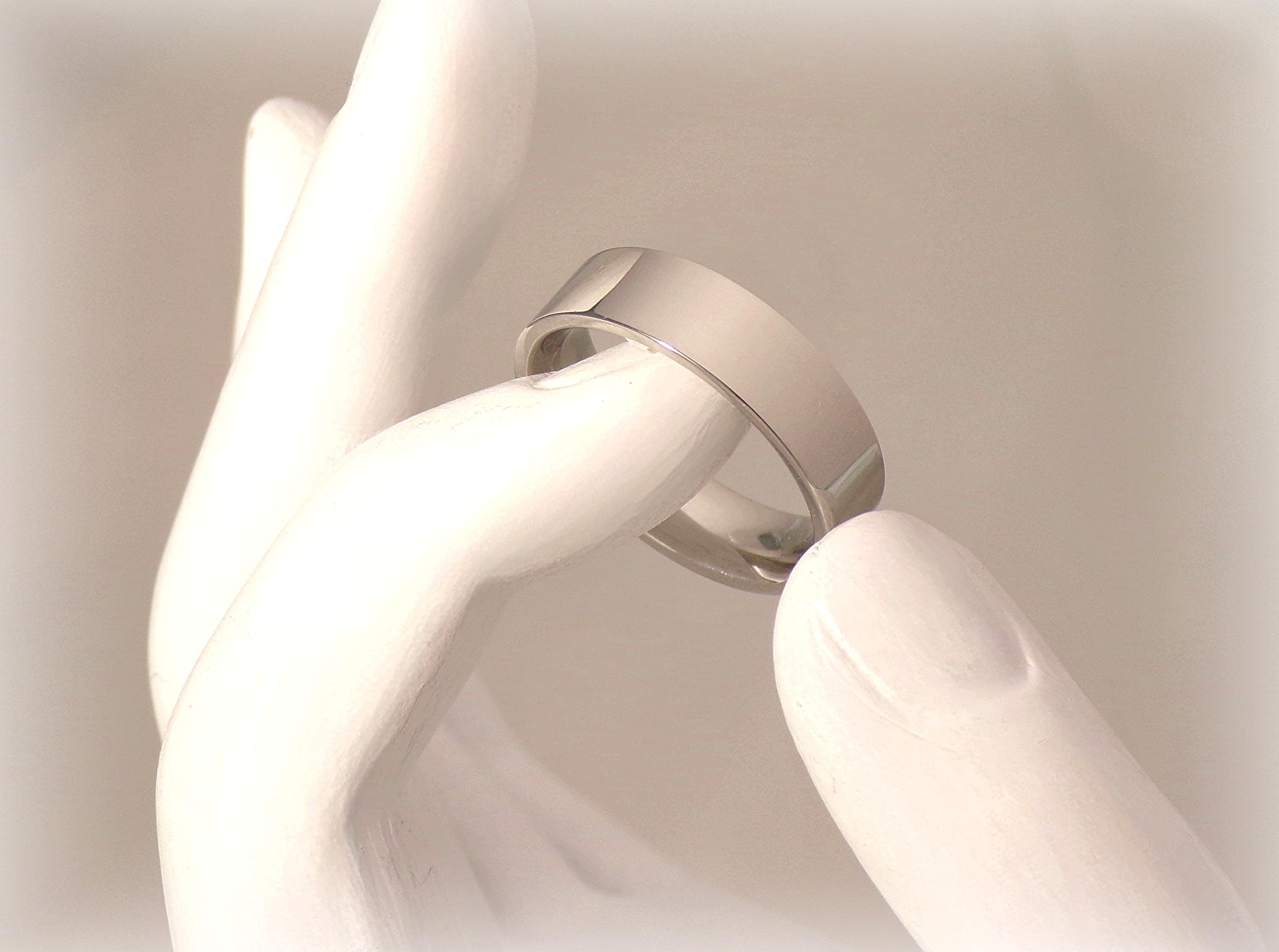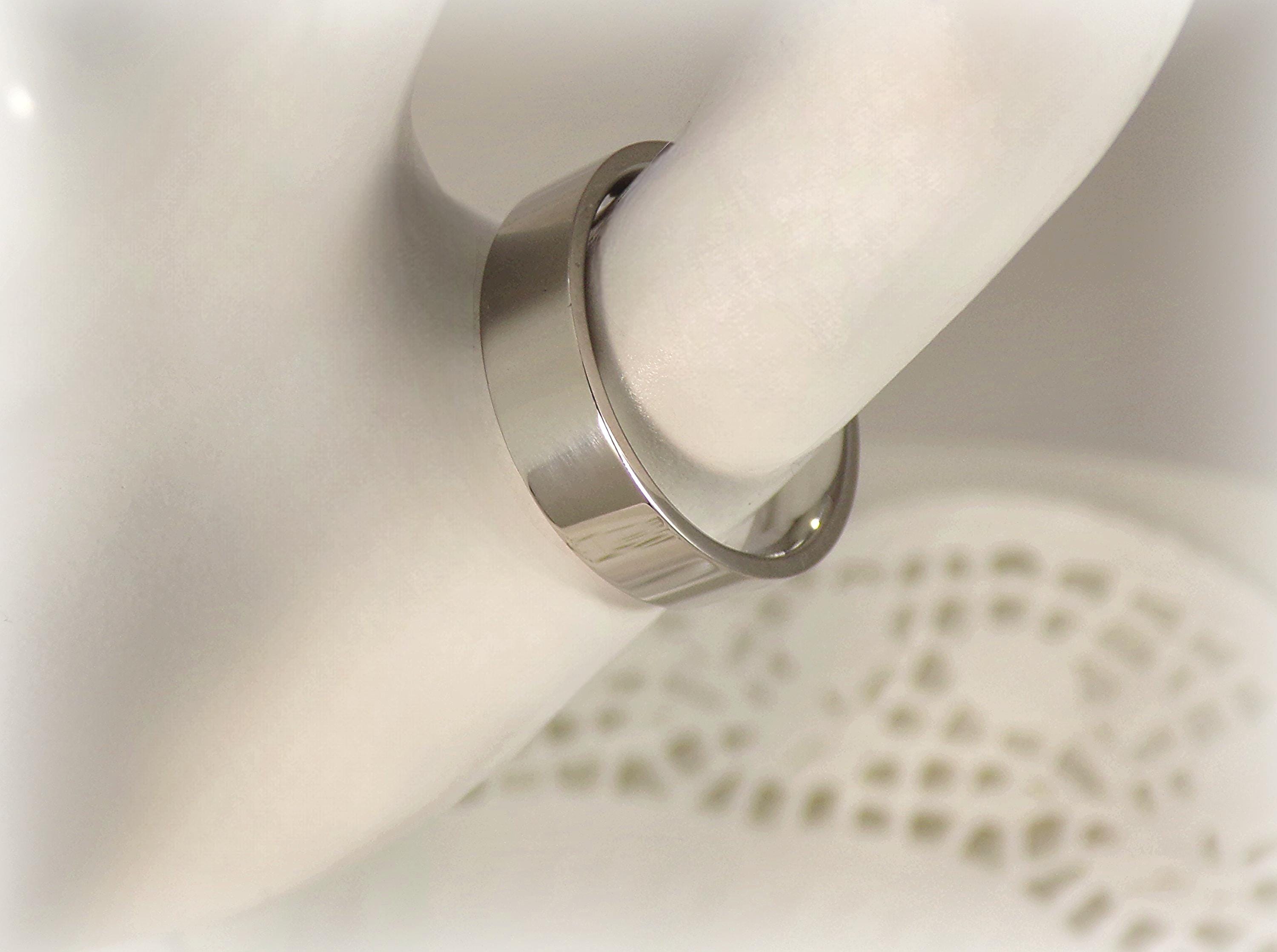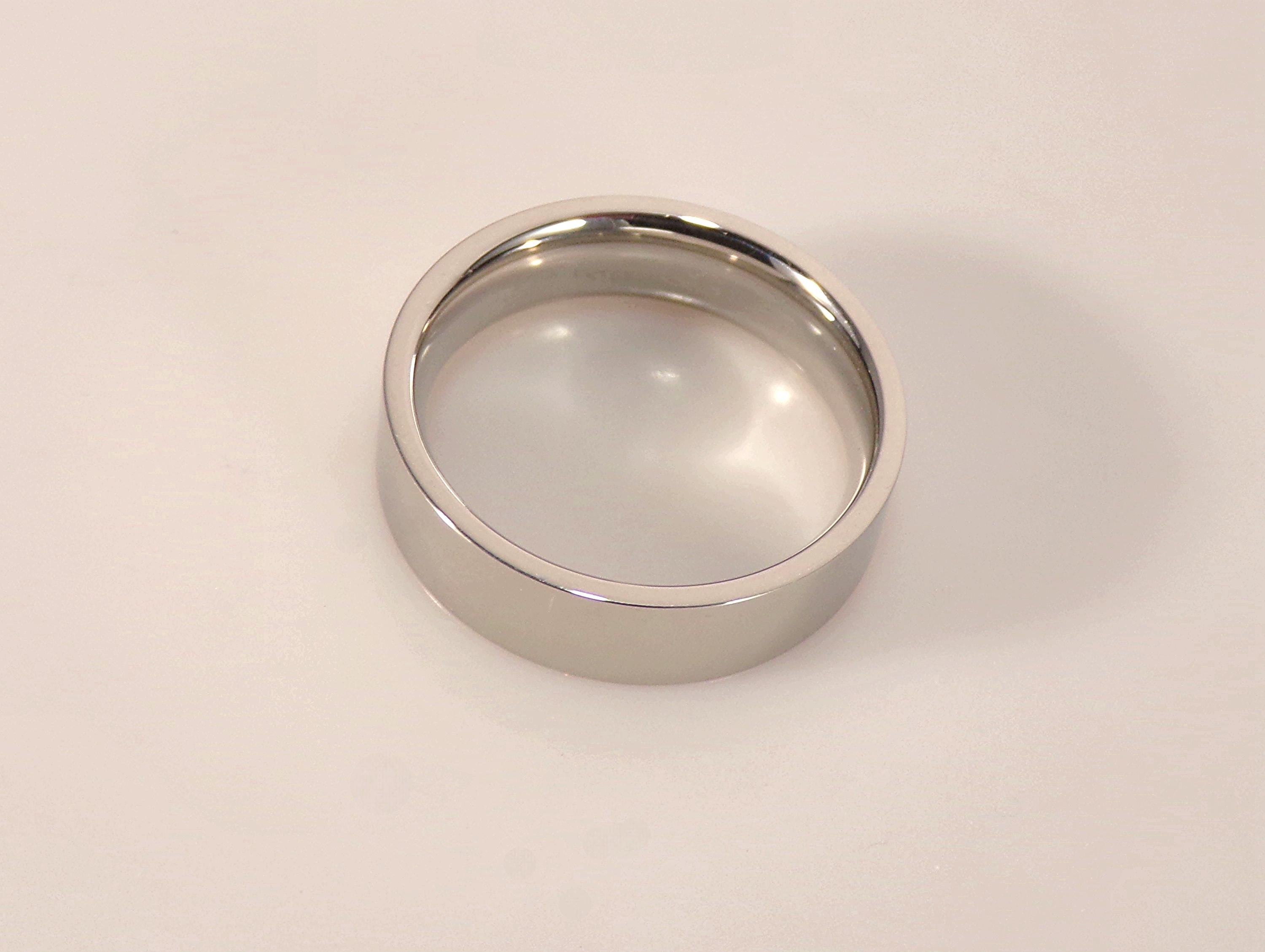 A Men's Band in durable, sleek, shiny Stainless Steel for a rugged ring that will withstand whatever adventure that a man may put it through. This is not only a beautiful ring, but practical since it can go confidently from boardroom, job site, gym, adventure, and anything in between due to its resilience. This Wedding Band is the perfect ring for the man that wishes to display his commitment in all areas of life.
