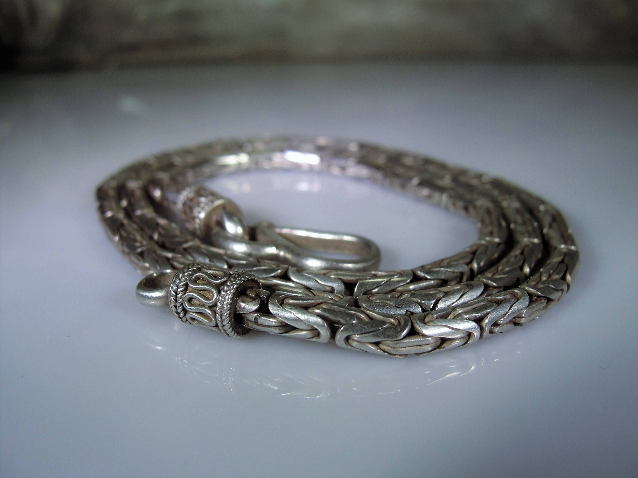 The interlocking mini links are clean and present a detail that reflects the Sterling Silver beauty as well as an illusion of black etched enamel. But this is simply the way the necklace is made, it is such a beautiful sterling silver chain that can be worn by either sex and it will present wonderfully no matter what. Just a stunning example of a lovely Byzantine Necklace or Chain with some very nice weight to it.
