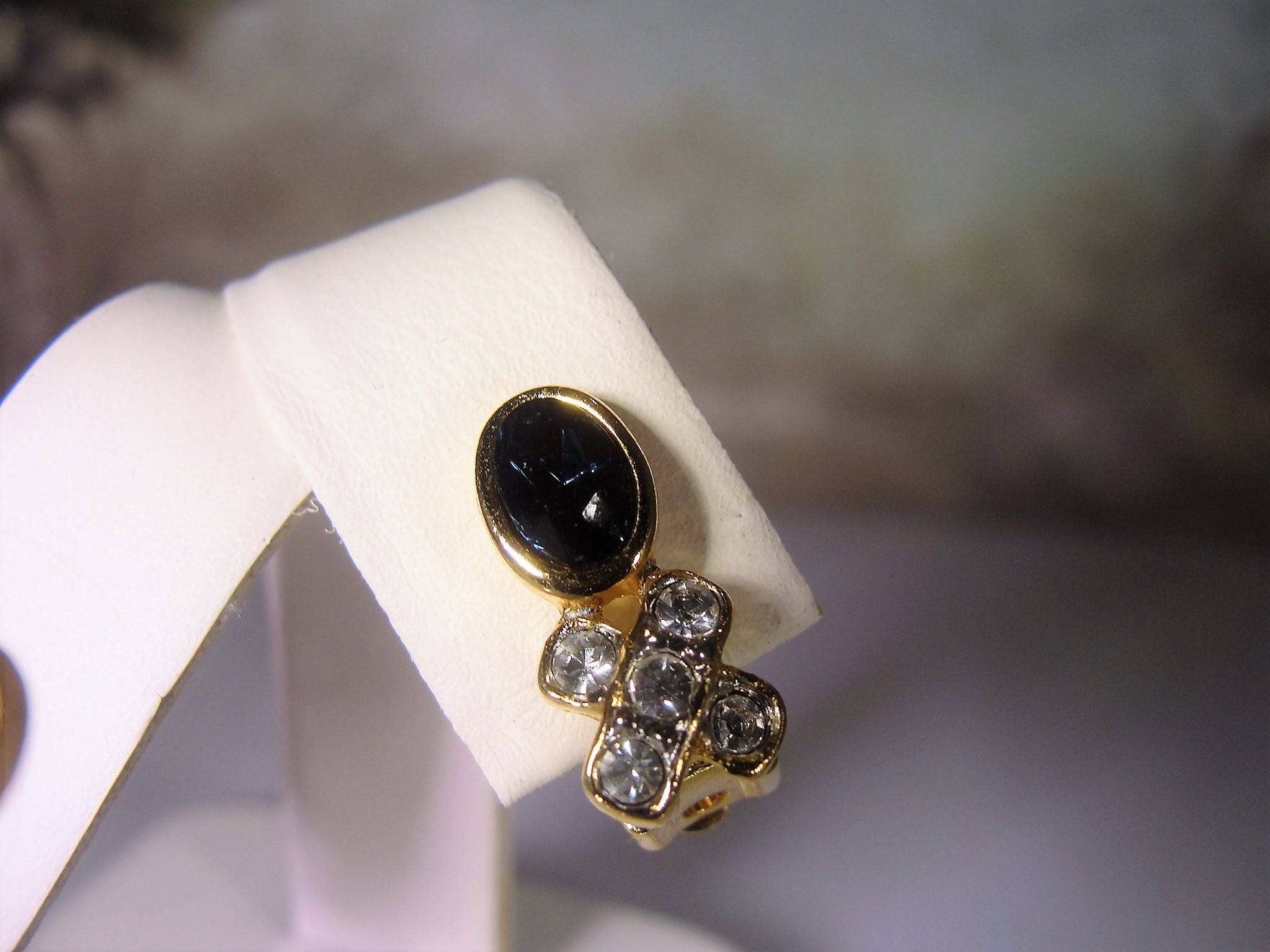 The earring are delicate clip on earrings with cushion backs for a comfy fit. They measure approximately ½ of an inch in size. The earrings have the same Hugs and Kisses motif but they are vertical where the sapphire Hugs are on the top of the earring and the rhinestone Kiss is just below it.