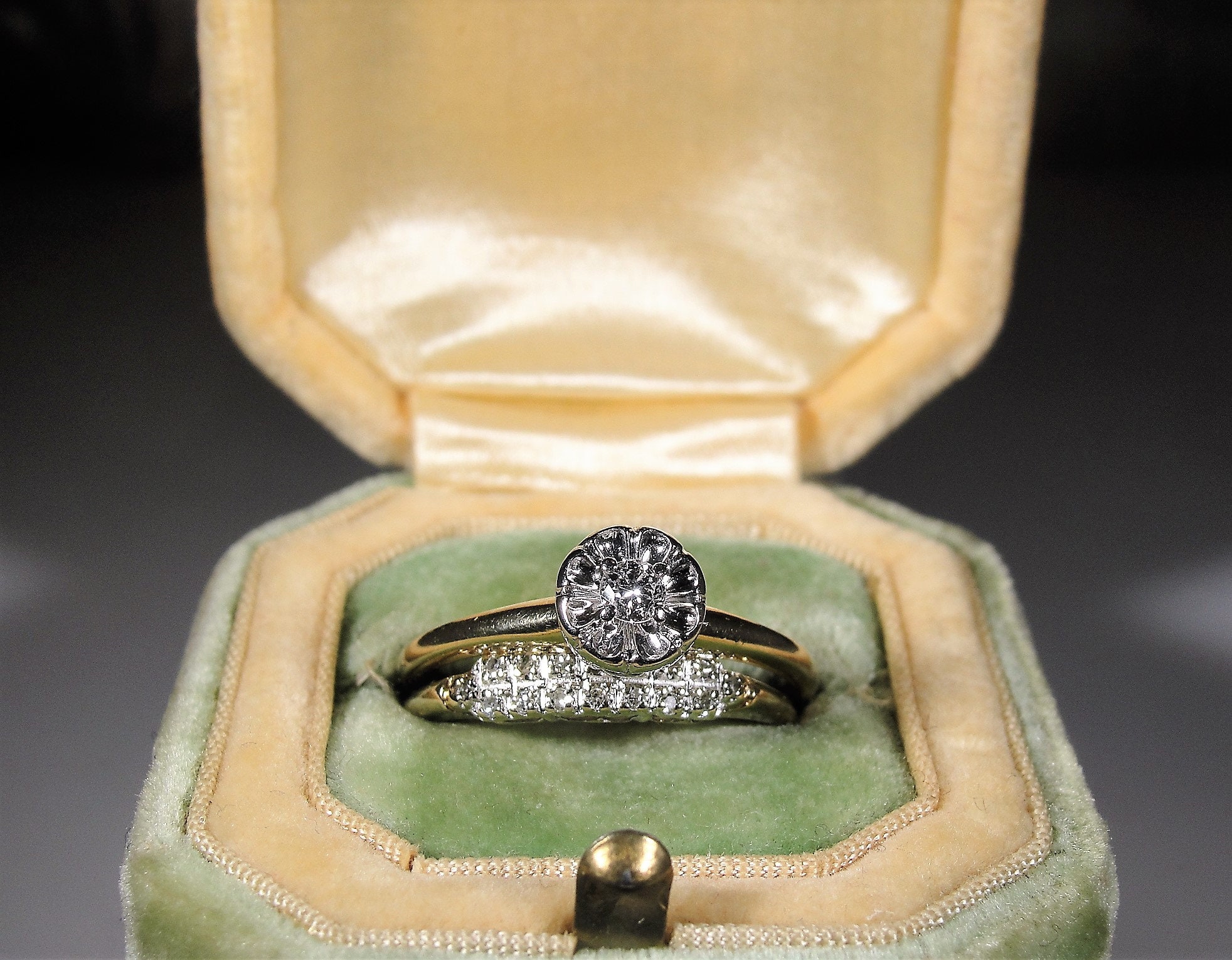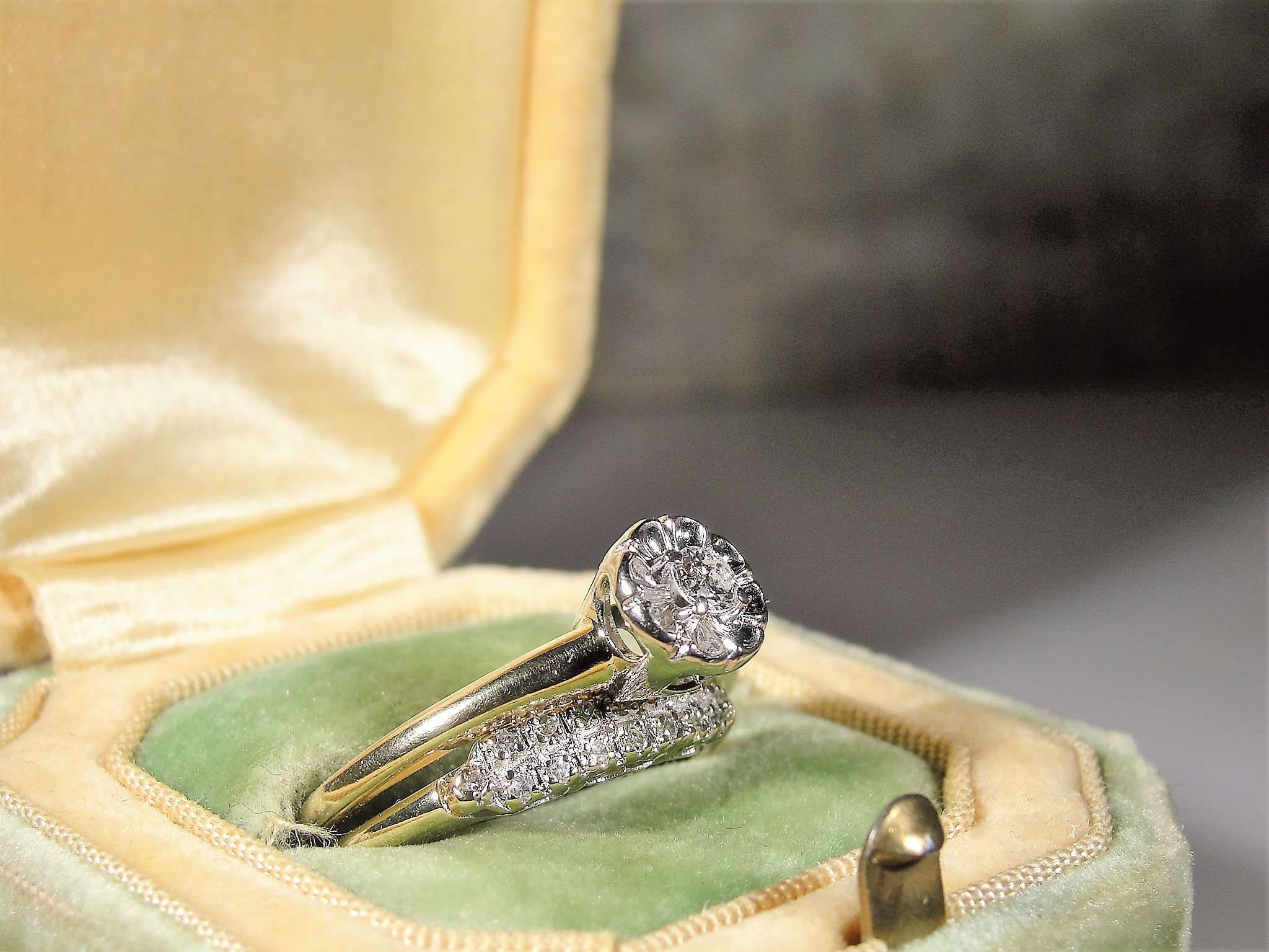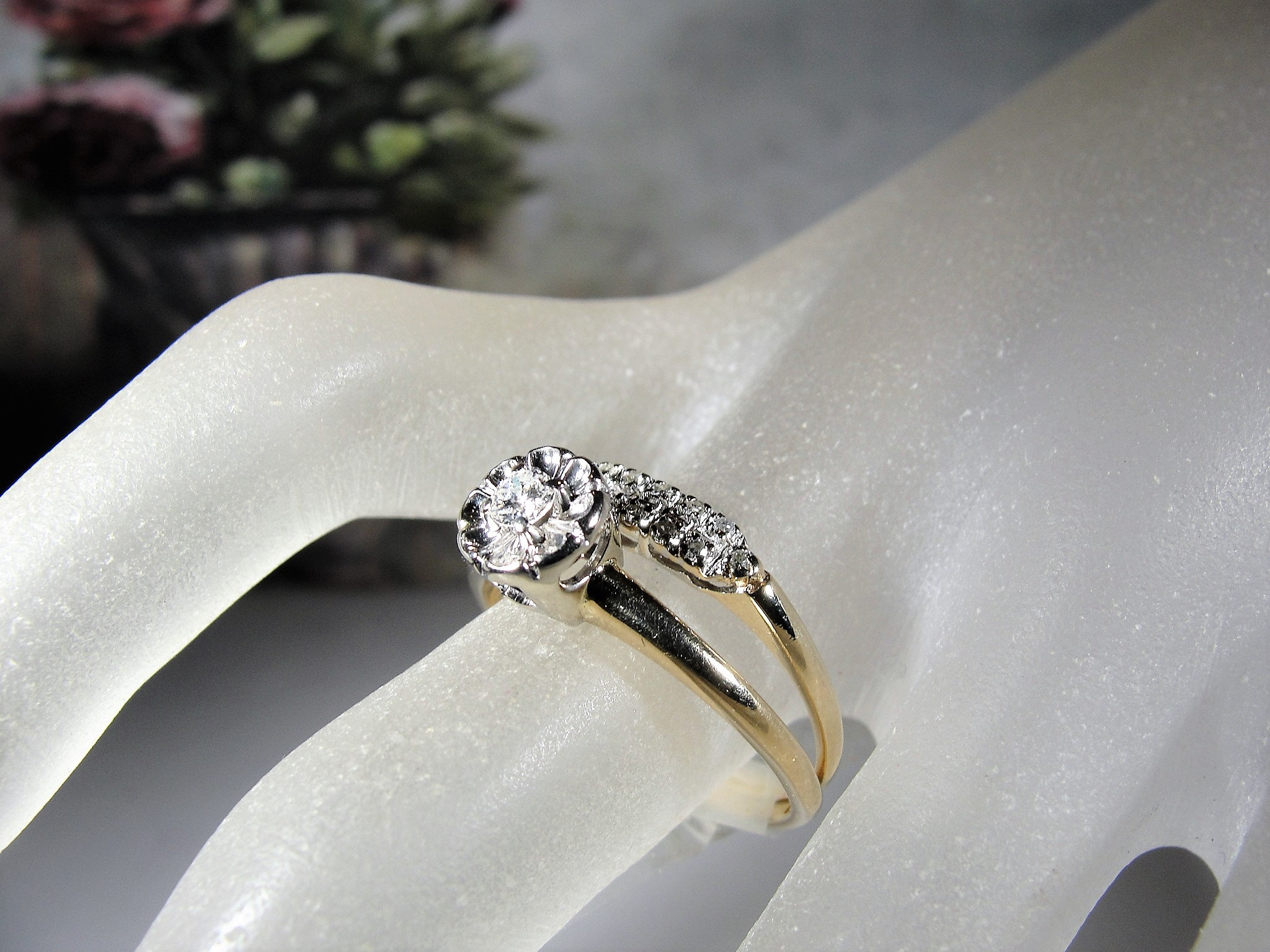 Bridal Ring Set, 14K Gold Diamond Engagement Ring and Diamond Wedding Band, Wedding Rings, Vintage Rings, Size 8.5, FREE SIZING!!
