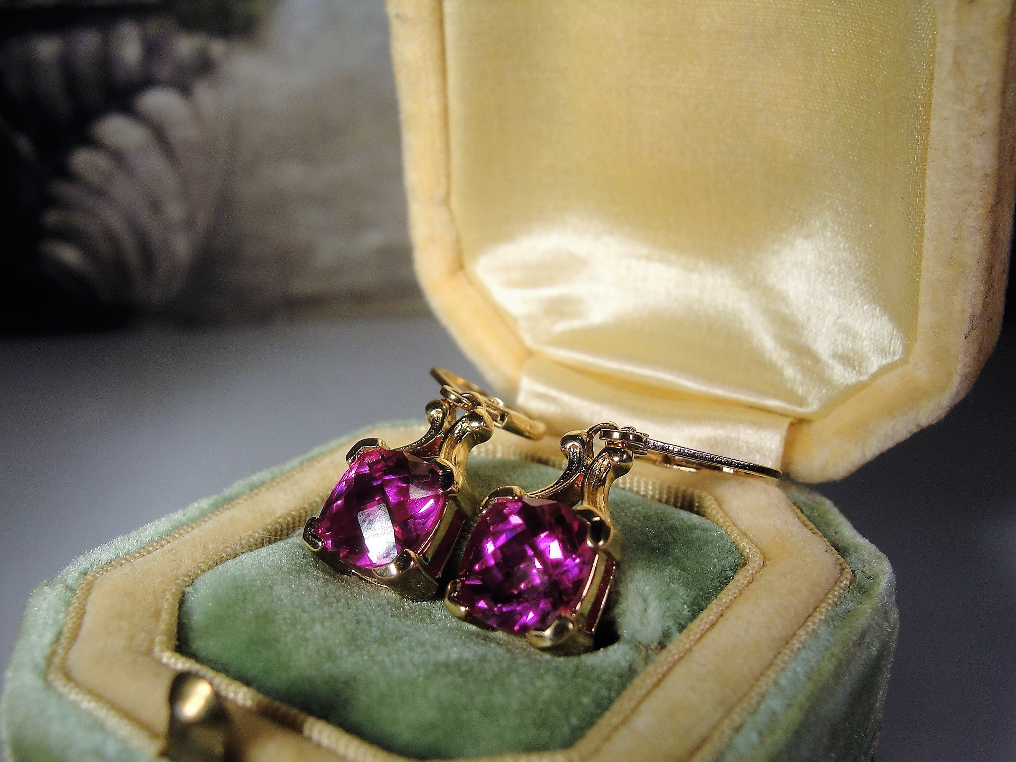 • The earrings are made for pierced ears and they have lever back closures