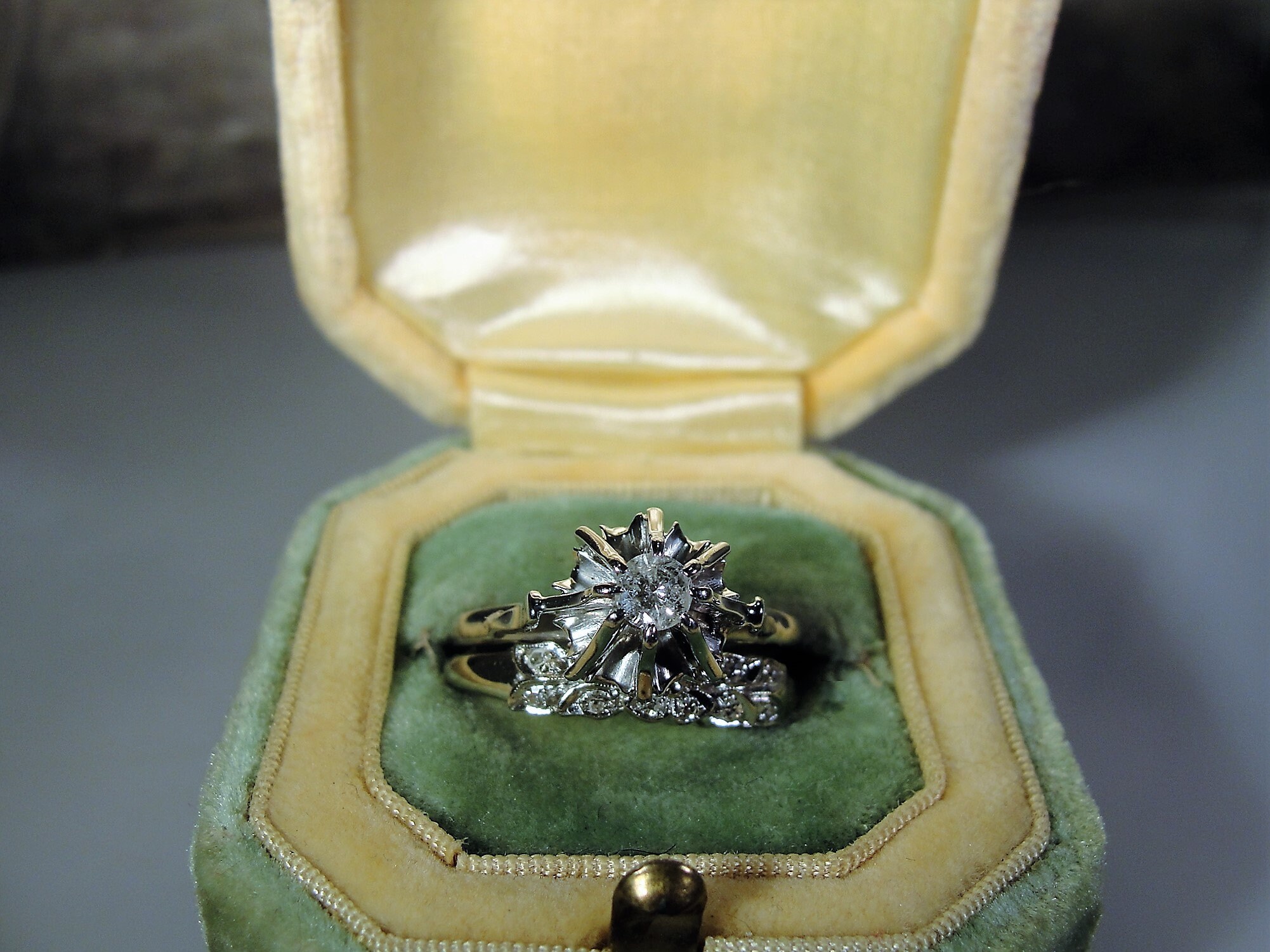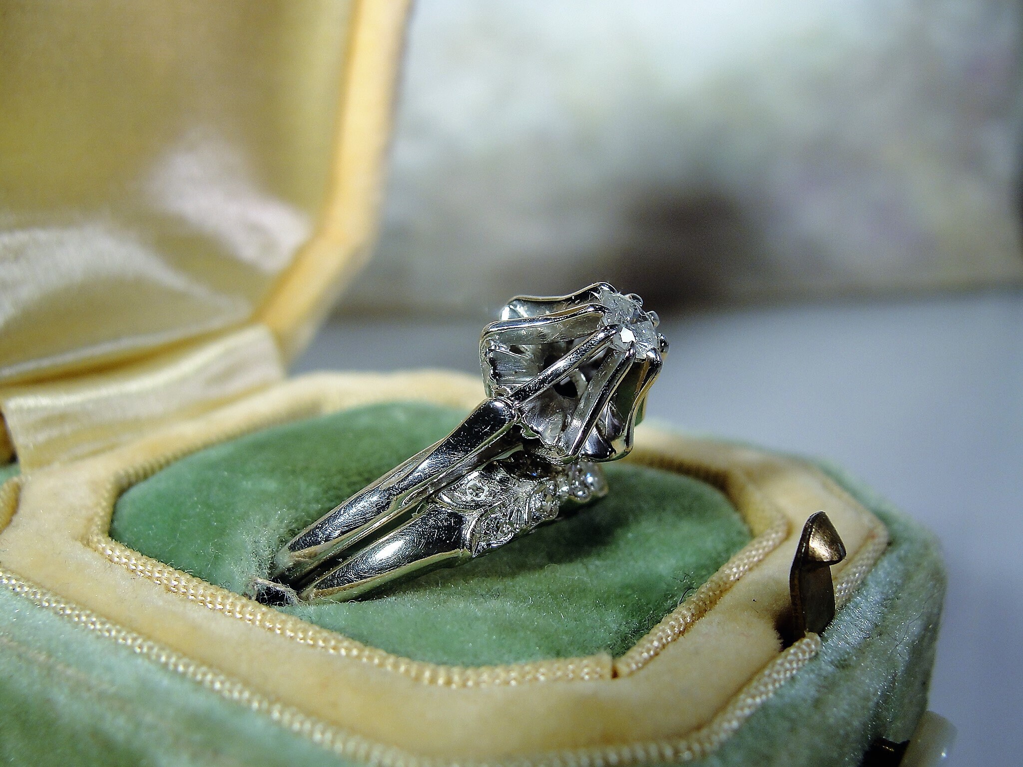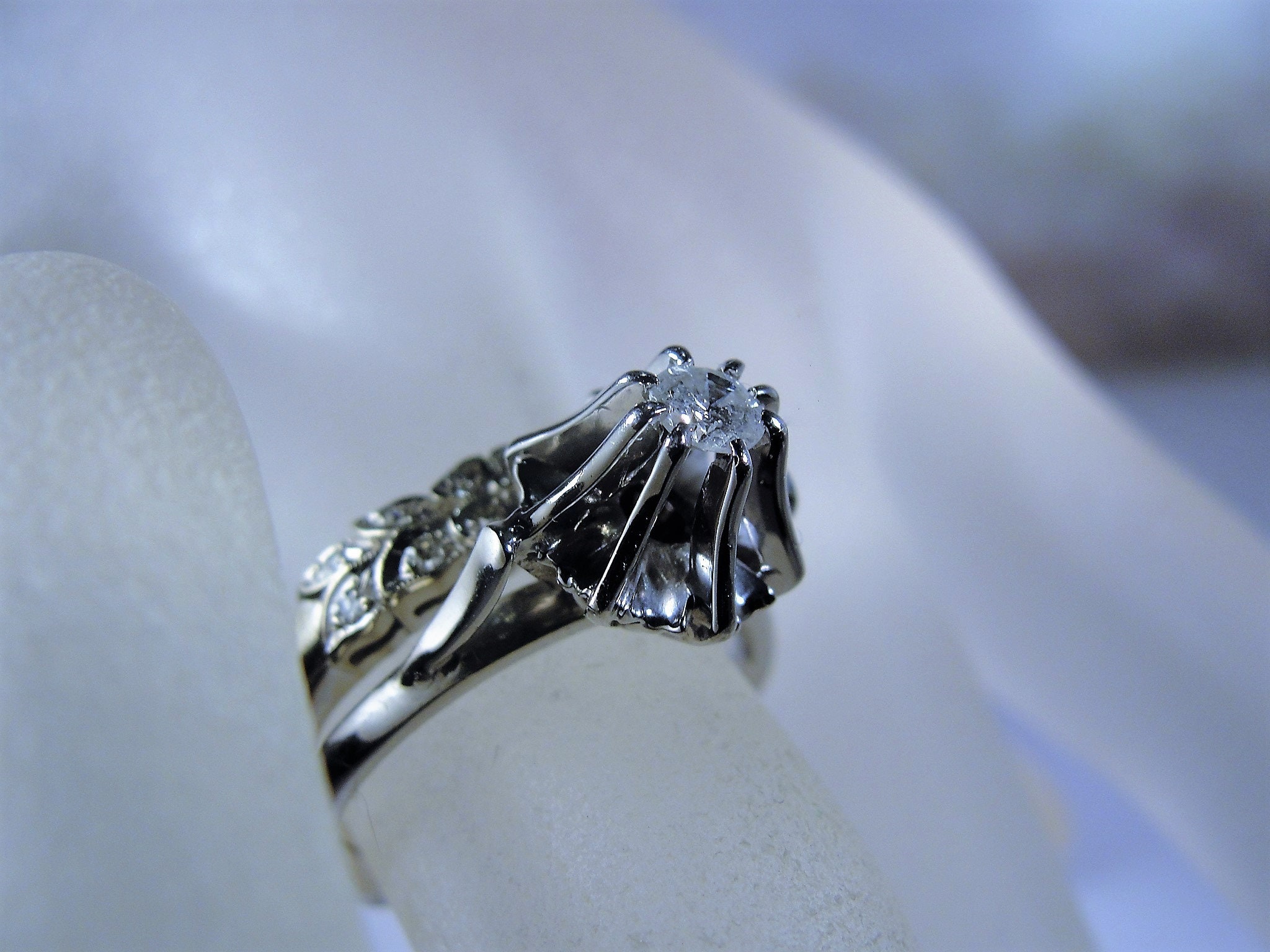 • Condition is Excellent – it is possible that this ring was artisan made where the cathedral mounting was saved from another piece of jewelry and the band was added to it later (**just a hunch on my part)